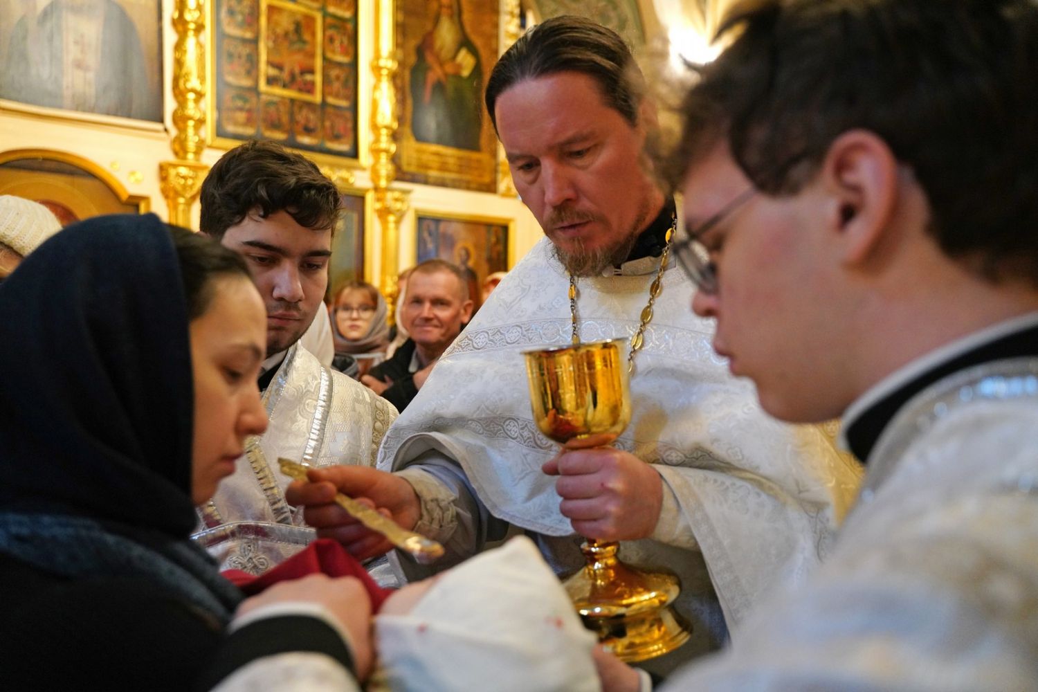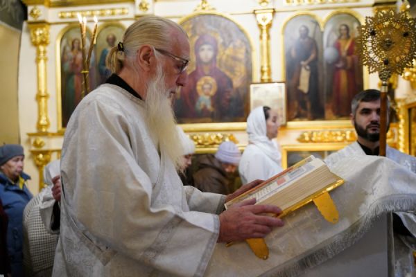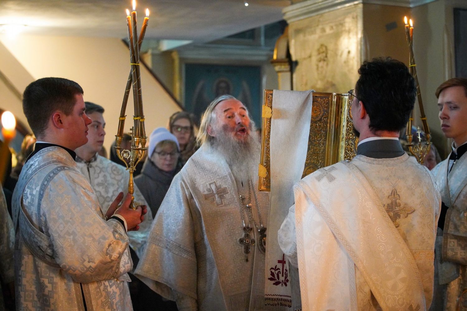 Его Высокопреосвященству сослужили клирики храма иереи Димитрий Иванов, Сергий Асланов и Павел Дурандин, протодиакон Михаил Козловский, диаконы Александр Жирнов и Димитрий Смирнов. Песнопения исполнял хор храма.