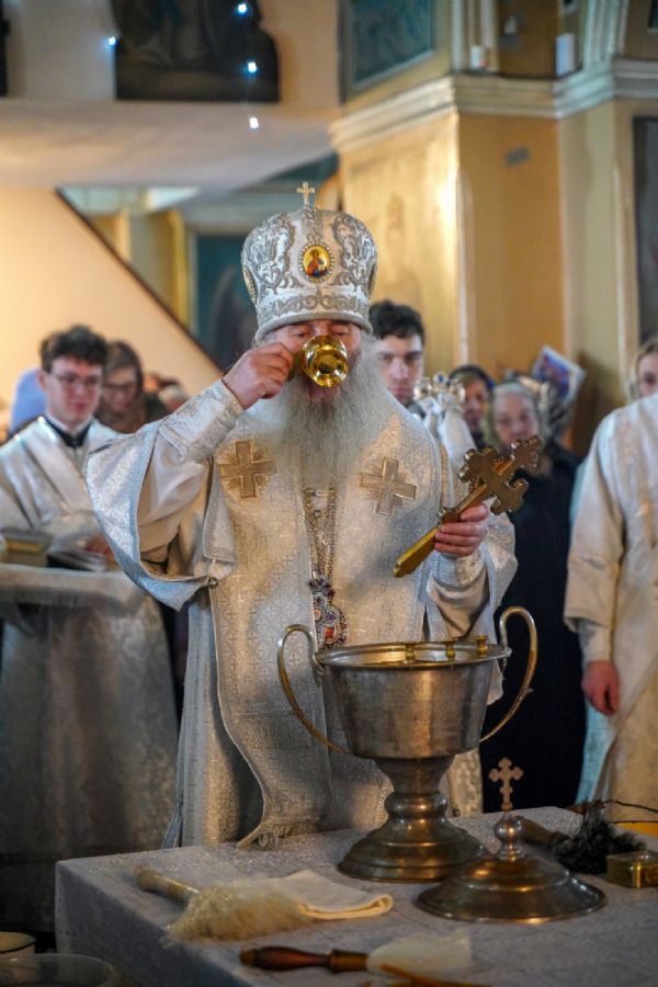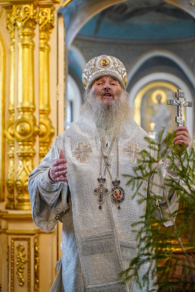 После богослужения митрополит Иоанн обратился к верующим с архипастырским словом: «Сегодняшнее богослужение каждому из нас открыло, что происходило почти две тысячи лет назад в Иудейской пустыне, когда Иоанн Предтеча, услышав голос ангельский, пошел в Иерусалим и там крестил людей, призывая всех очистить покаянием свое сердце и назидая каждого приходящего к нему, как следует жить после крещения, чтобы угодить Богу… А когда к нему пришел Господь, Иоанн указал всем на Него, засвидетельствовав, что это – Агнец Божий, Спаситель мира, пришедший, чтобы взять на Себя все грехи человеческие, и Он будет крестить людей Духом Святым. Да, каждый из нас в таинстве Крещения был Духом Святым освящен и очищен. Когда нас в купель окунали, мы умирали для греха, а когда вынимали, мы восставали для вечной радости от Господа.