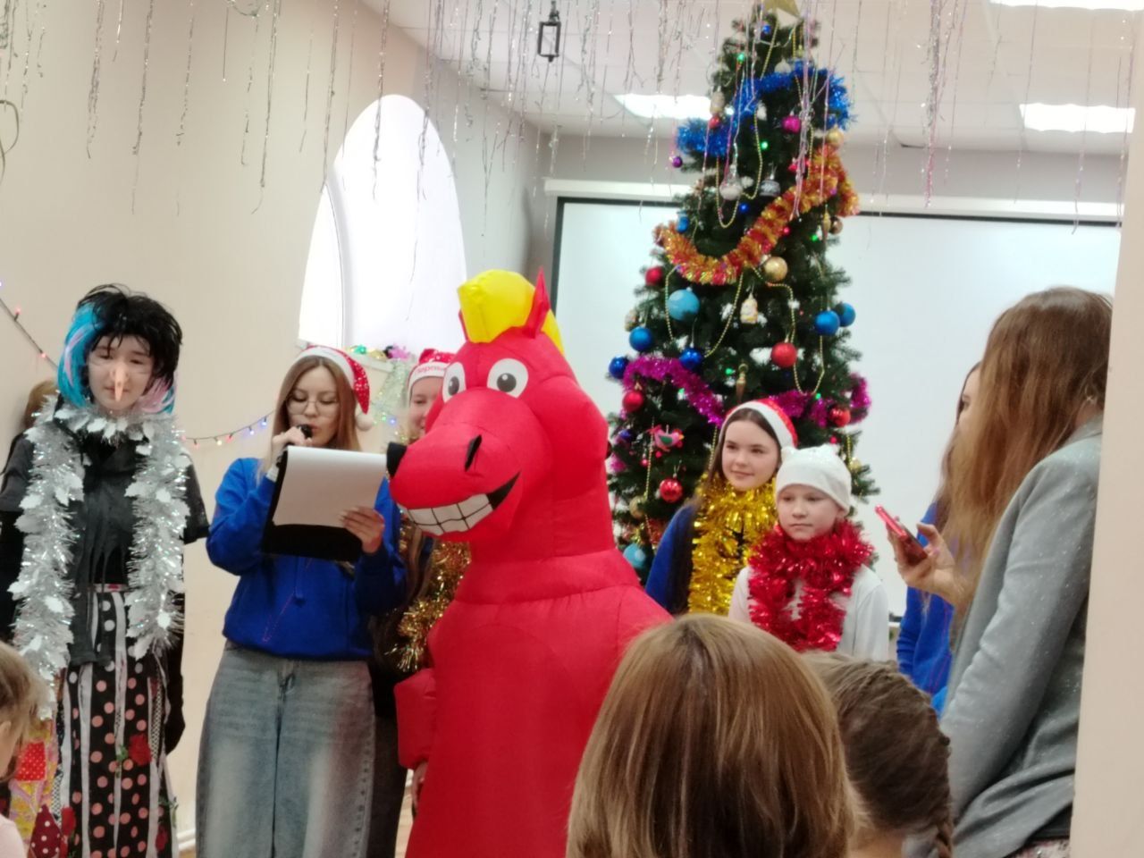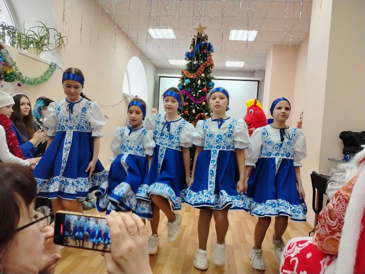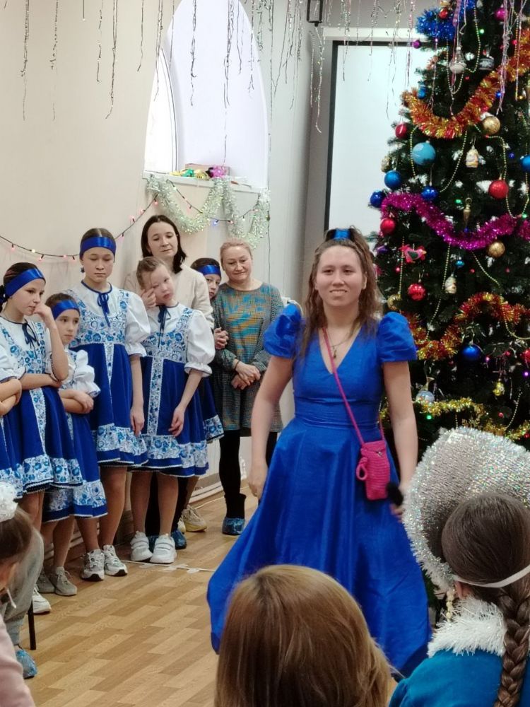 Далее на сцене появились Дед Мороз и Снегурочка и другие сказочные персонажи, которые загадывали загадки, проводили игры и конкурсы, даря детям праздничное настроение. Закончилась встреча совместным хороводом под звуки колядок. Дети прощались с новогодней ёлкой, украшенной блестками и мечтами. Песни, танцы, улыбки – всё это составило единую картину праздника, где каждый стал участником чего-то большего: единства, веры, надежды и детского счастья.