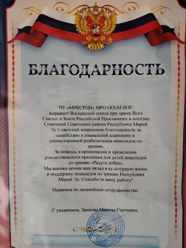 17 января воспитанники воскресной школы храма Всех святых в земле Российской просиявших п. Советский отправилась в Йошкар-Олу, в студию «Волшебная радуга» при региональном отделении Всероссийского общества слепых для празднования Рождества Христова.