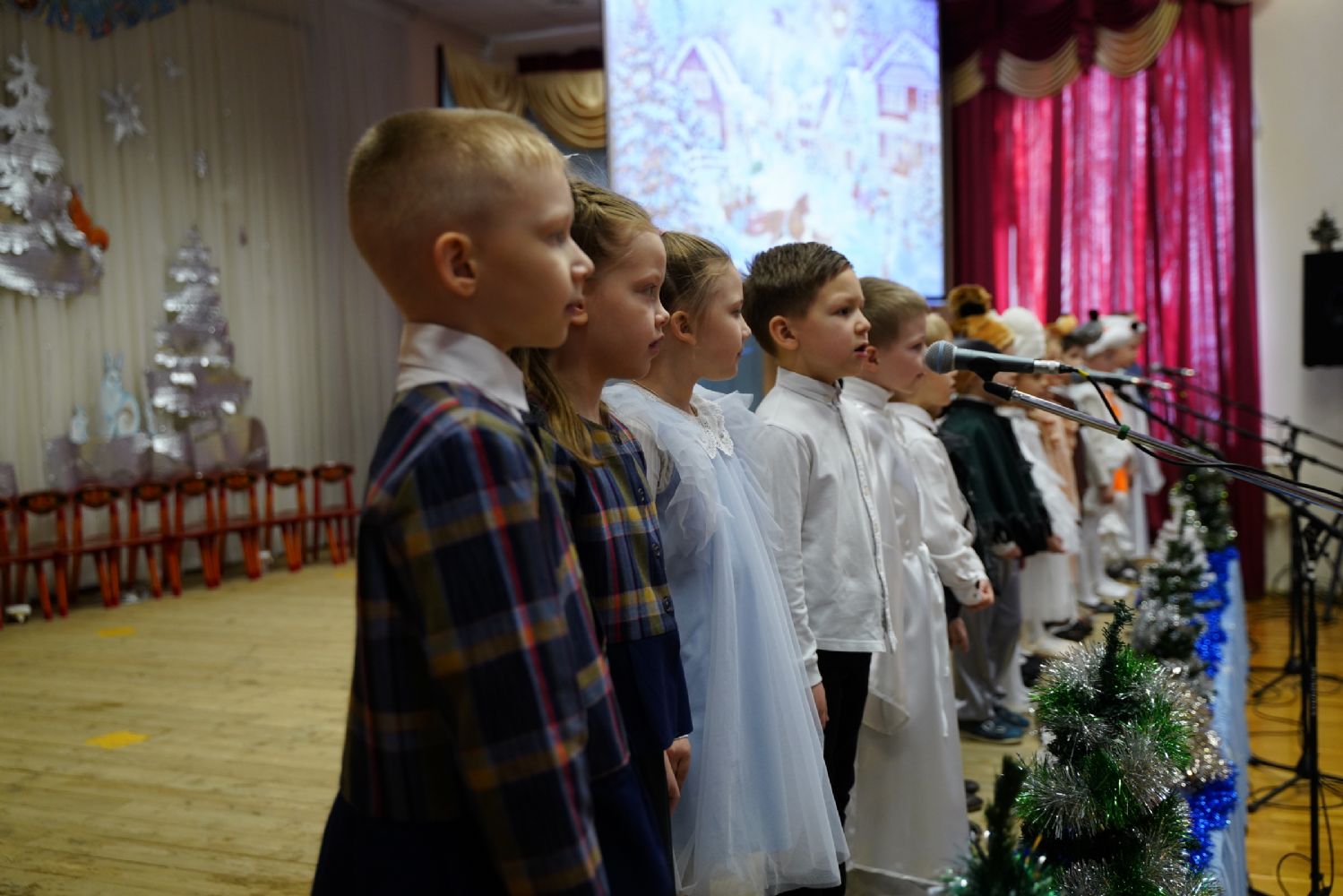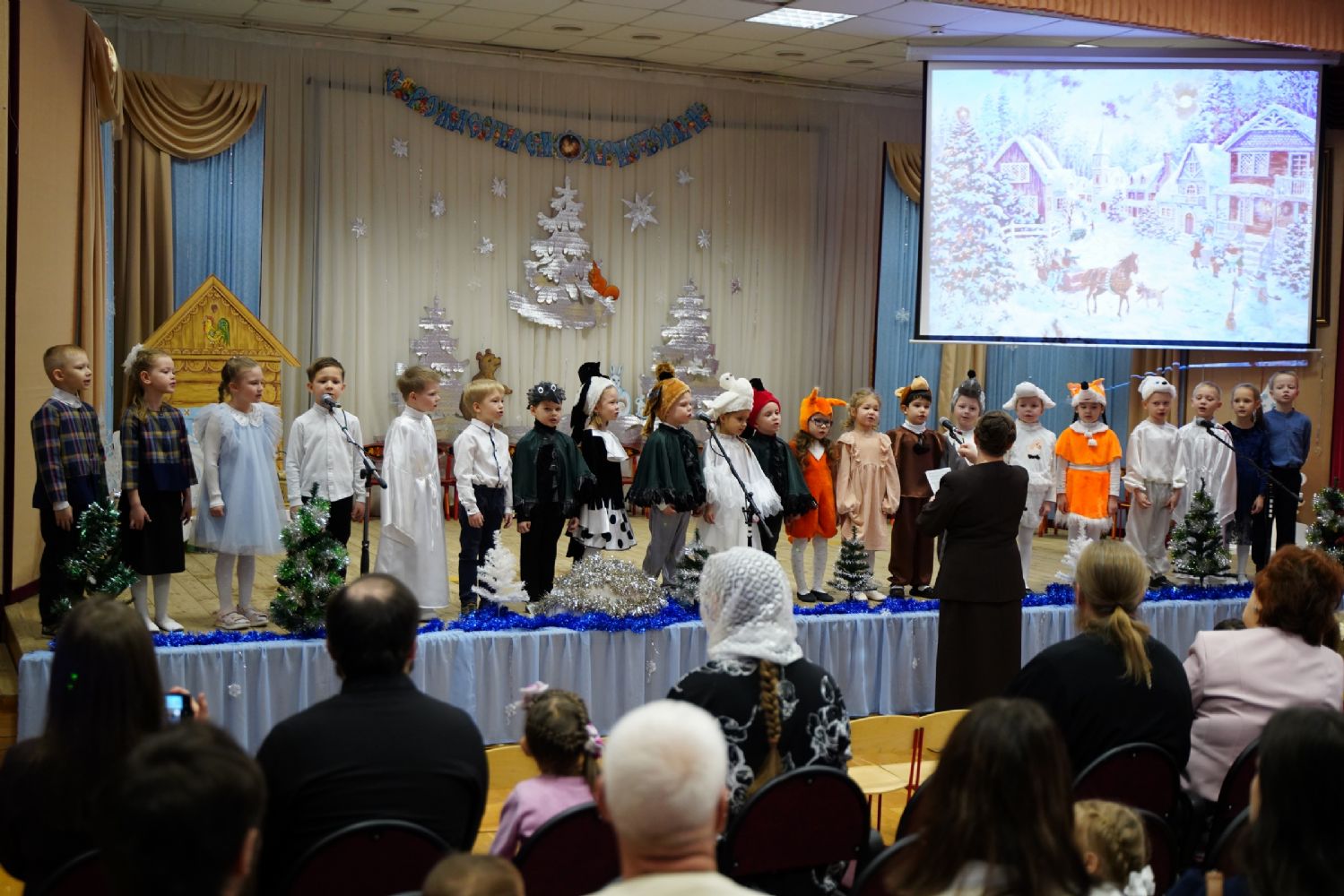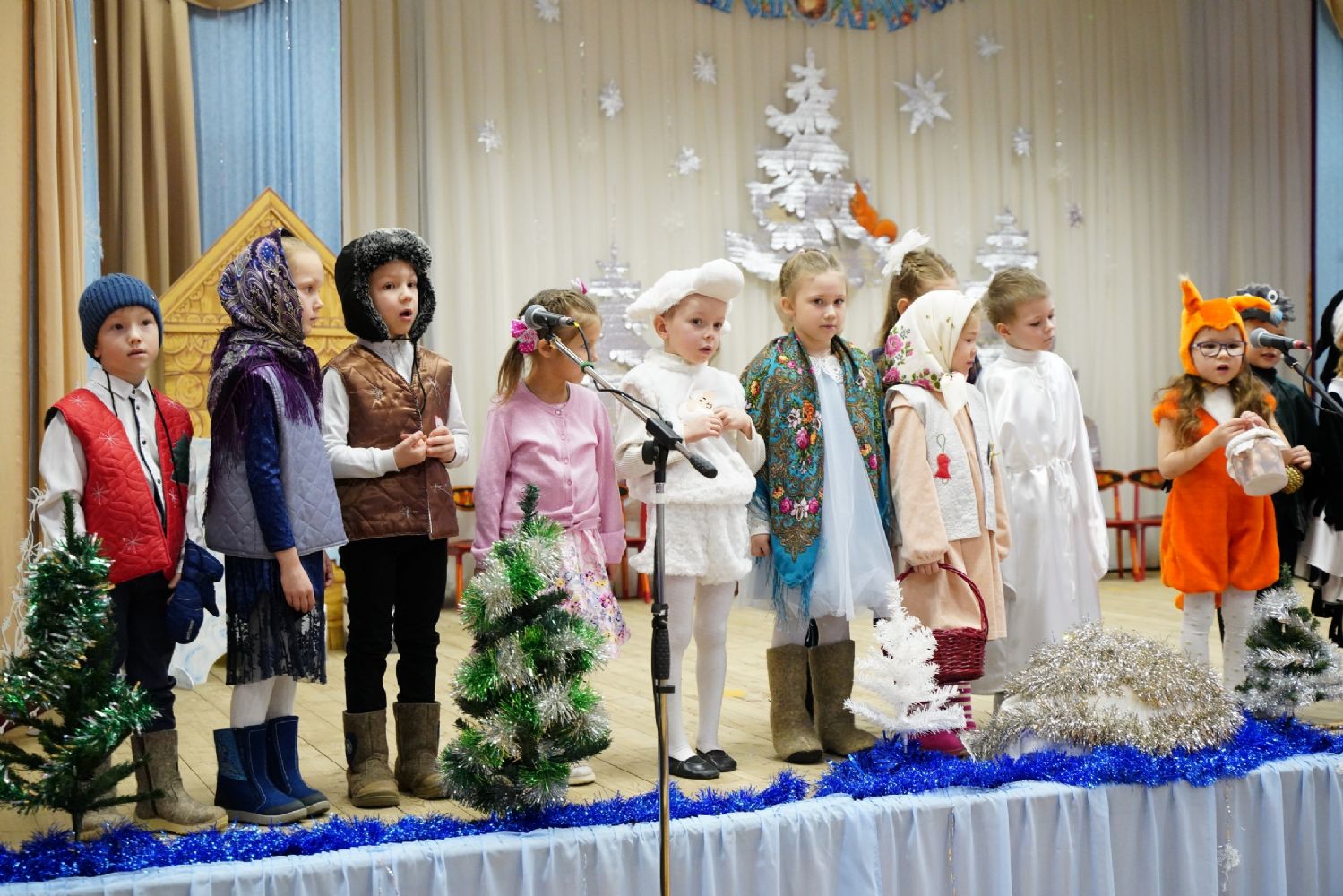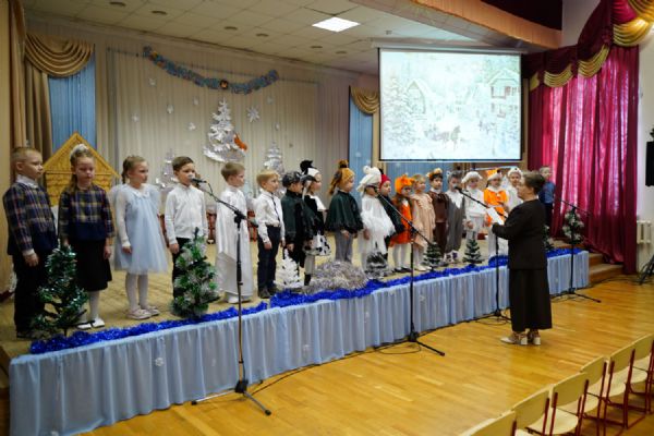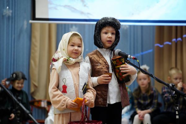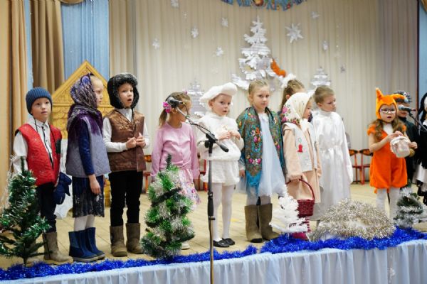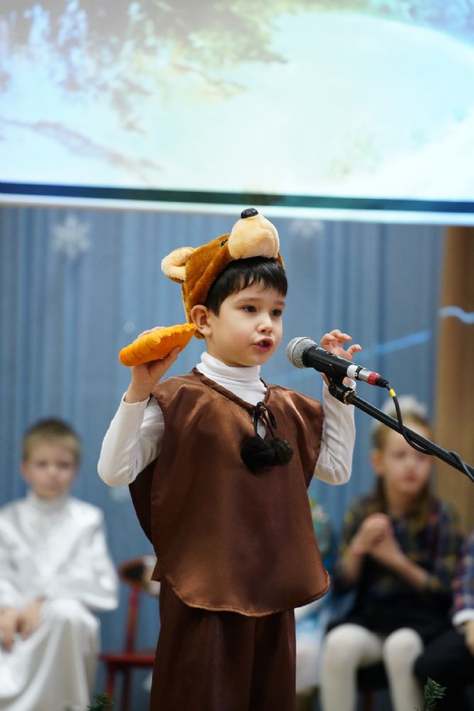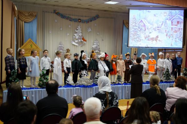 Младшие дети подготовили праздничные стихи и песни, ребята постарше показали сказочный спектакль. В зале царила теплая семейная атмосфера, через свои искренние выступления дети смогли передать радостное настроение и взрослым.