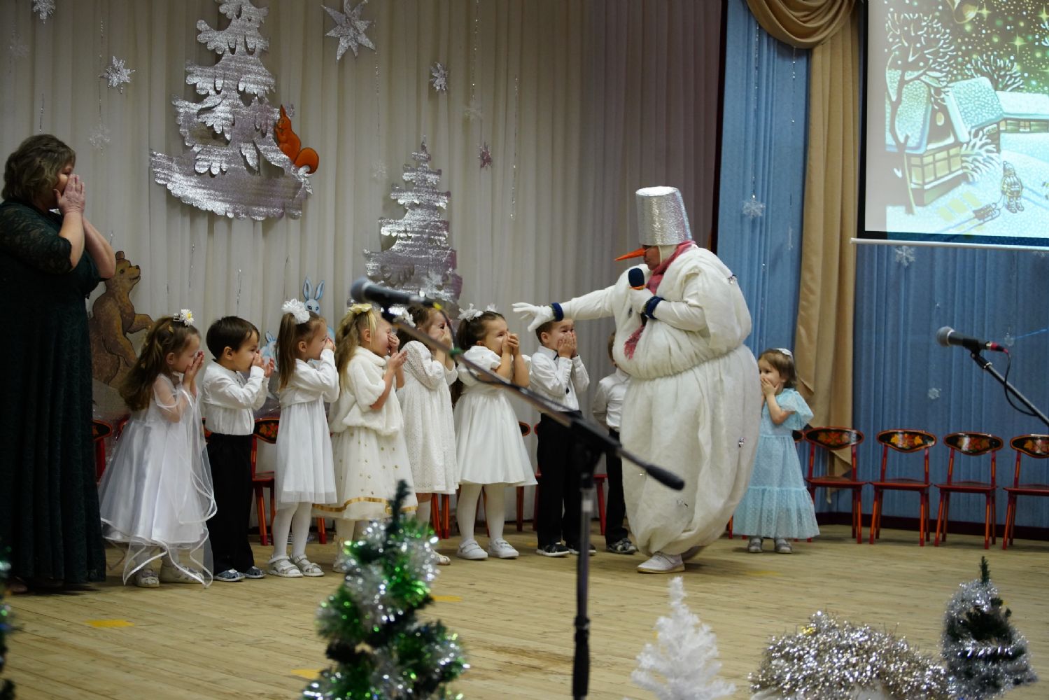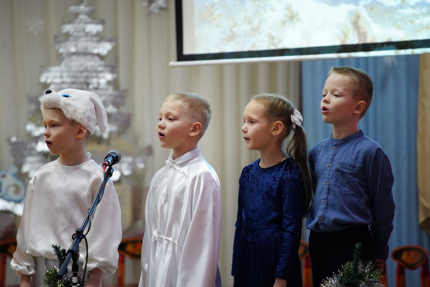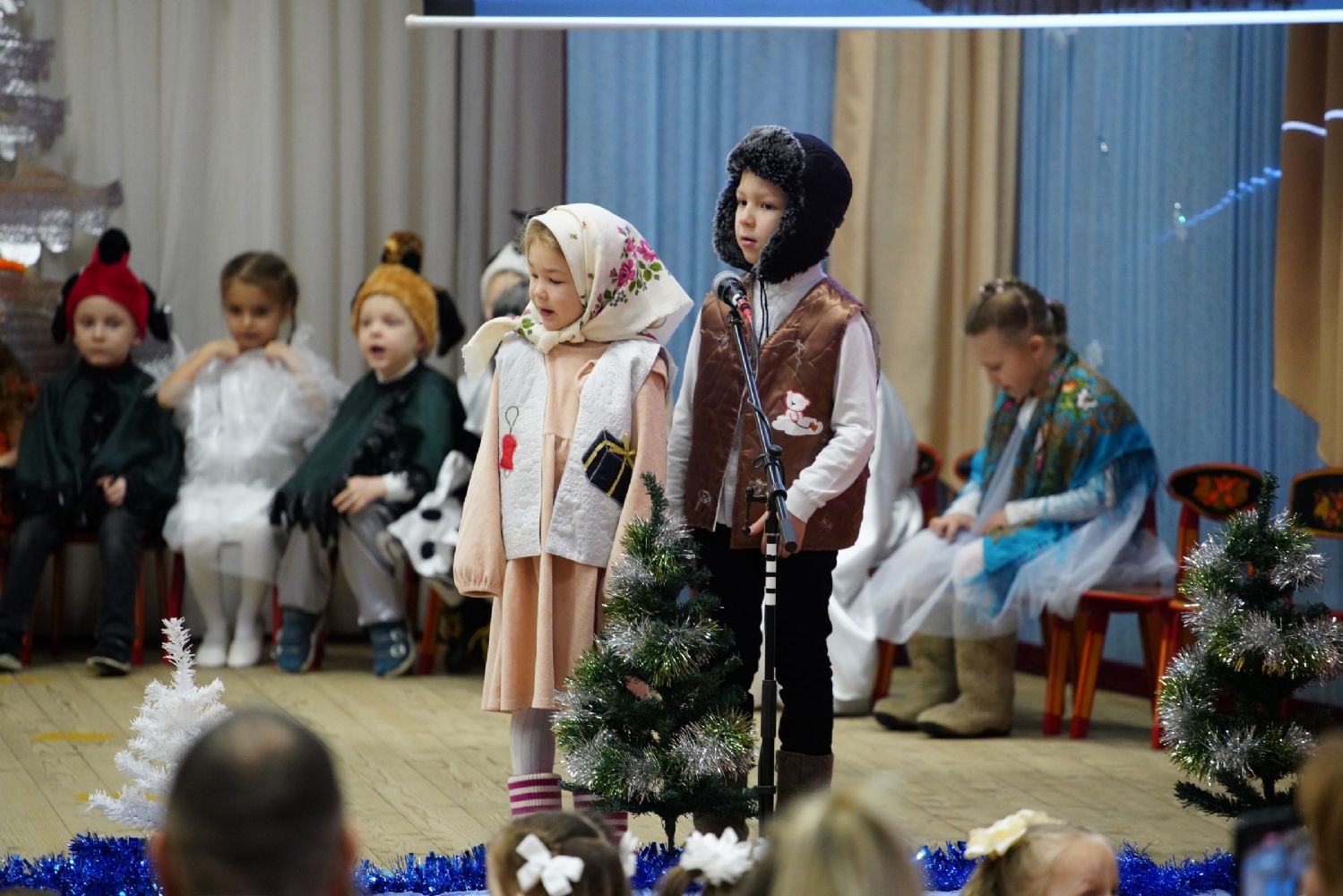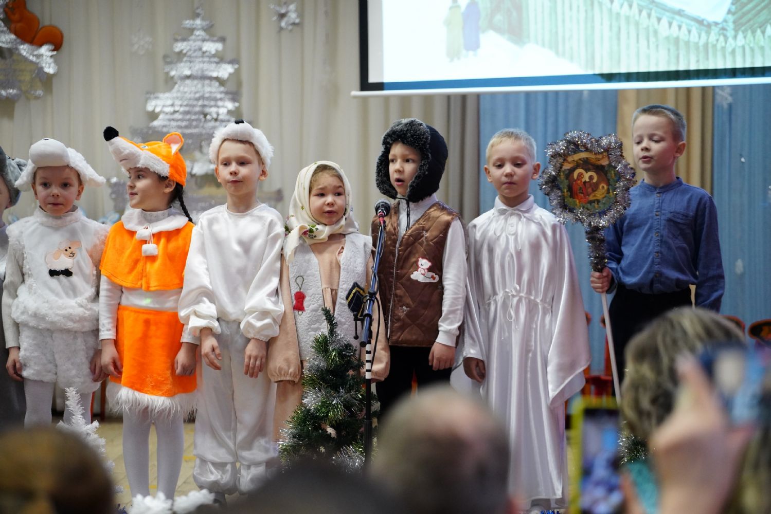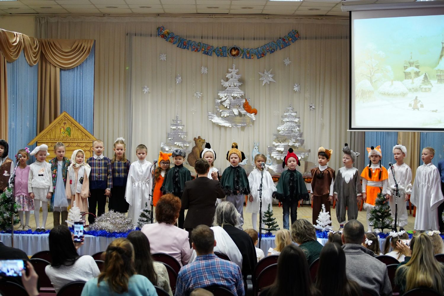 Младшие дети подготовили праздничные стихи и песни, ребята постарше показали сказочный спектакль. В зале царила теплая семейная атмосфера, через свои искренние выступления дети смогли передать радостное настроение и взрослым.