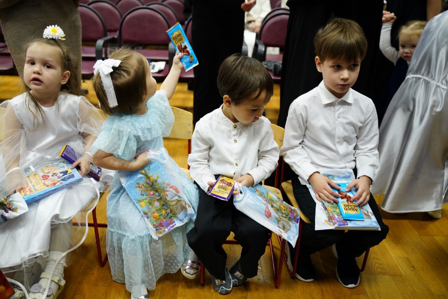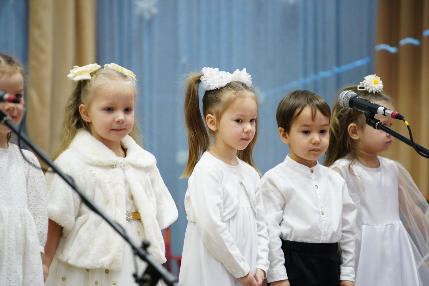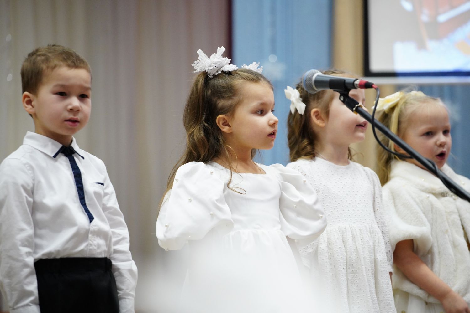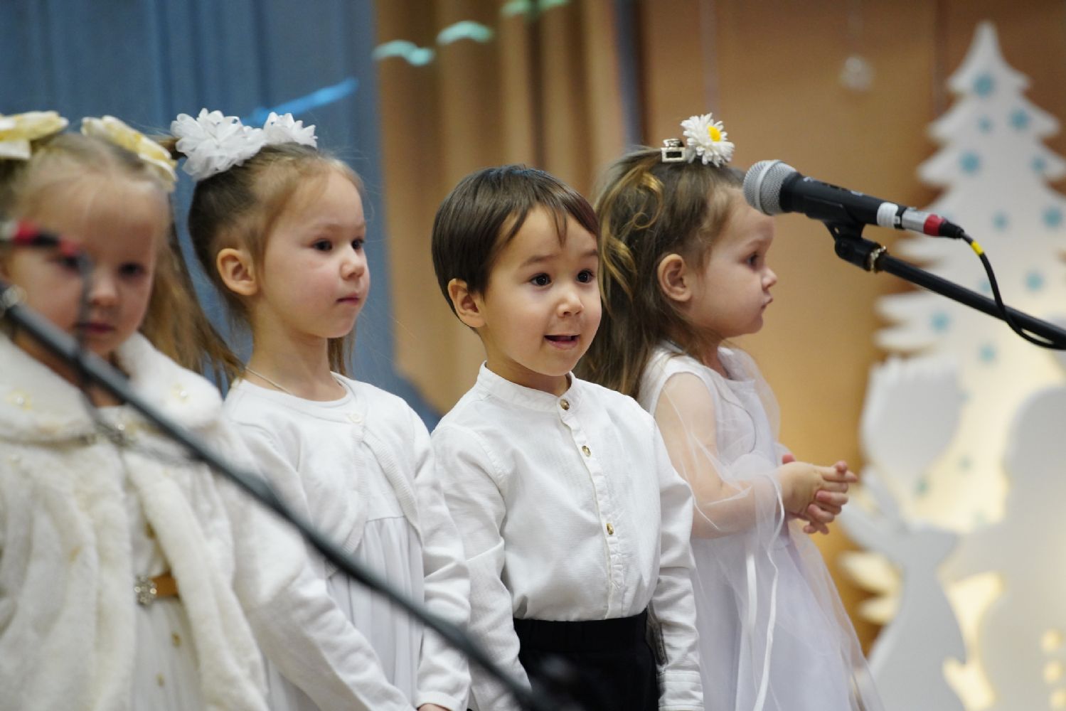 Младшие дети подготовили праздничные стихи и песни, ребята постарше показали сказочный спектакль. В зале царила теплая семейная атмосфера, через свои искренние выступления дети смогли передать радостное настроение и взрослым.