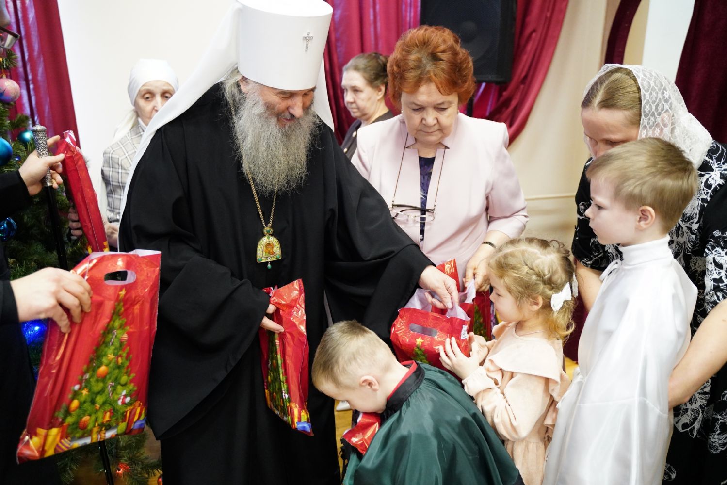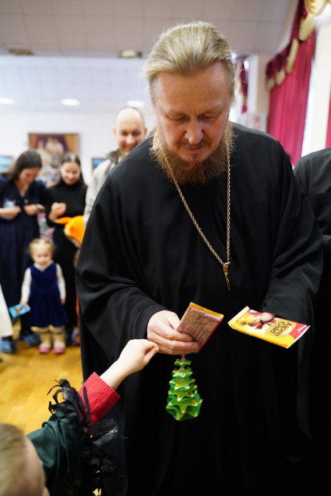 В завершение архипастырь вручил всем детям сладкие подарки.
