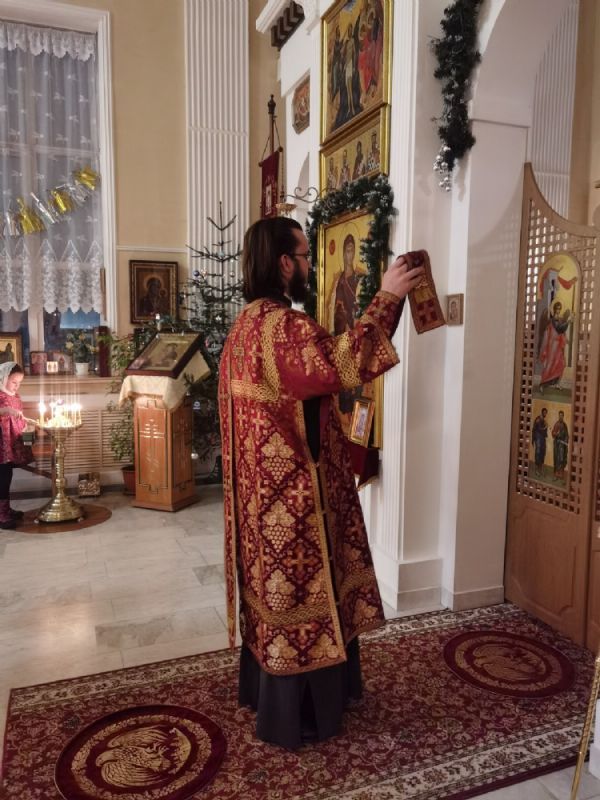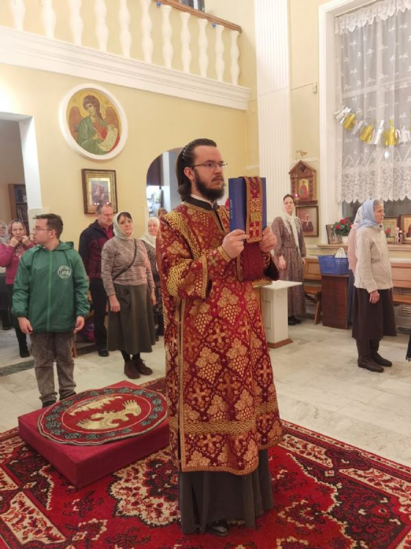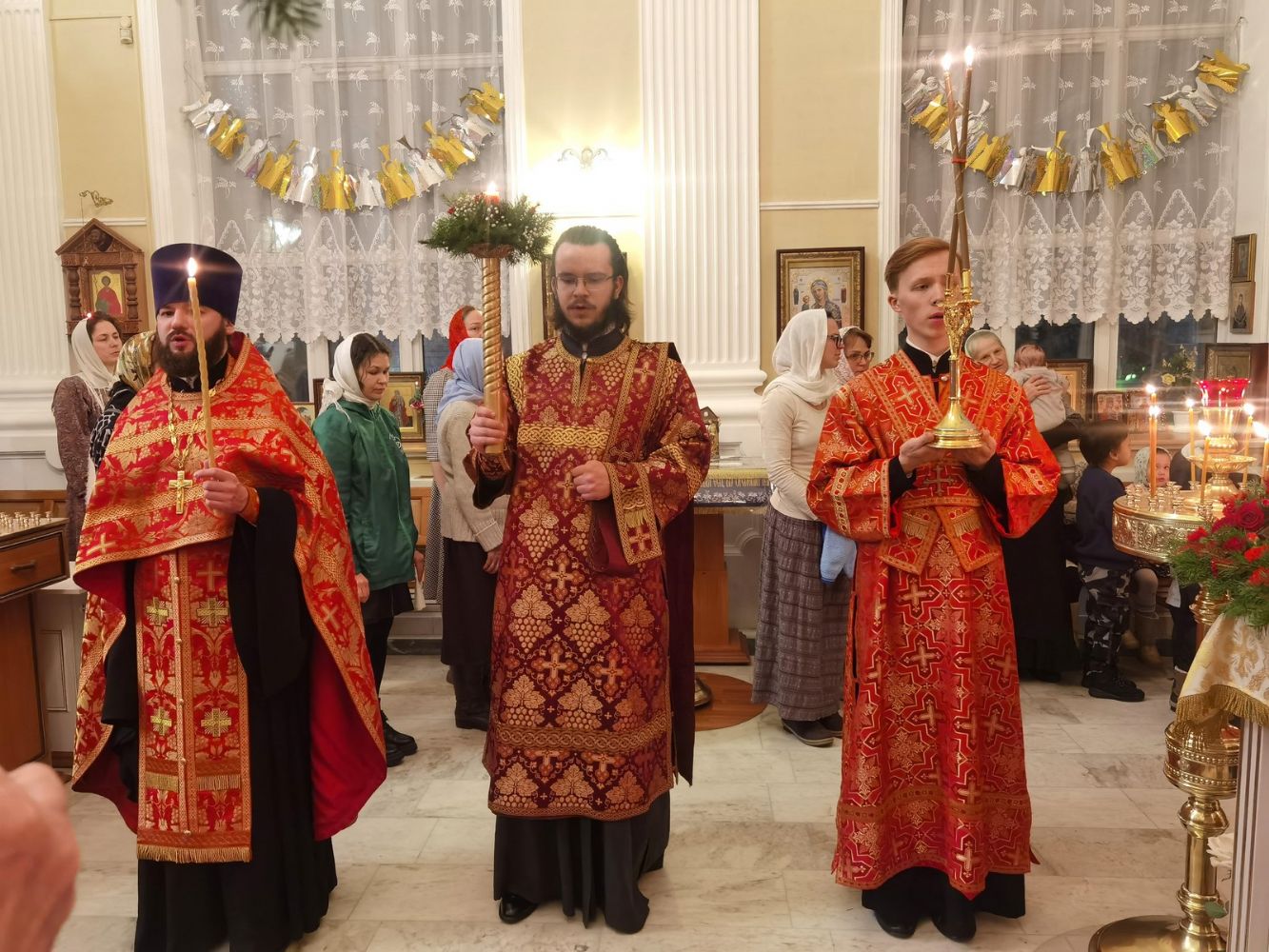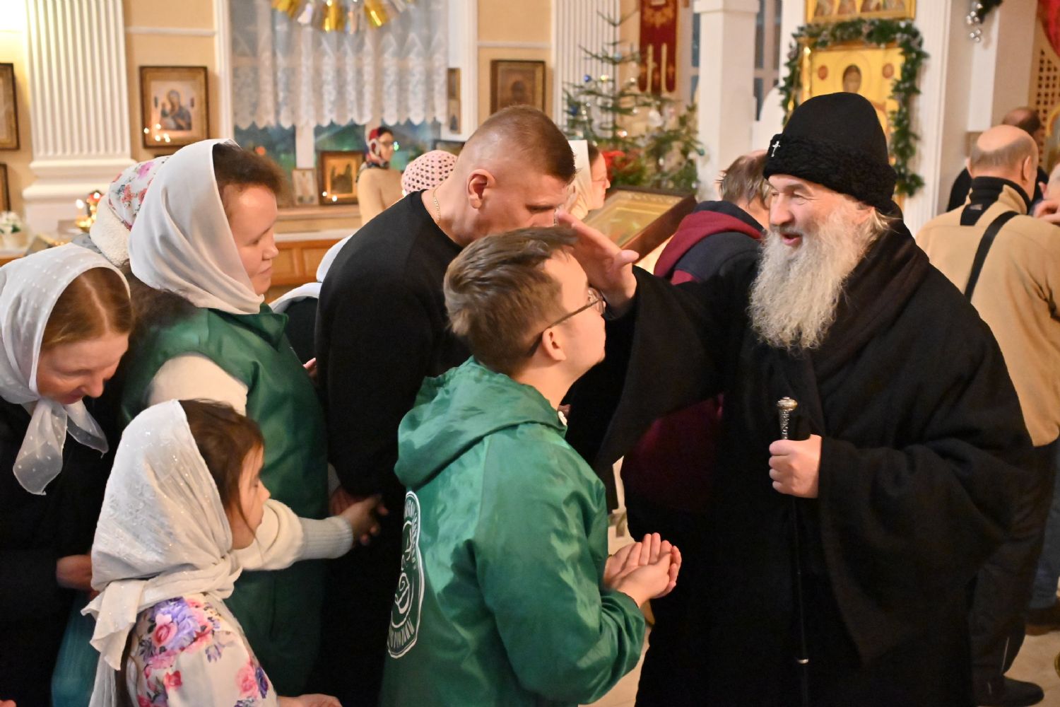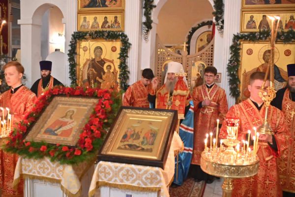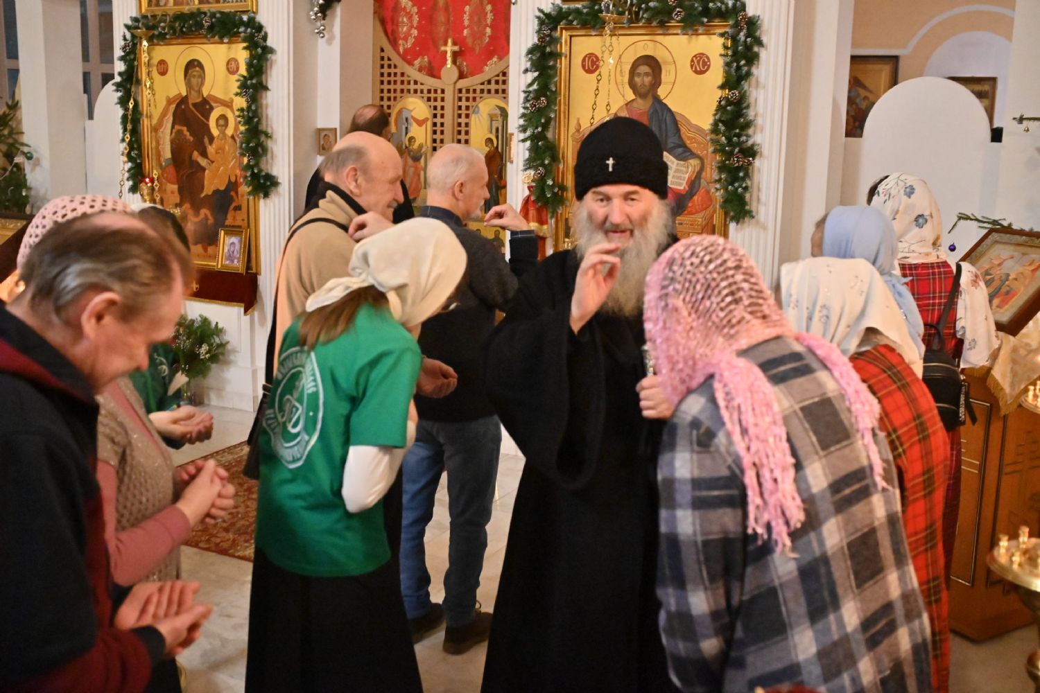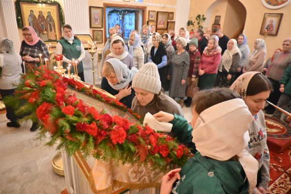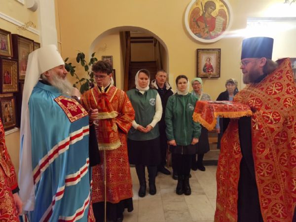 Архипастырю сослужили настоятель храма протоиерей Евгений Сурков, клирики храма иерей Андрей Иванов и диакон Никита Сурков, а также протодиакон Михаил Козловский. Песнопения исполнял хор храма под управлением регента Аллы Симаковой.