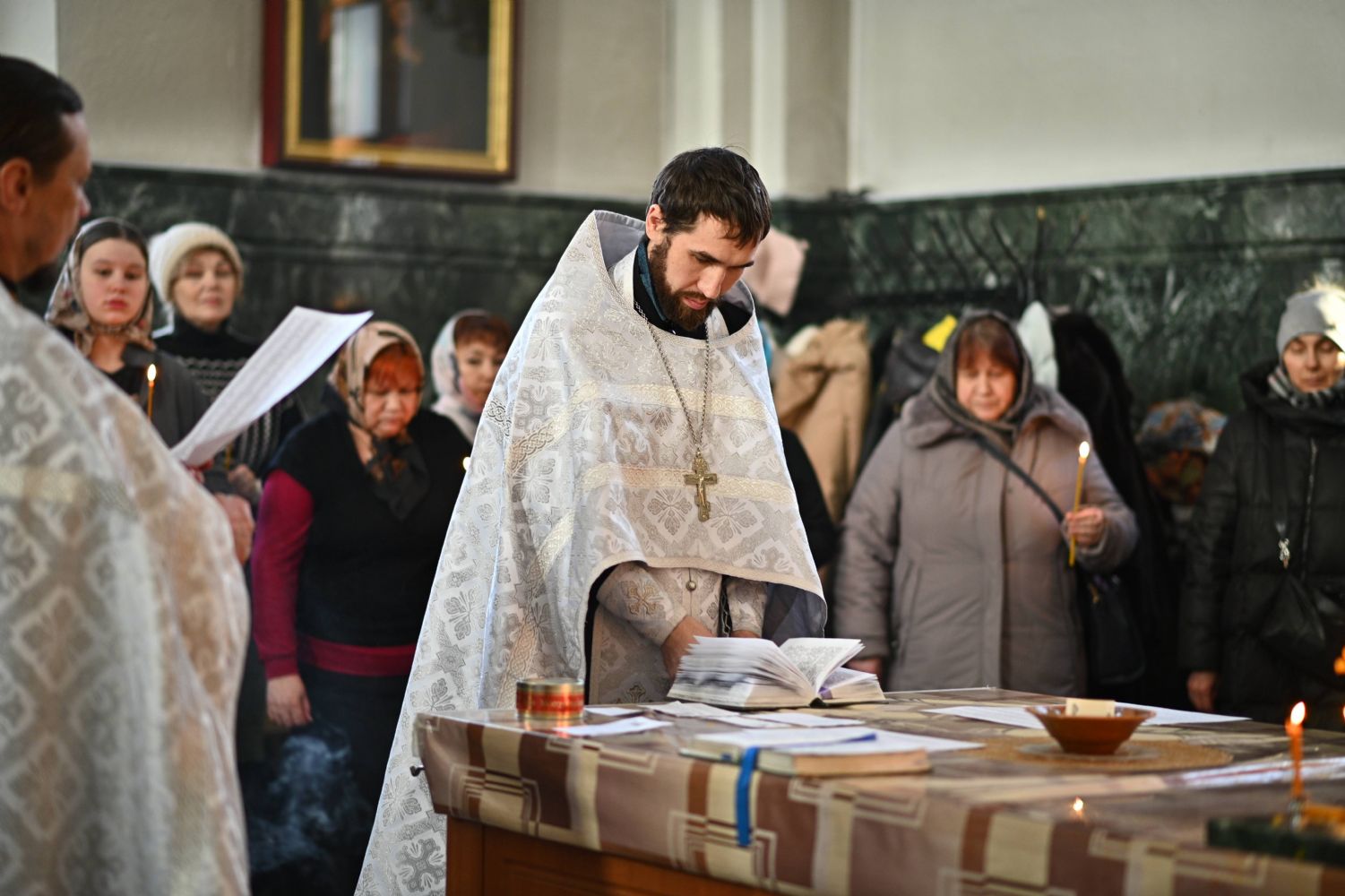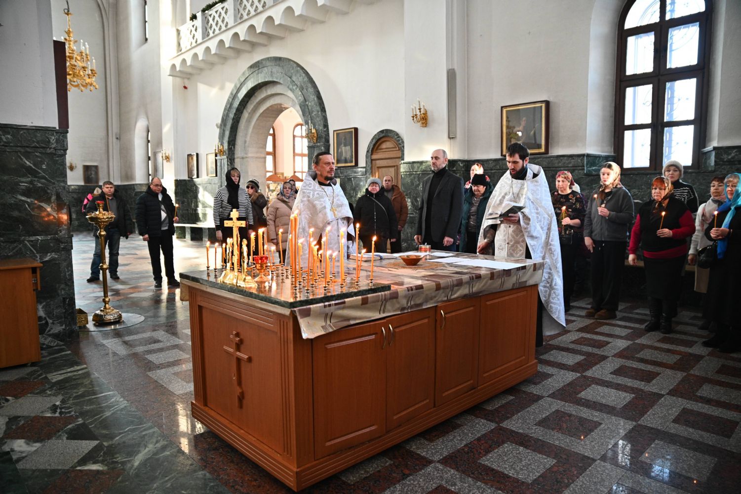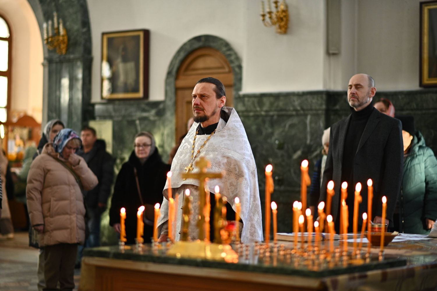 Совершили богослужение клирик кафедрального собора иерей Иоанн Милютин – ответственный по окормлению воинов СВО и их семей Йошкар-Олинской епархии, а также настоятель Воскресенского собора иерей Андрей Кочаков.
