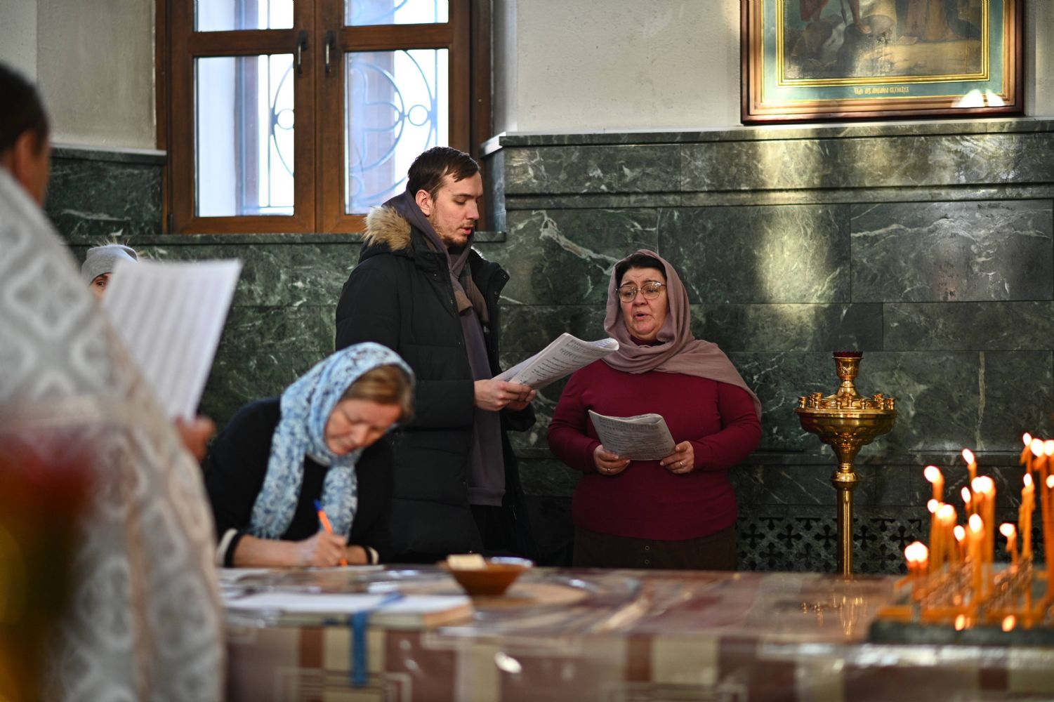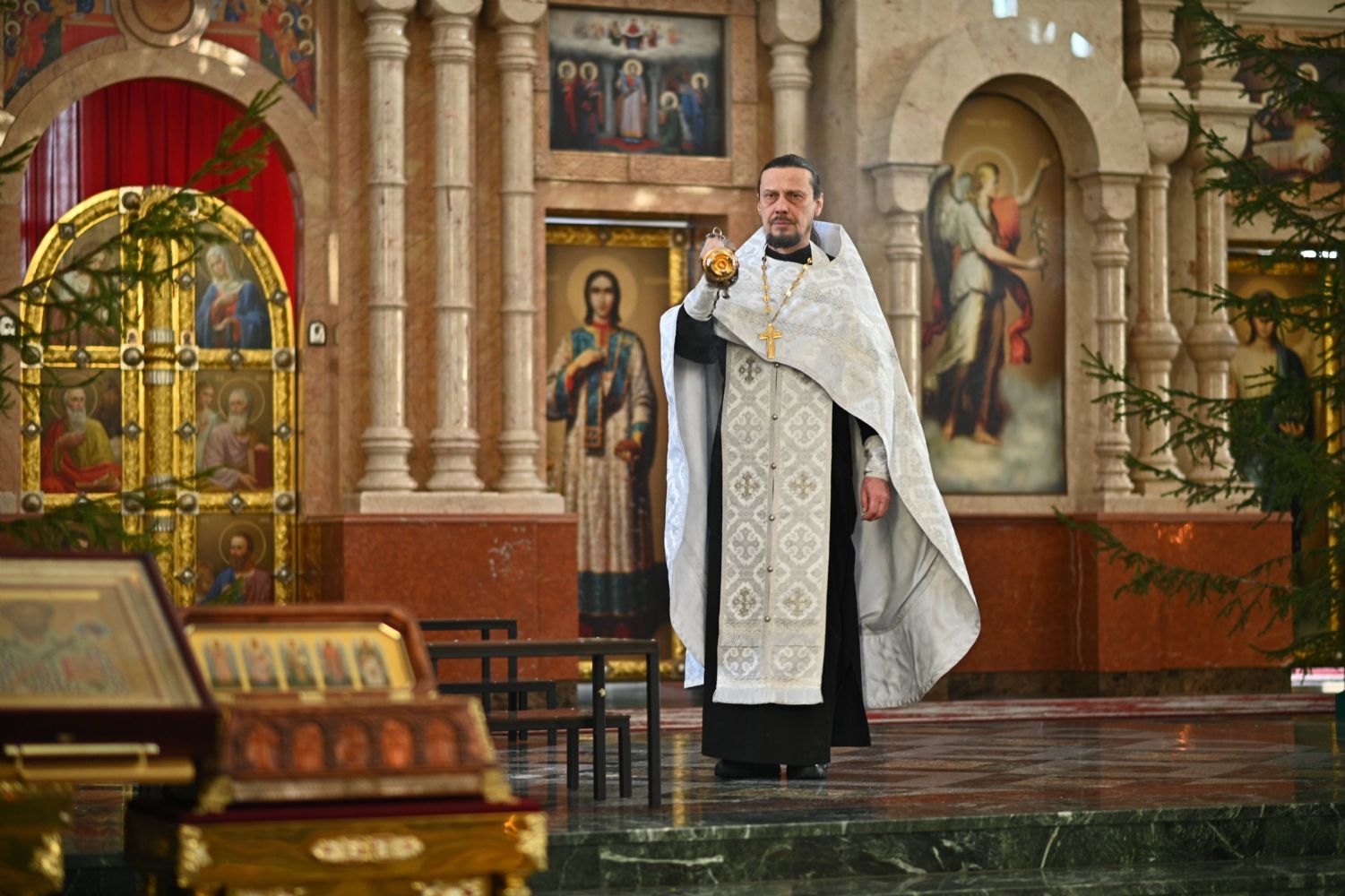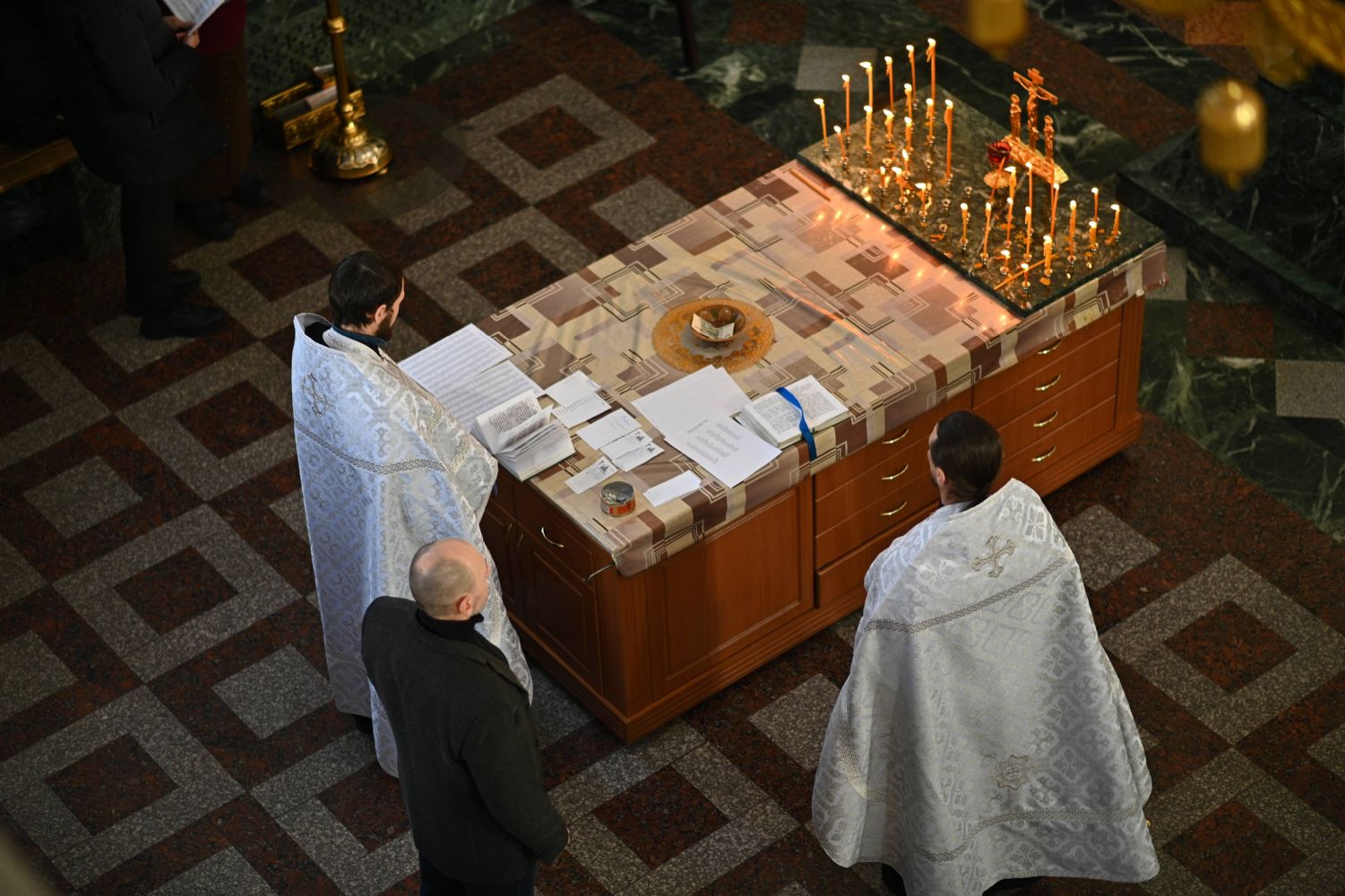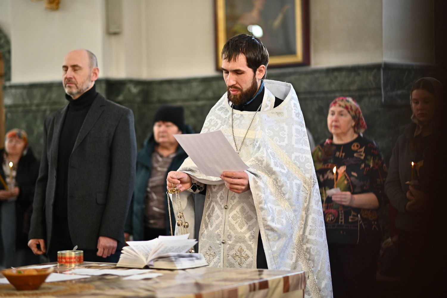 Совершили богослужение клирик кафедрального собора иерей Иоанн Милютин – ответственный по окормлению воинов СВО и их семей Йошкар-Олинской епархии, а также настоятель Воскресенского собора иерей Андрей Кочаков.