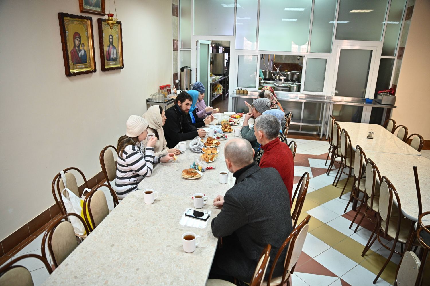 После панихиды в трапезной собора было организовано чаепитие. Каждый из присутствующих мог пообщаться с батюшкой, задать вопросы, рассказать о своих душевных переживаниях. И все тепло пообщались между собой, поделились воспоминаниями о близких, поддержали друг друга.