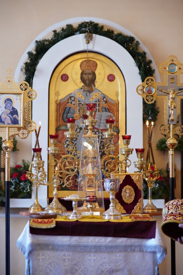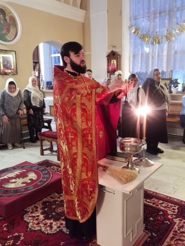 Перед Литургией, по традиции престольных праздников, в храме был совершен водосвятный молебен.