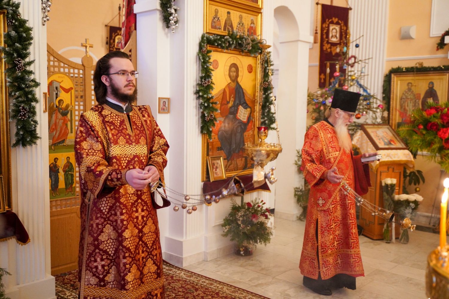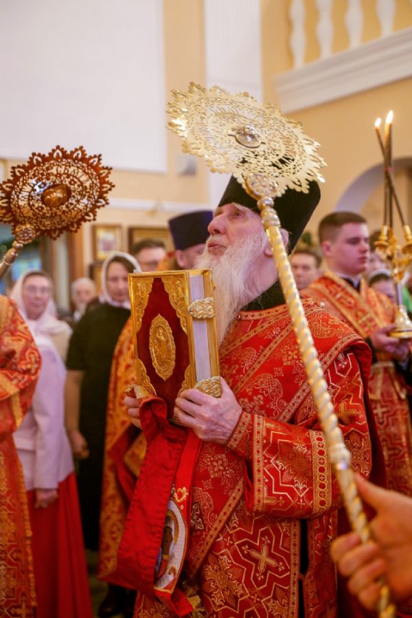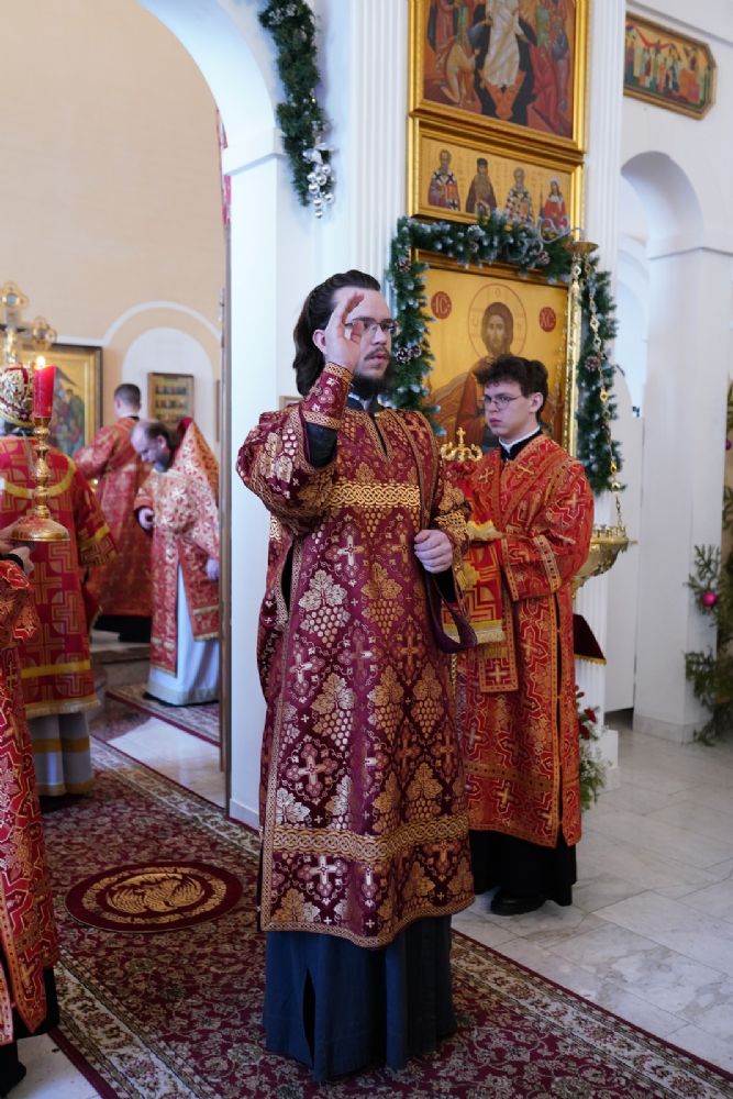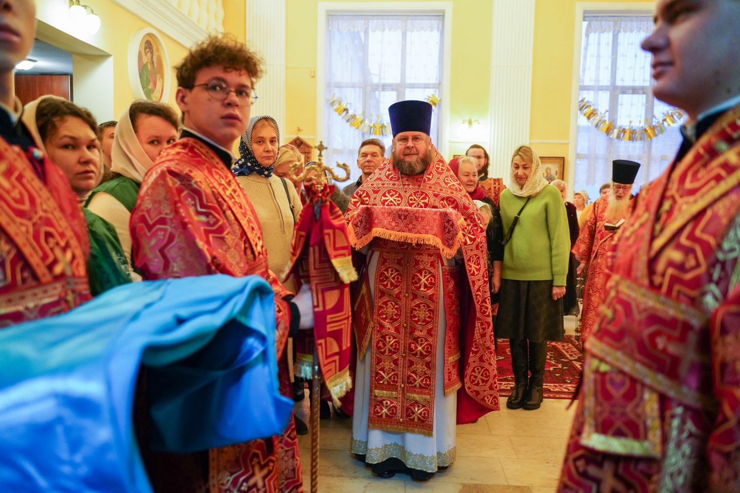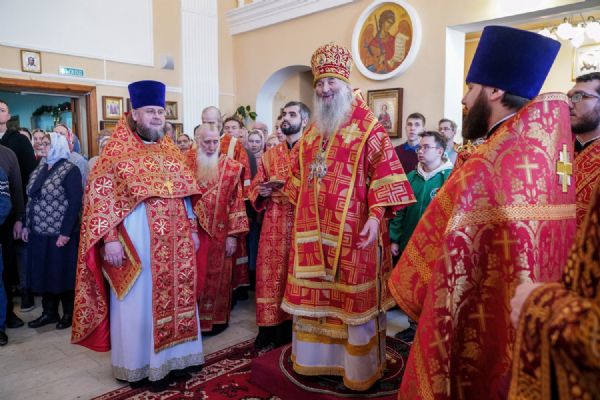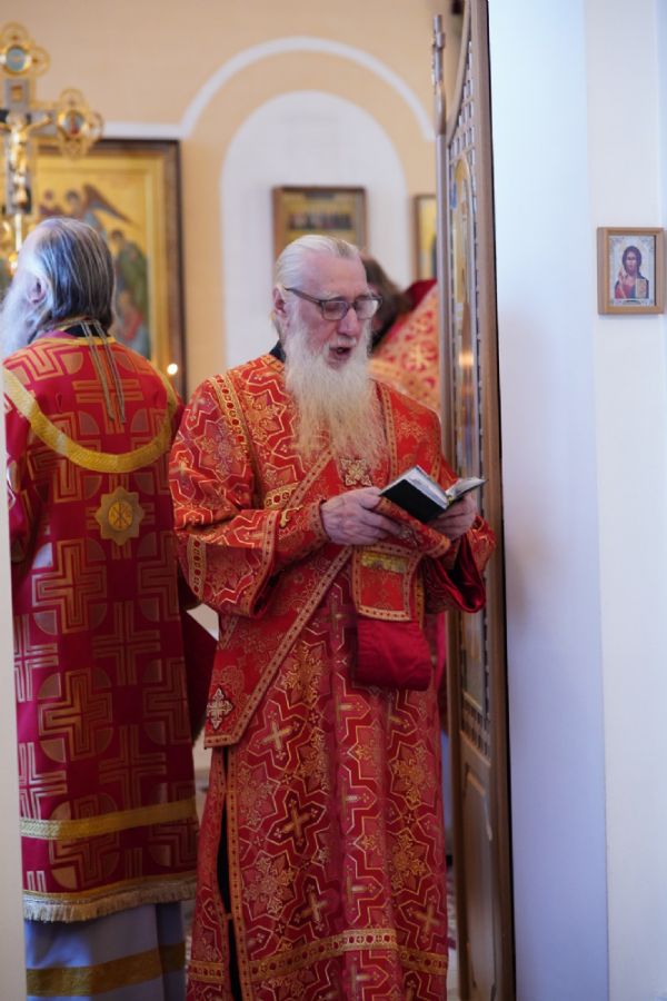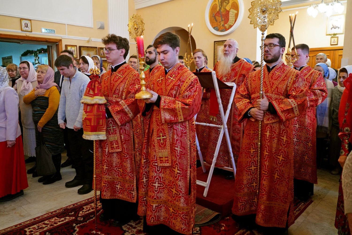 Его Высокопреосвященству сослужили настоятель храма протоиерей Евгений Сурков, клирики храма иерей Андрей Иванов и диакон Никита Сурков, а также протодиакон Михаил Козловский. Песнопения исполняли хор храма под управлением Аллы Симаковой и детский хор гимназии им. Сергия Радонежского под руководством Анастасии Староверовой.