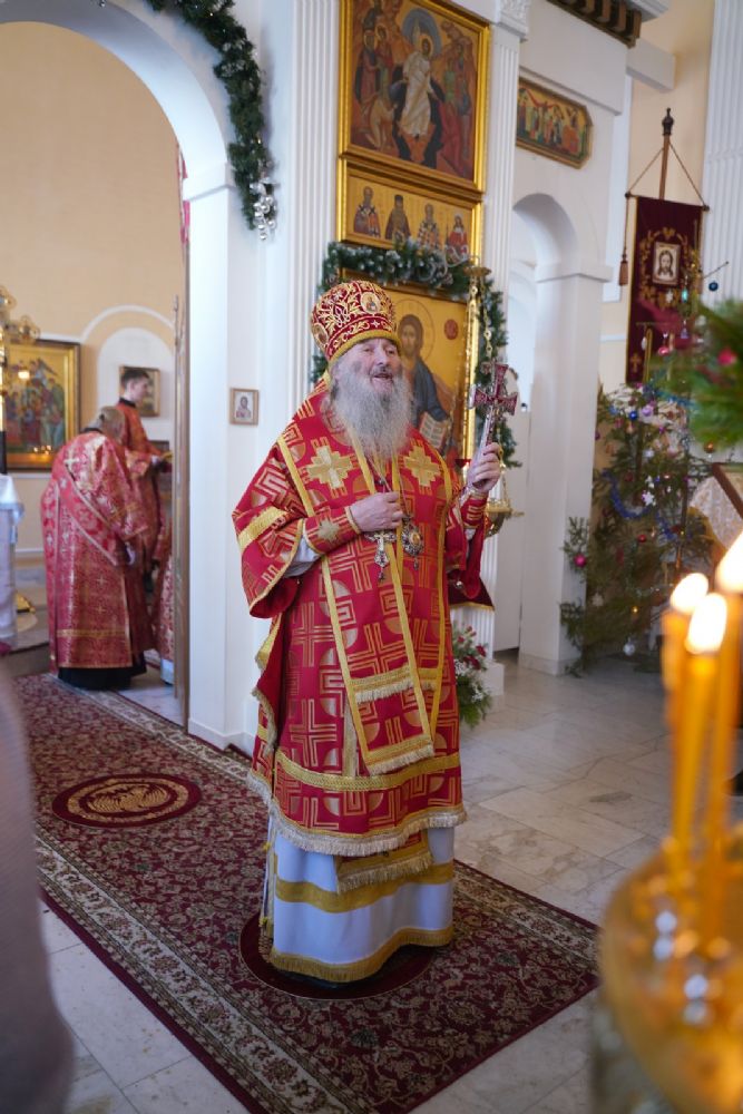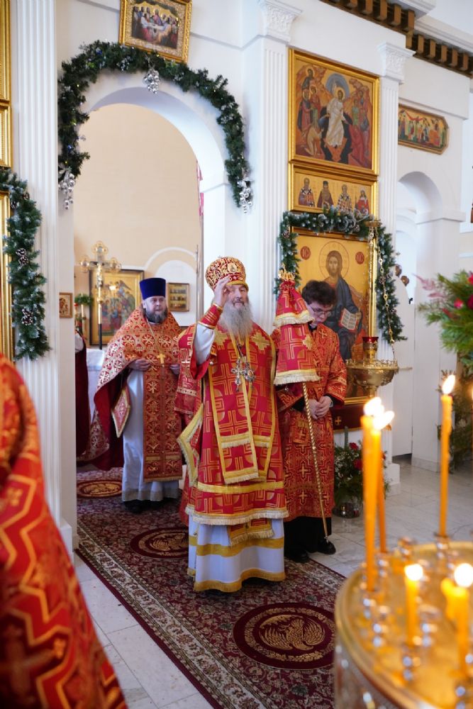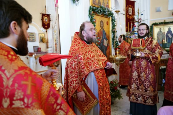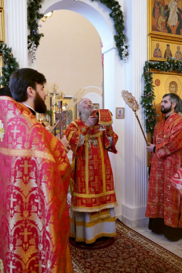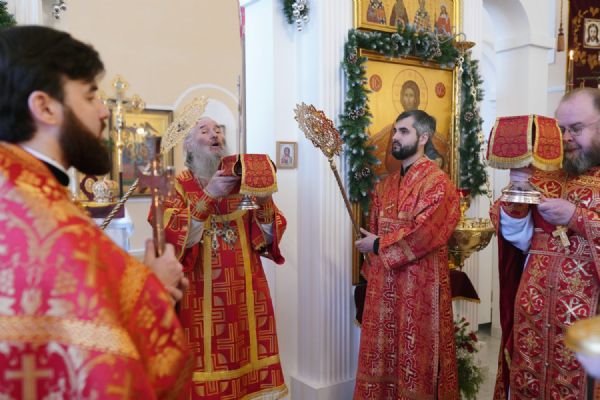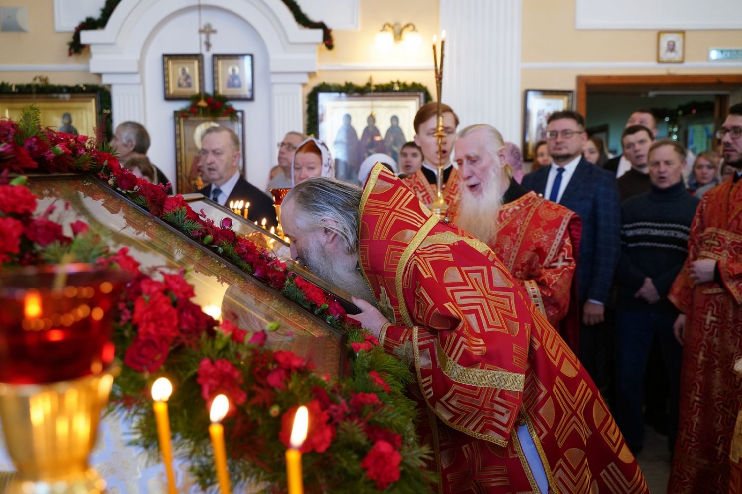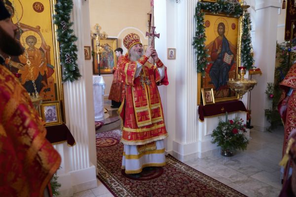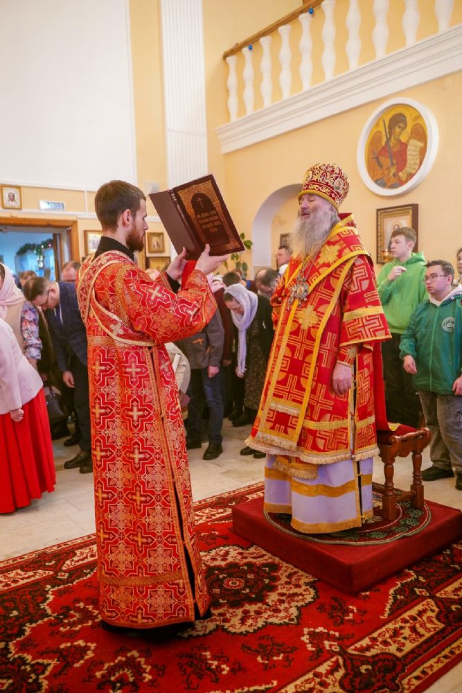 Его Высокопреосвященству сослужили настоятель храма протоиерей Евгений Сурков, клирики храма иерей Андрей Иванов и диакон Никита Сурков, а также протодиакон Михаил Козловский. Песнопения исполняли хор храма под управлением Аллы Симаковой и детский хор гимназии им. Сергия Радонежского под руководством Анастасии Староверовой.