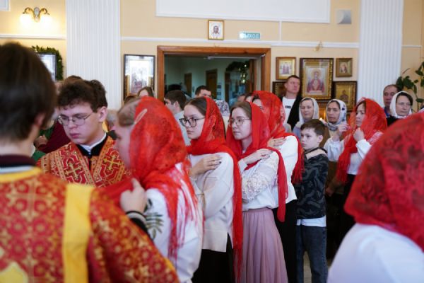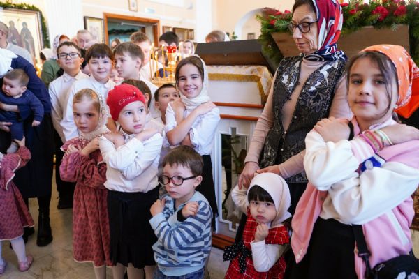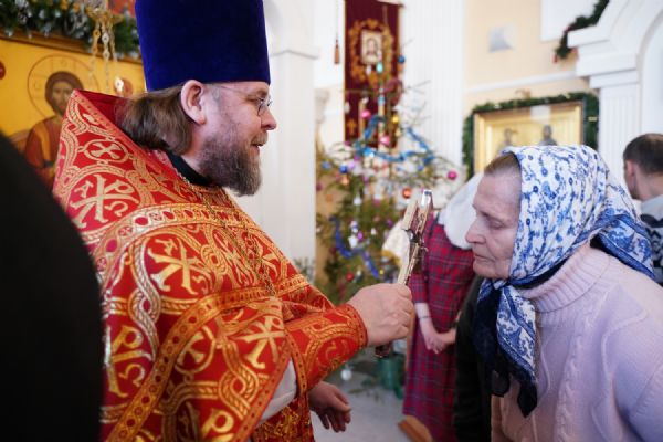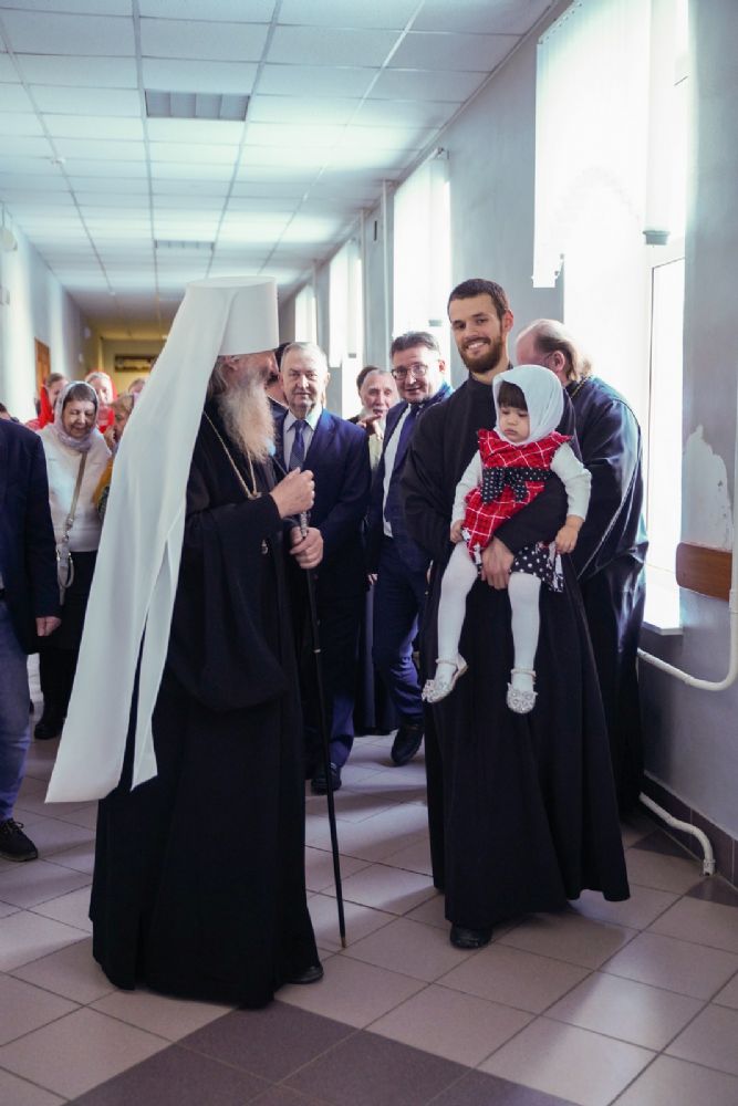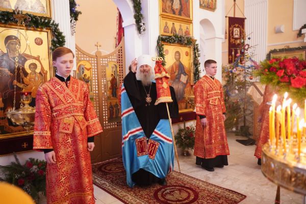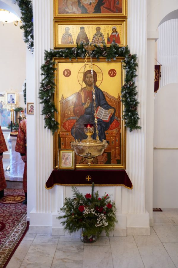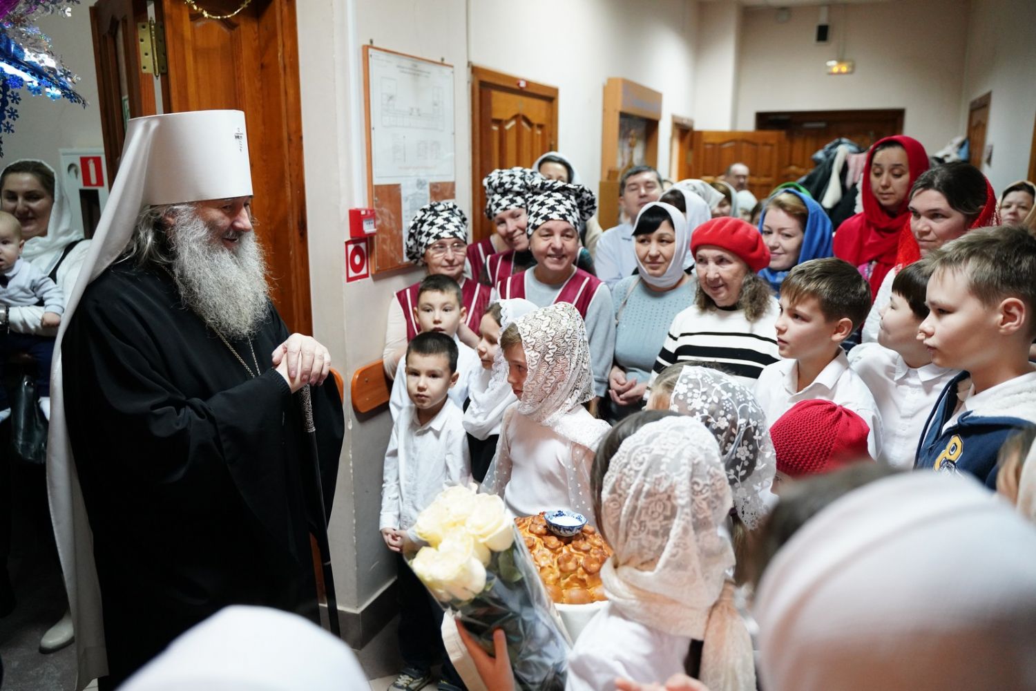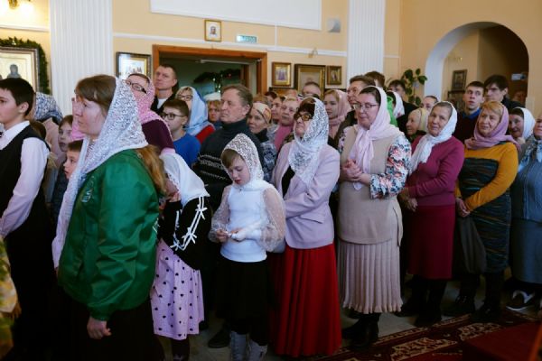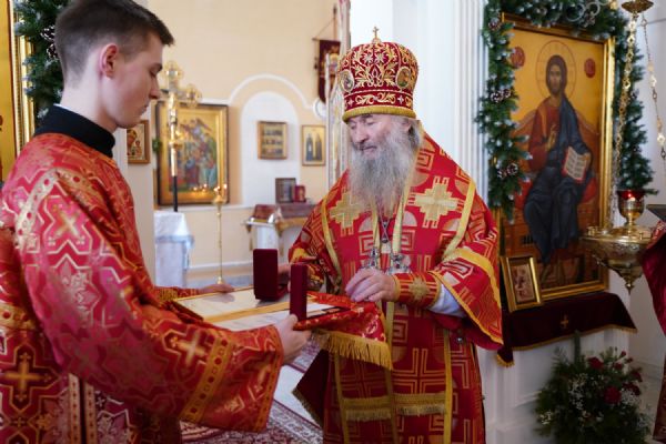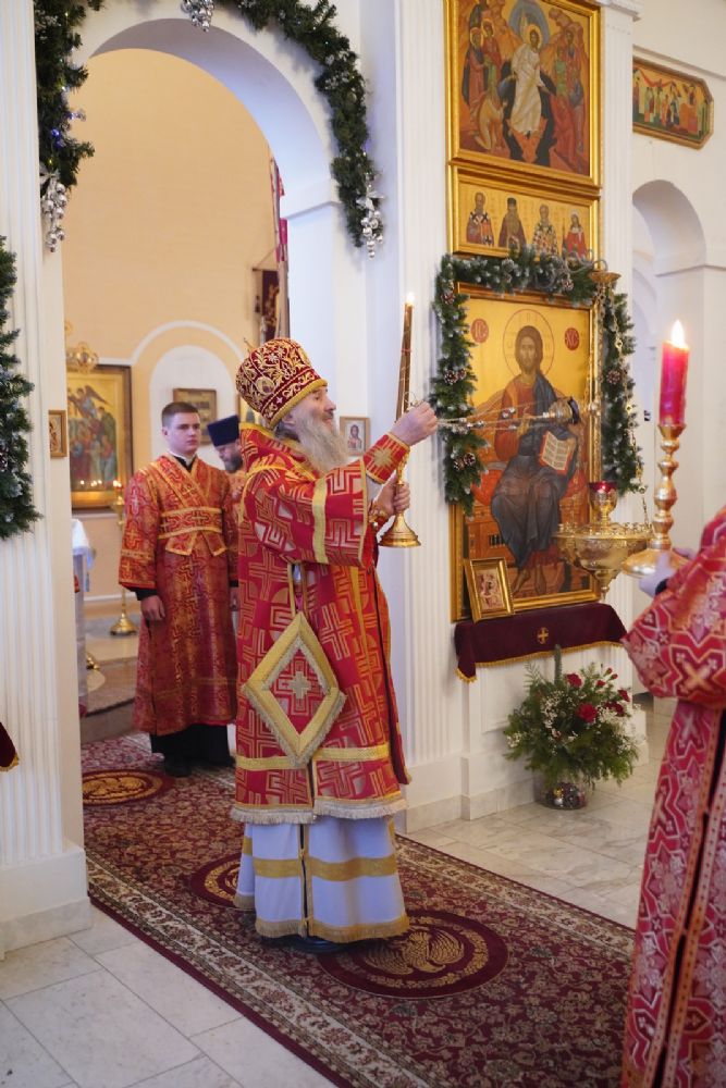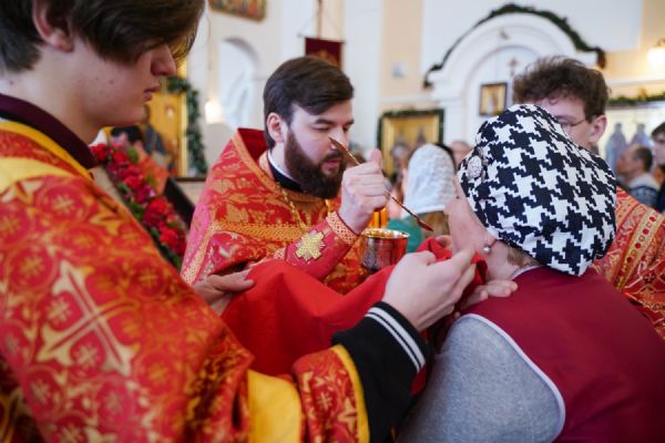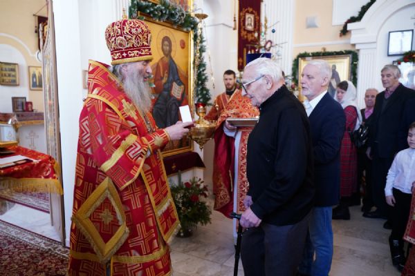 Его Высокопреосвященству сослужили настоятель храма протоиерей Евгений Сурков, клирики храма иерей Андрей Иванов и диакон Никита Сурков, а также протодиакон Михаил Козловский. Песнопения исполняли хор храма под управлением Аллы Симаковой и детский хор гимназии им. Сергия Радонежского под руководством Анастасии Староверовой.