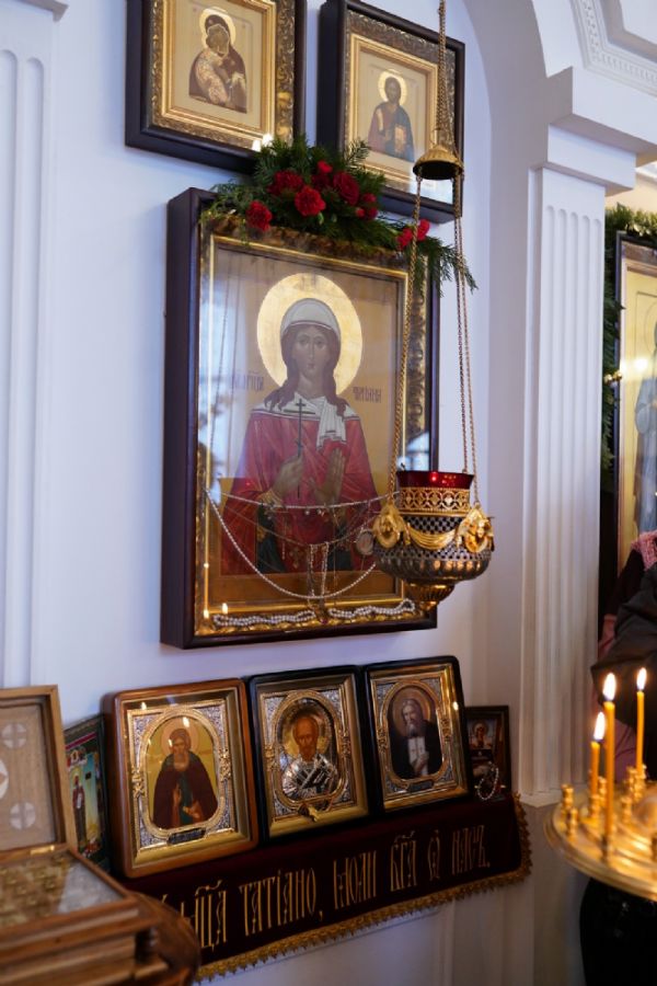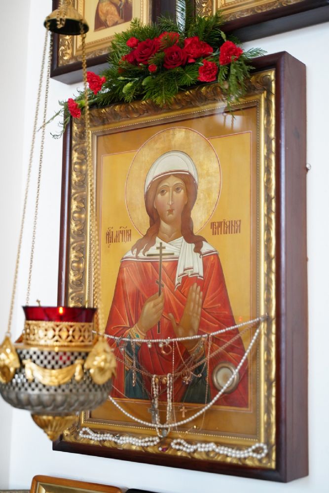 Вот сегодня мы с вами чествуем святую мученицу Татиану, которая своей благочестивой жизнью показала, что значит быть с Богом. Эта юная дева полностью отдала себя на служение людям, её любовь была настолько велика, что ни один нуждающийся в помощи не оставался без её милости и духовного попечения. А когда наступило время испытания её веры, она, претерпев все испытания, получила от Господа мученический венец. И нам всем, особенно студентам, став их духовной покровительницей, показала, что с Богом можно победить всех и вся», – отметил владыка и поздравил всех Татьян с именинами.