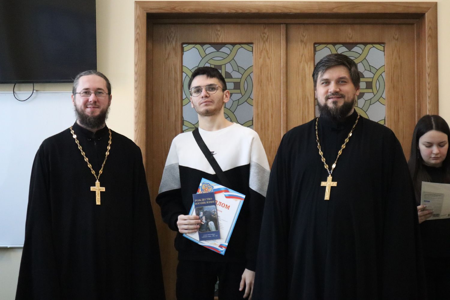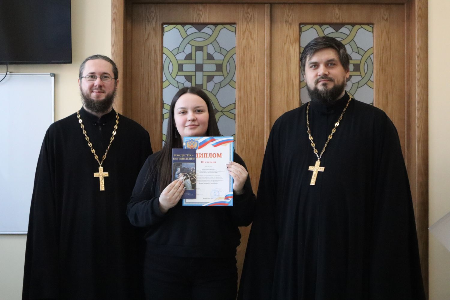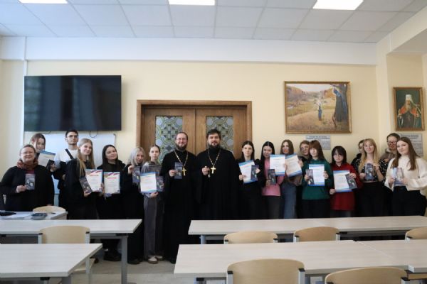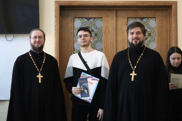 Священники поблагодарили призеров и участников конкурса, поздравили с праздниками Рождества Христова и Крещения Господня (Богоявления), рассказали студентам о духовном смысле этих праздников, а также раздали им просветительские буклеты «Рождество. Богоявление», изданные Синодальным миссионерским отделом.