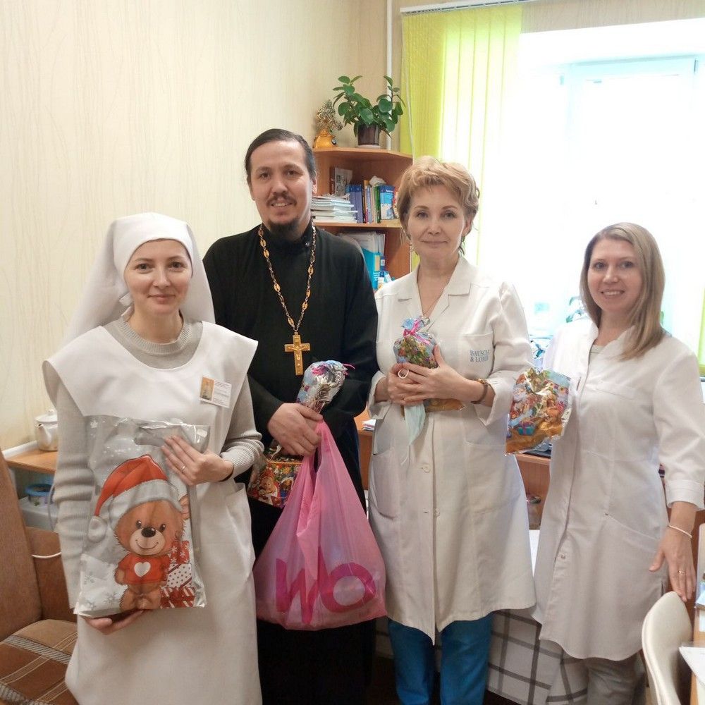 А после праздника Крещения Господня отец Павел и отец Сергий вновь пришли в Детскую городскую больницу, а также Детскую поликлинику №1. После чина великого освящения воды священники окропили кабинеты и палаты поликлиники и больницы и тепло поздравили всех с праздником, разъяснив его глубокий духовный смысл.