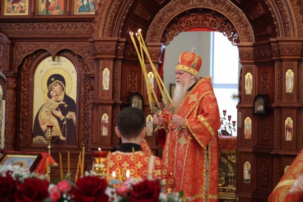 По заамвонной молитве было совершено славление перед иконой праздника. По окончании Литургии епископ Феофан совершил заупокойную литию. В завершение владыка обратился к прихожанам с архипастырским словом: