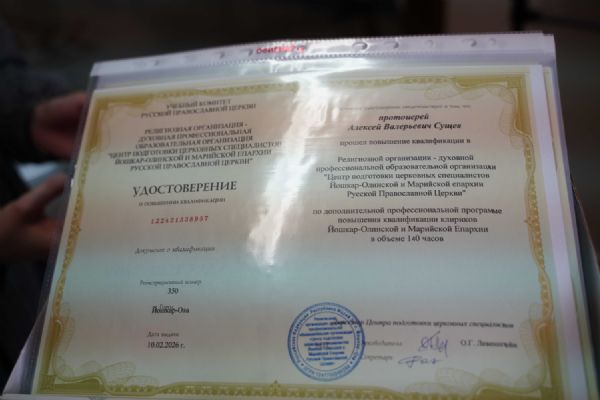 10 февраля завершились краткосрочные курсы повышения квалификации для клириков Йошкар-Олинской и Волжской епархий. Обучение проходило на базе епархиального Центра подготовки церковных специалистов.