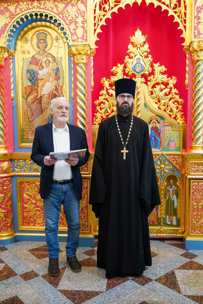 Далее в домовом храме Православного центра в честь преподобномученицы великой княгини Елисаветы был отслужен благодарственный молебен, который совершил заместитель руководителя отдела религиозного образования и катехизации Йошкар-Олинской епархии, ответственный за повышение квалификации священнослужителей иерей Иоанн Кристев.