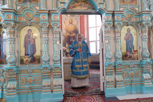 Архипастырю сослужили настоятель храма, благочинный Северного церковного округа протоиерей Владимир Власов, настоятель Покровского храма с. Марисола протоиерей Сергий Сильдушкин, настоятель храма Воздвижения Креста Господня с. Кукнур иеромонах Тихон (Белавин), клирики Никольского кафедрального собора г. Волжска иеромонах Александр (Чеборов) и диакон Иоанн Захаров. Песнопения исполнял народный хор под управлением Евгения Чигарова.