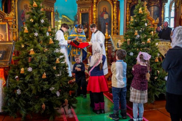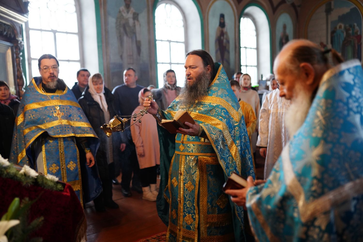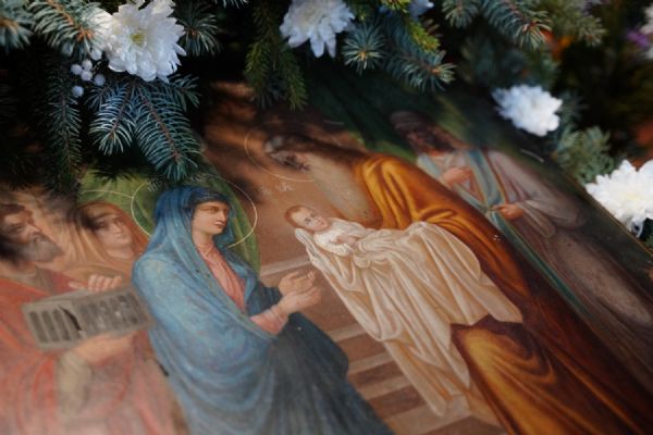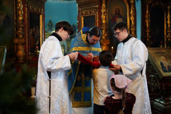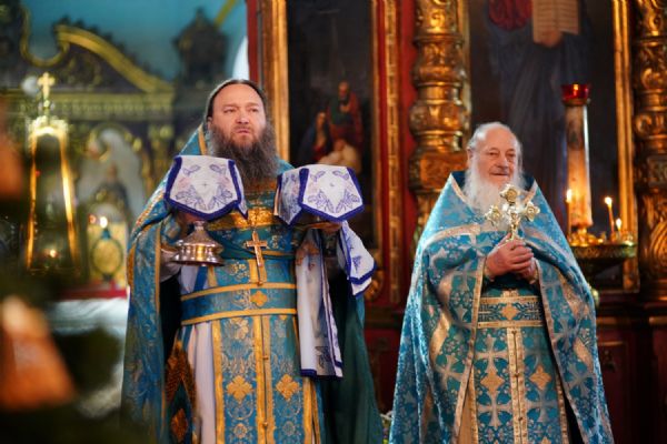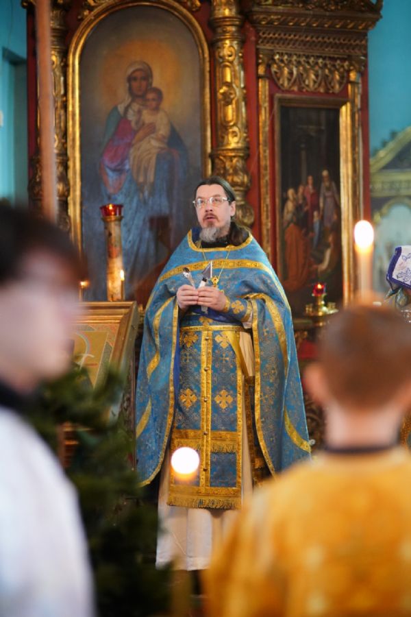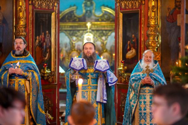 После Литургии духовенством было совершено славление перед иконой праздника.