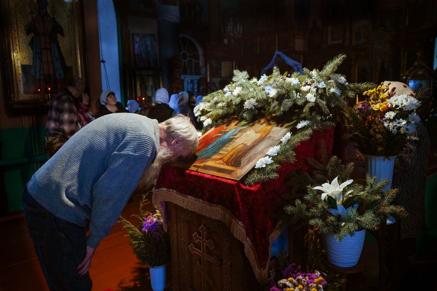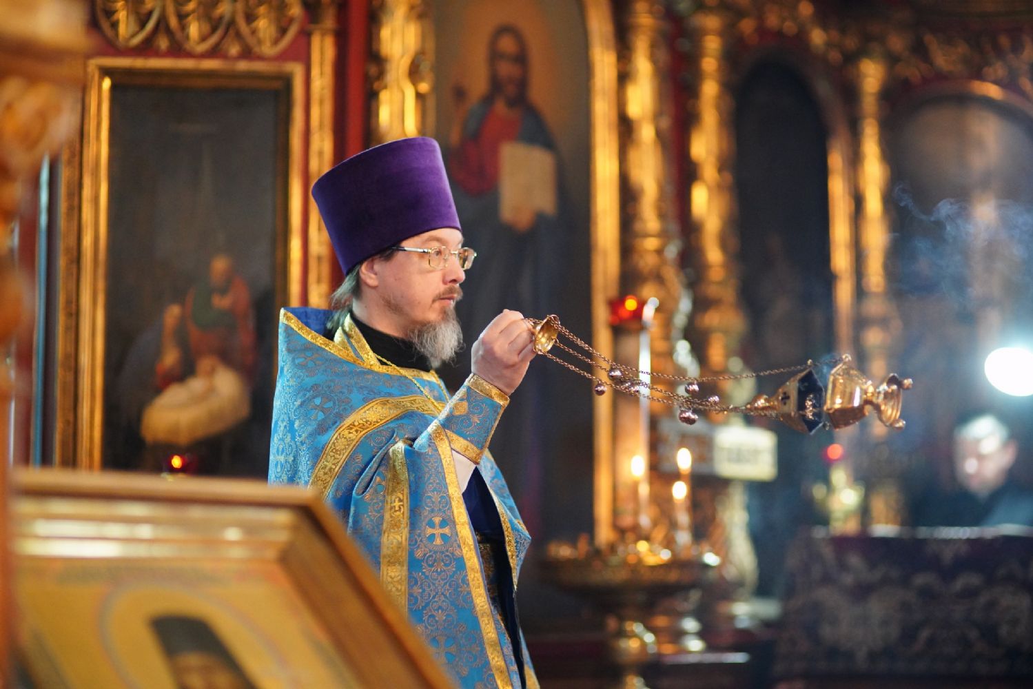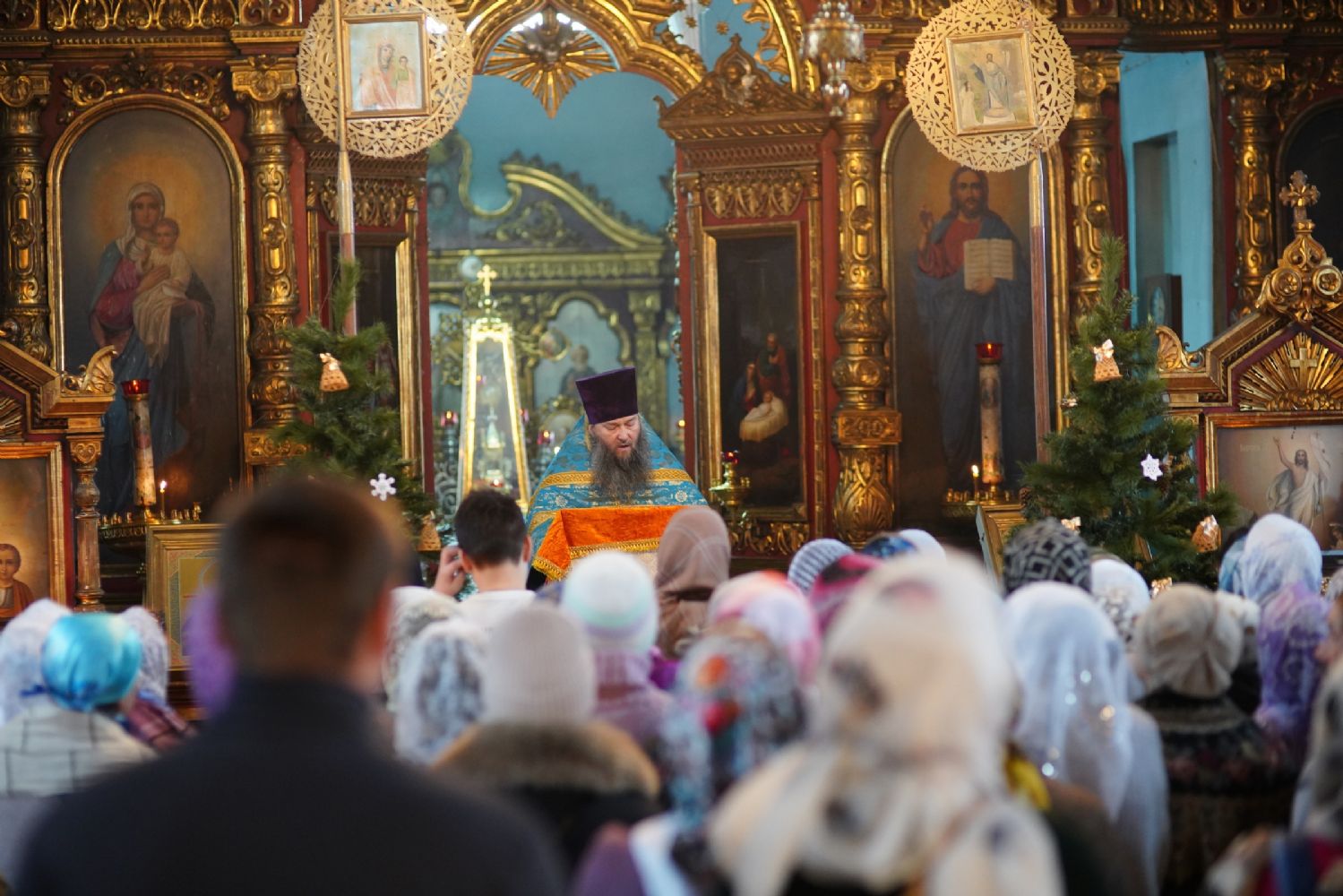 После Литургии духовенством было совершено славление перед иконой праздника.