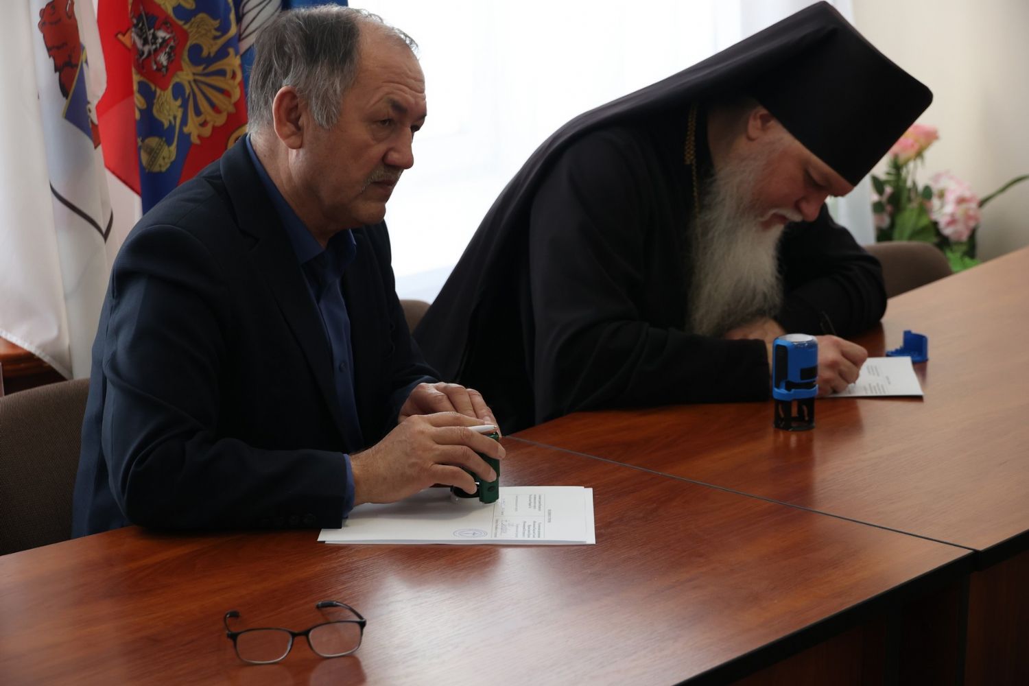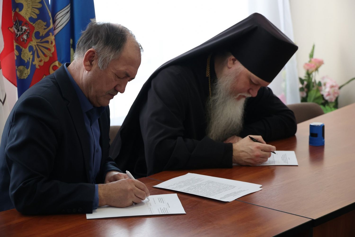 Подписи под документом поставили глава Волжской епархии епископ Волжский и Сернурский Феофан и глава Волжского муниципального округа Валериян Аркадьевич Семенов. На подписании присутствовали представители Волжской епархии и сотрудники администрации.