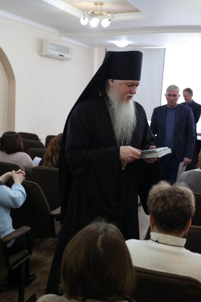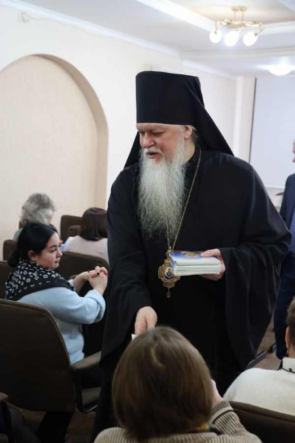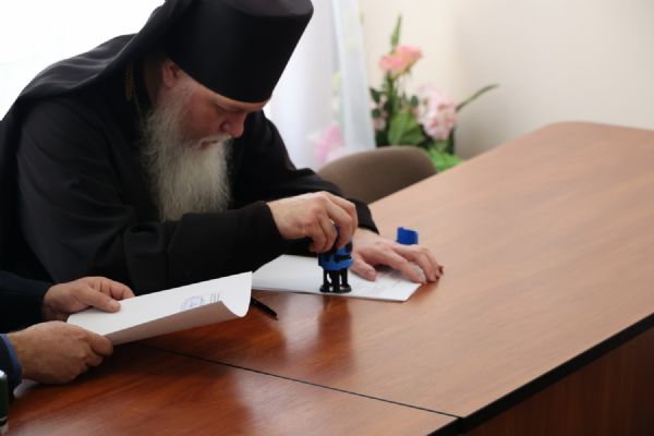 Перед подписанием документа о сотрудничестве епископ Феофан обратился к собравшимся в зале с архипастырским словом. Архипастырь поздравил присутствующих с наступившим праздником Сретения Господня и поведал о значении и духовном смысле Великого поста и подготовке к нему. Владыка также обратил внимание слушателей на то, как нужно провести последнюю неделю перед Великим постом – Сырную (Масленичную) седмицу, которая заканчивается воспоминанием изгнания Адама из рая, Прощеным воскресением, что должно особенным образом располагать верующего человека к покаянию и воздержанию от всякого зла.