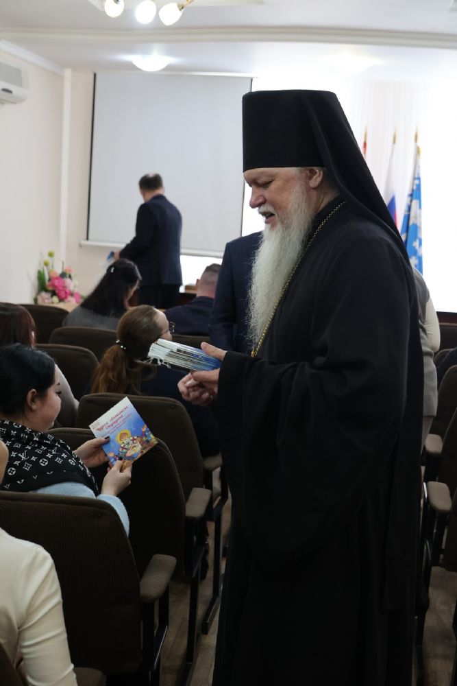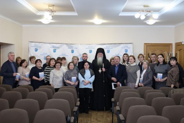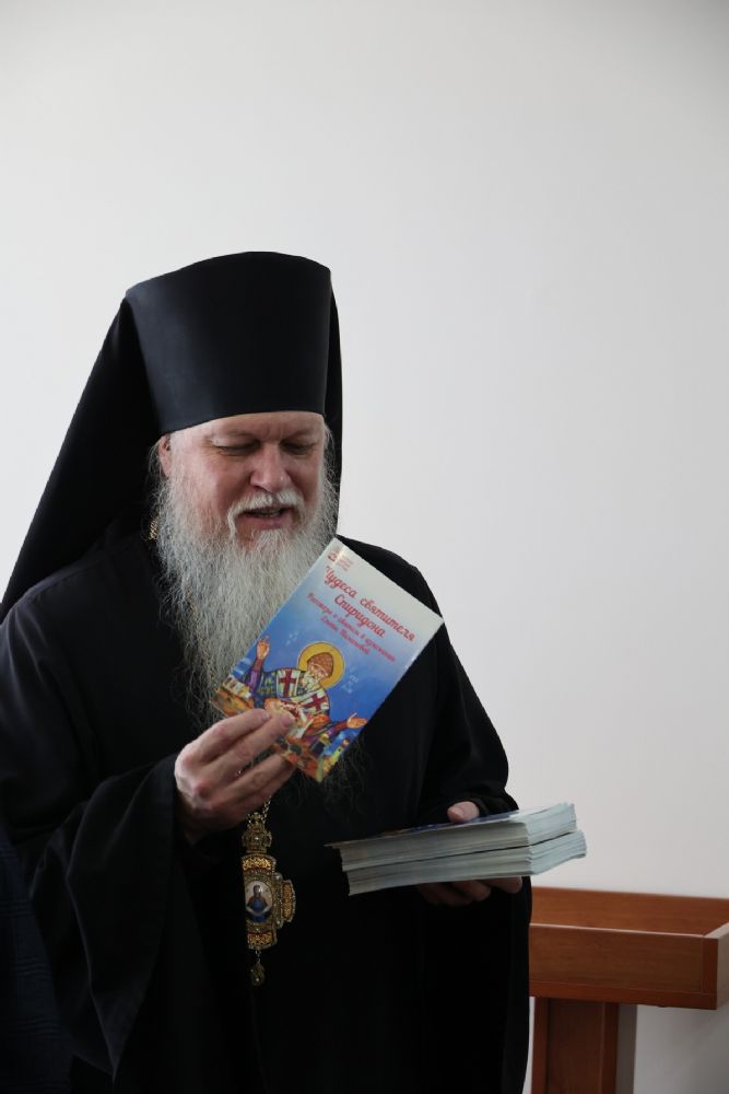 В завершение встречи епископ Феофан подарил сотрудникам администрации книги о святителе Спиридоне Тримифунтском.