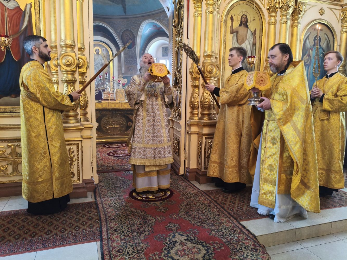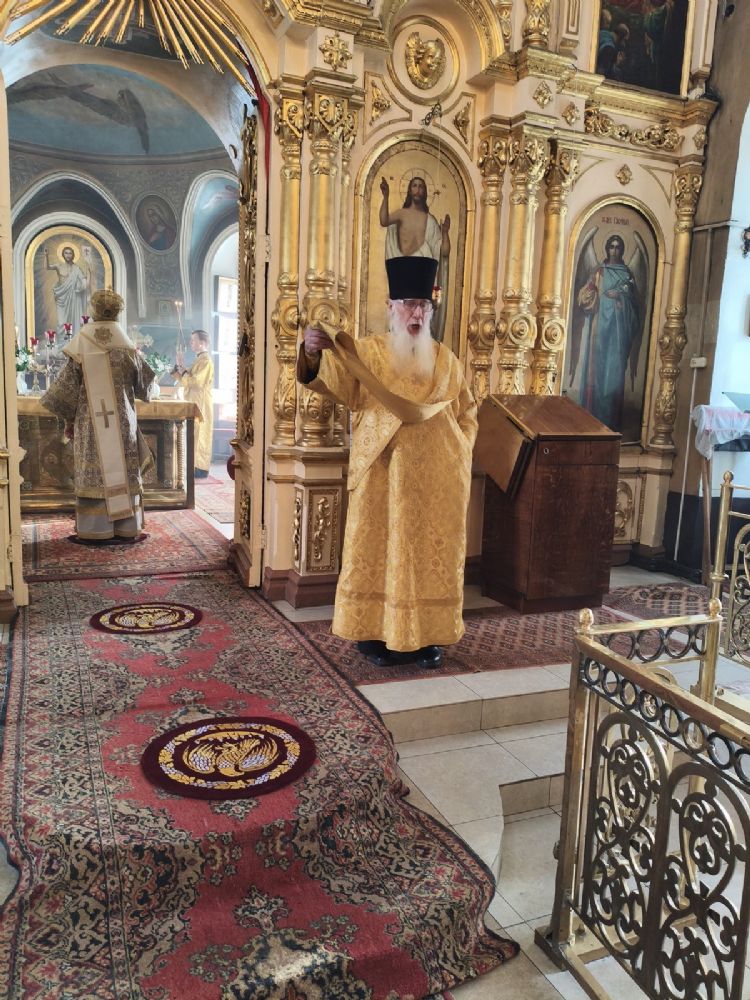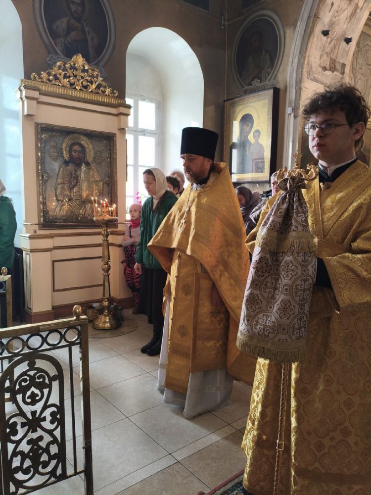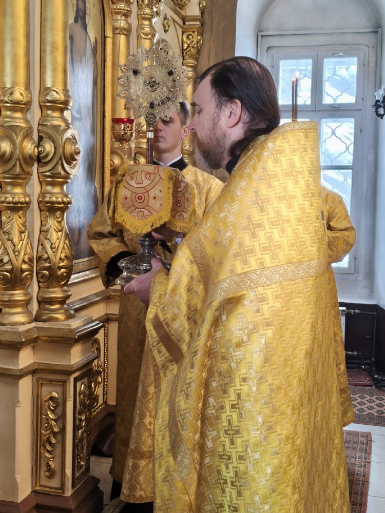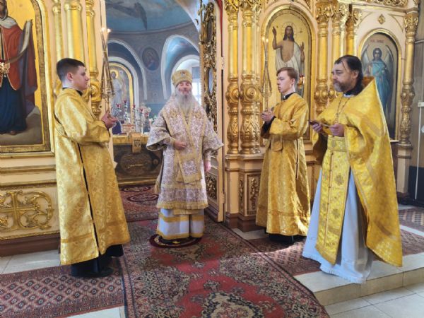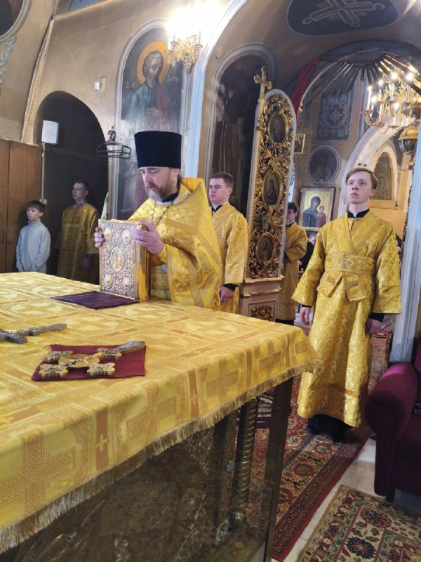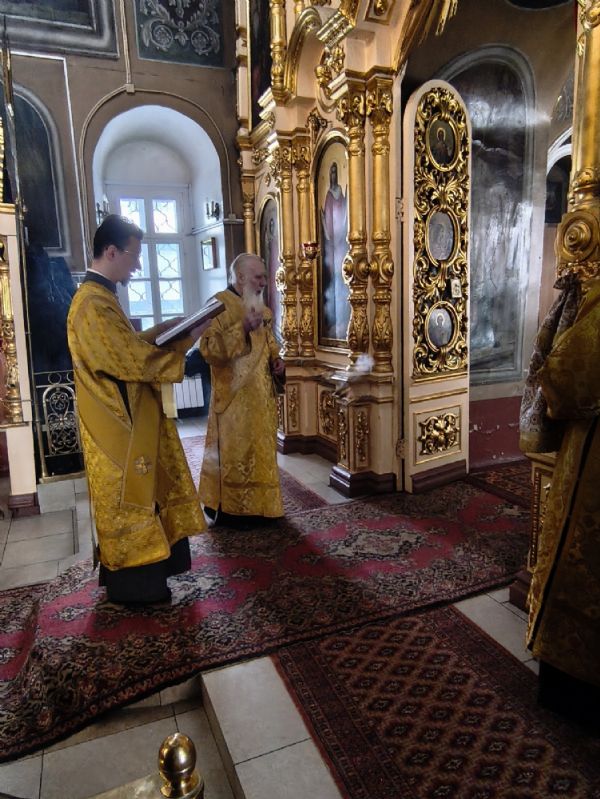 Его Высокопреосвященству сослужили ключарь храма протоиерей Михаил Ильин, клирики храма протодиакон Михаил Козловский и диакон Димитрий Смирнов. Песнопения исполнял хор храма.