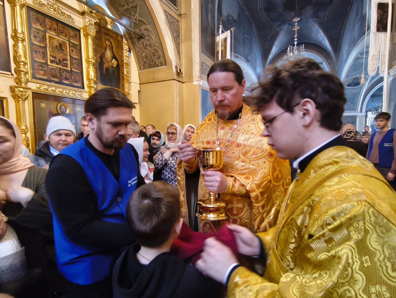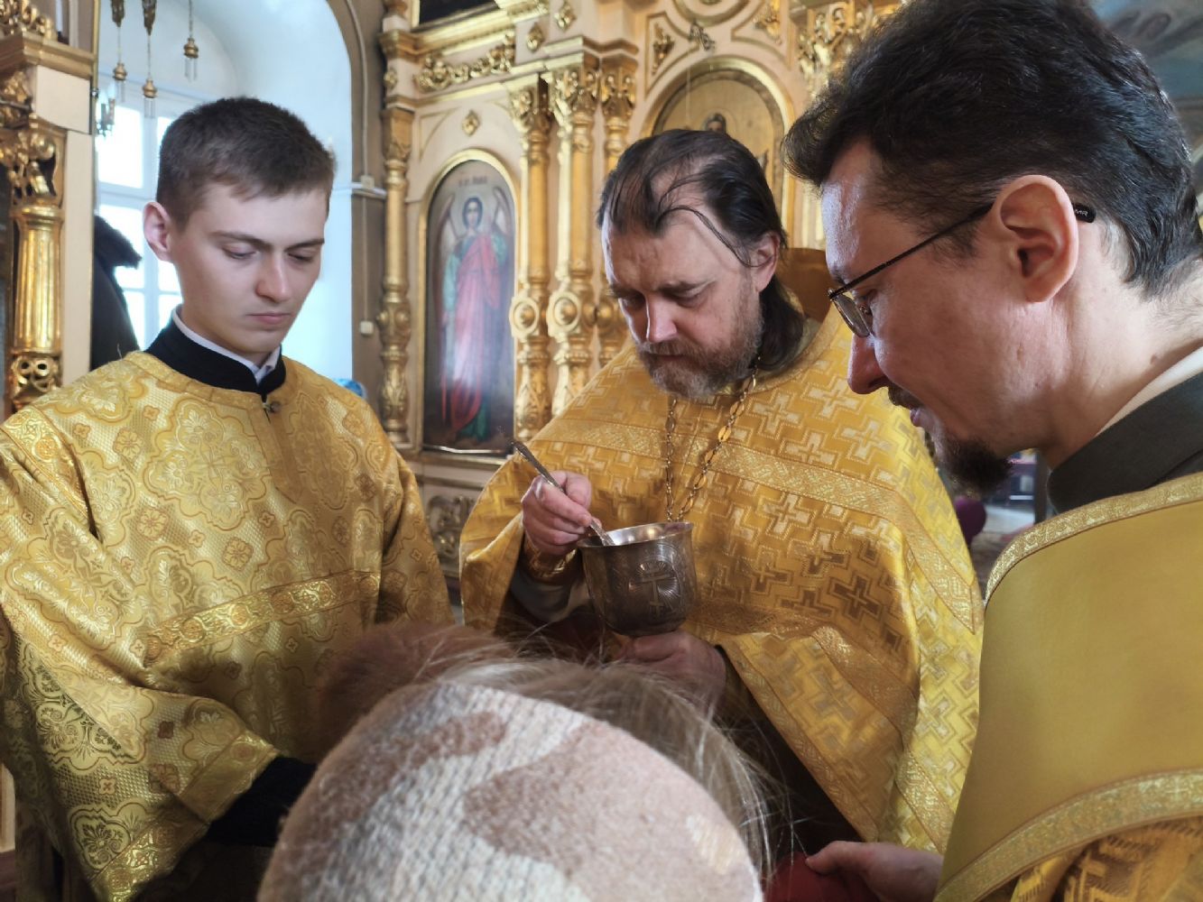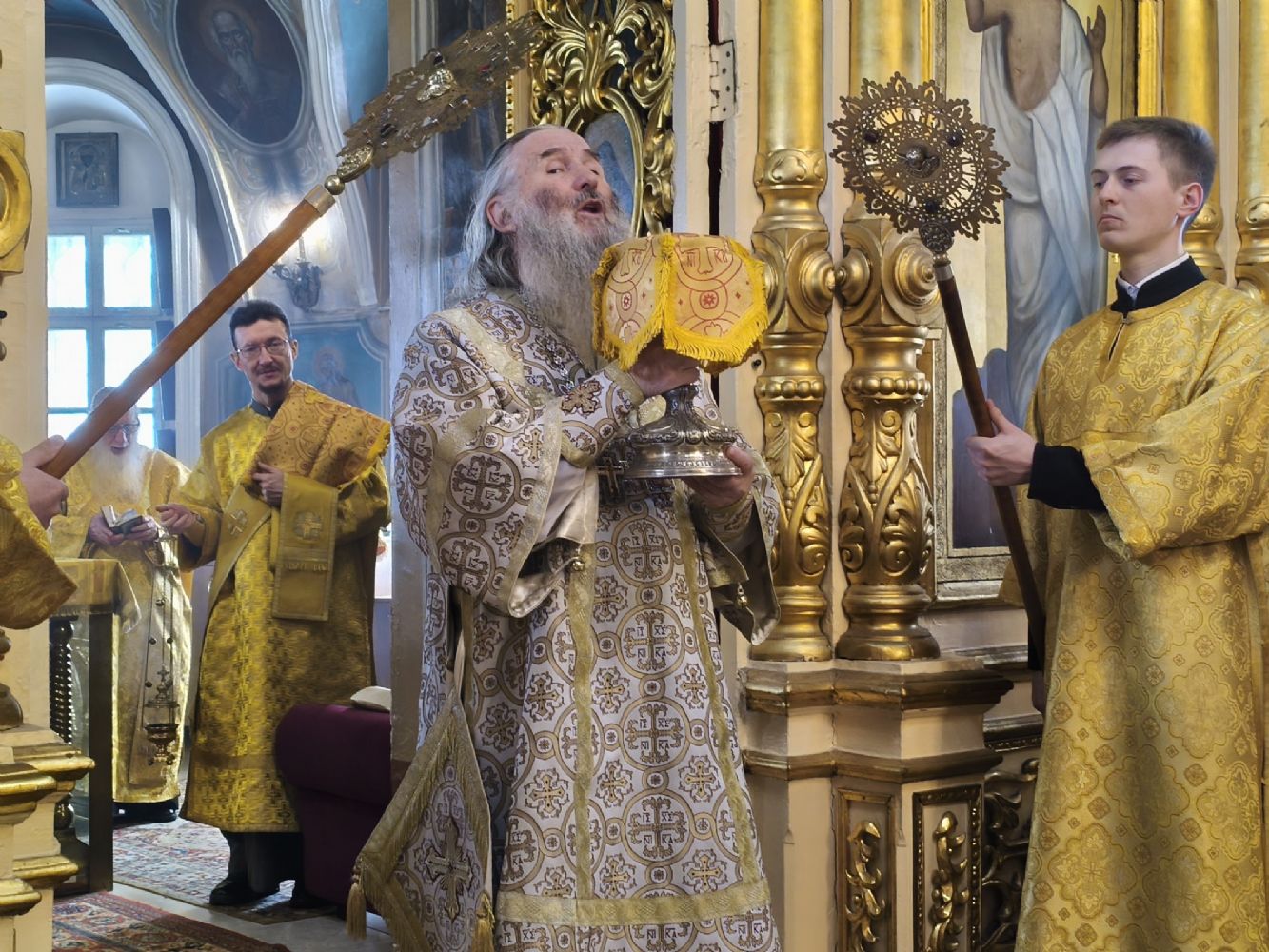 Его Высокопреосвященству сослужили ключарь храма протоиерей Михаил Ильин, клирики храма протодиакон Михаил Козловский и диакон Димитрий Смирнов. Песнопения исполнял хор храма.