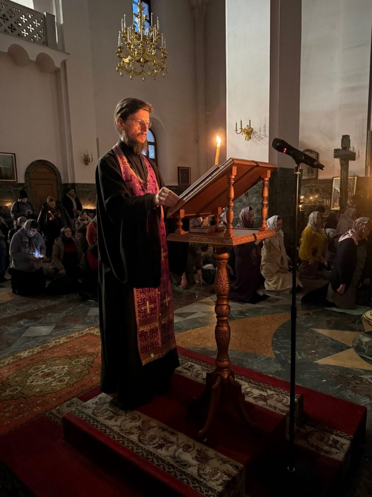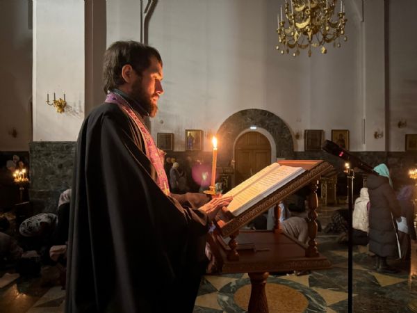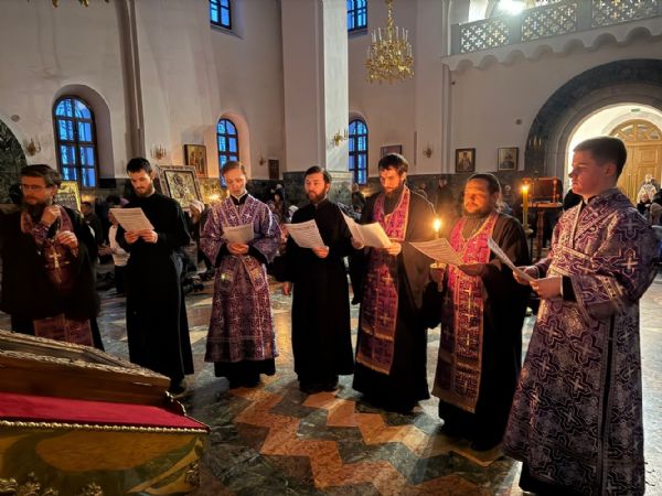 После молитв обычного начала и 69 псалма митрополит Иоанн в центре храма начал чтение Великого канона. Чтение продолжили клирики собора иереи Никифор Захаров, Евгений Самойлов, Александр Староверов и Иоанн Милютин.