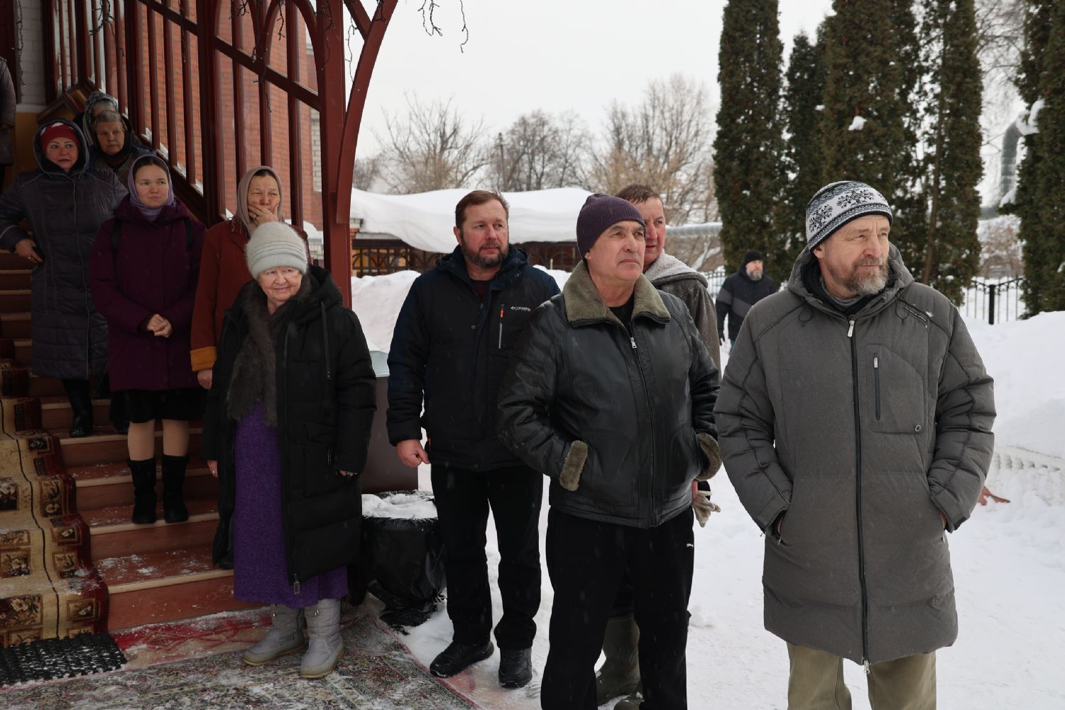 Его Преосвященству сослужили настоятель храма протоиерей Александр Михайлов, клирик Никольского кафедрального собора г. Волжска иерей Николай Аникин, а также иерей Александр Тимофеев и диакон Иоанн Захаров. Песнопения исполнял хор под управлением Ирины Канашиной.
