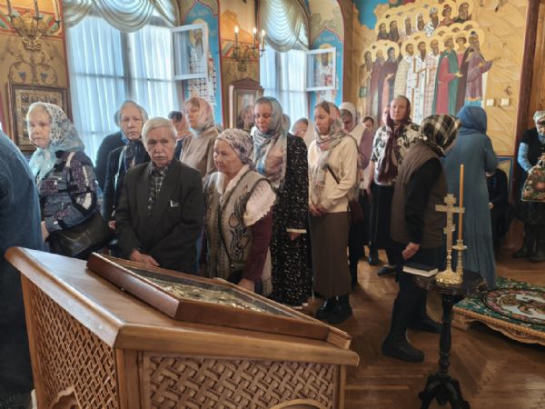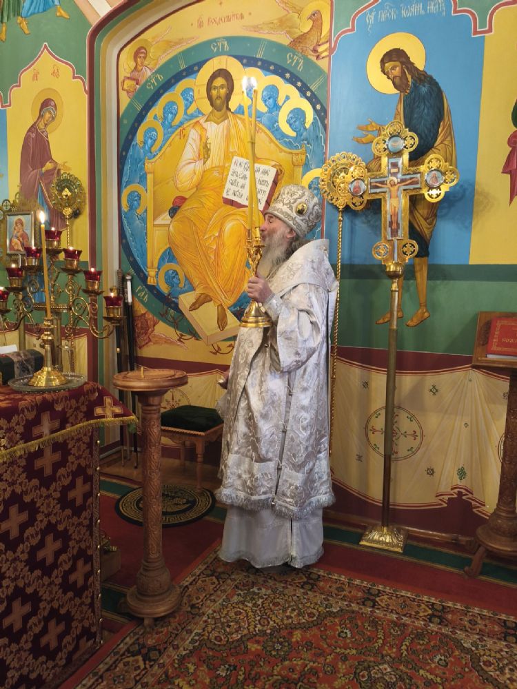 На сугубой ектении были возглашены особые прошения о здравии Святейшего Патриарха Кирилла и об избавлении Святой Руси от врагов видимых и невидимых. Митрополит Иоанн также вознёс у Престола Божия благодарственную молитву о Предстоятеле Русской Православной Церкви.