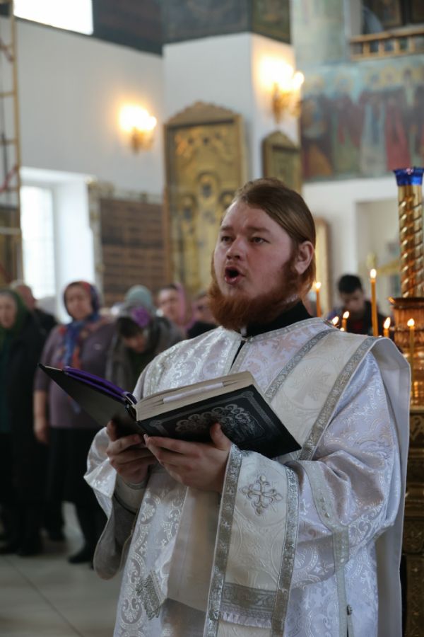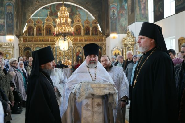 Его Преосвященству сослужили клирики кафедрального собора протоиерей Виталий Михеев, иеромонах Александр (Чеборов), иеромонах Питирим (Мосякин), диакон Иоанн Захаров и диакон Александр Викторов. Песнопения исполнял архиерейский хор под управлением регента Любови Михеевой.