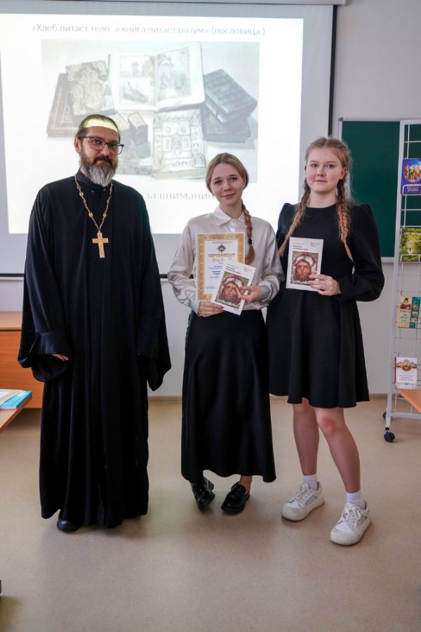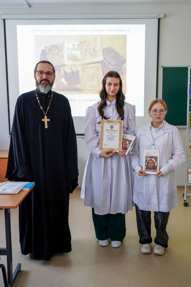 В завершение мероприятия отец Димитрий вручил студентам и их научным руководителям сертификаты и благодарственные письма Йошкар-Олинской епархии и душеполезные книги в подарок.