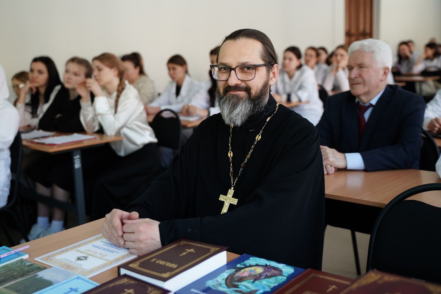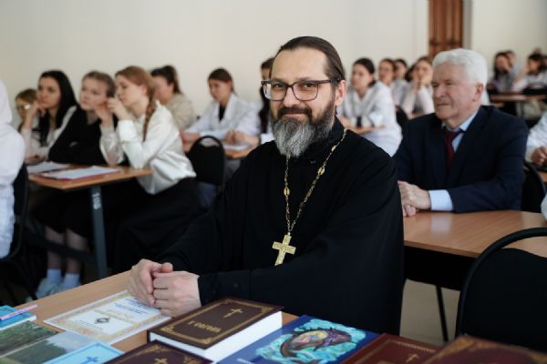 Собравшихся приветствовали директор медколледжа Леонид Викторович Рыжков и секретарь Йошкар-Олинского епархиального управления иерей Димитрий Дьяков, окормляющий данное учебное заведение.