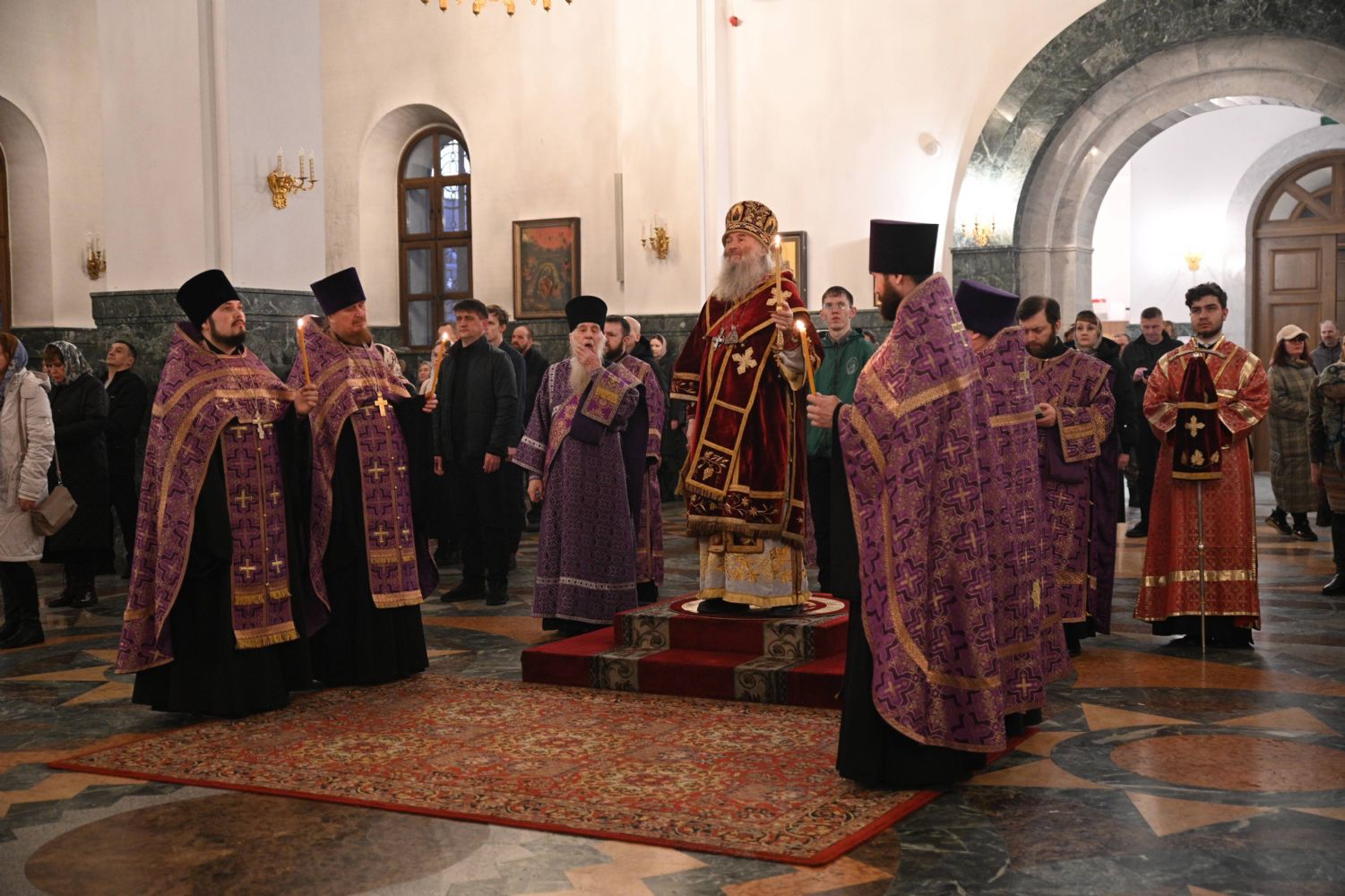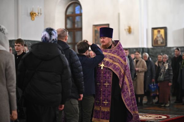 Архипастырю сослужили ключарь собора протоиерей Сергий Поглазов, клирики собора иереи Никифор Захаров, Александр Староверов, Иоанн Милютин, диаконы Андрей Дружинин и Артемий Бобоч, а также протодиакон Михаил Козловский. Песнопения исполняли старший и младший составы детско-юношеского хора «Благовест» под управлением регентов Татьяны Черновой и Надежды Поздеевой.