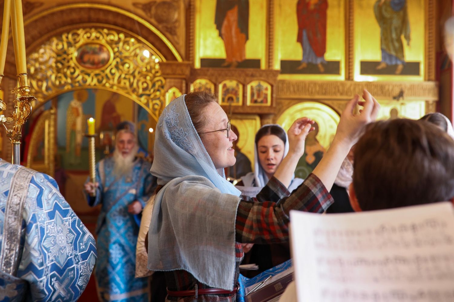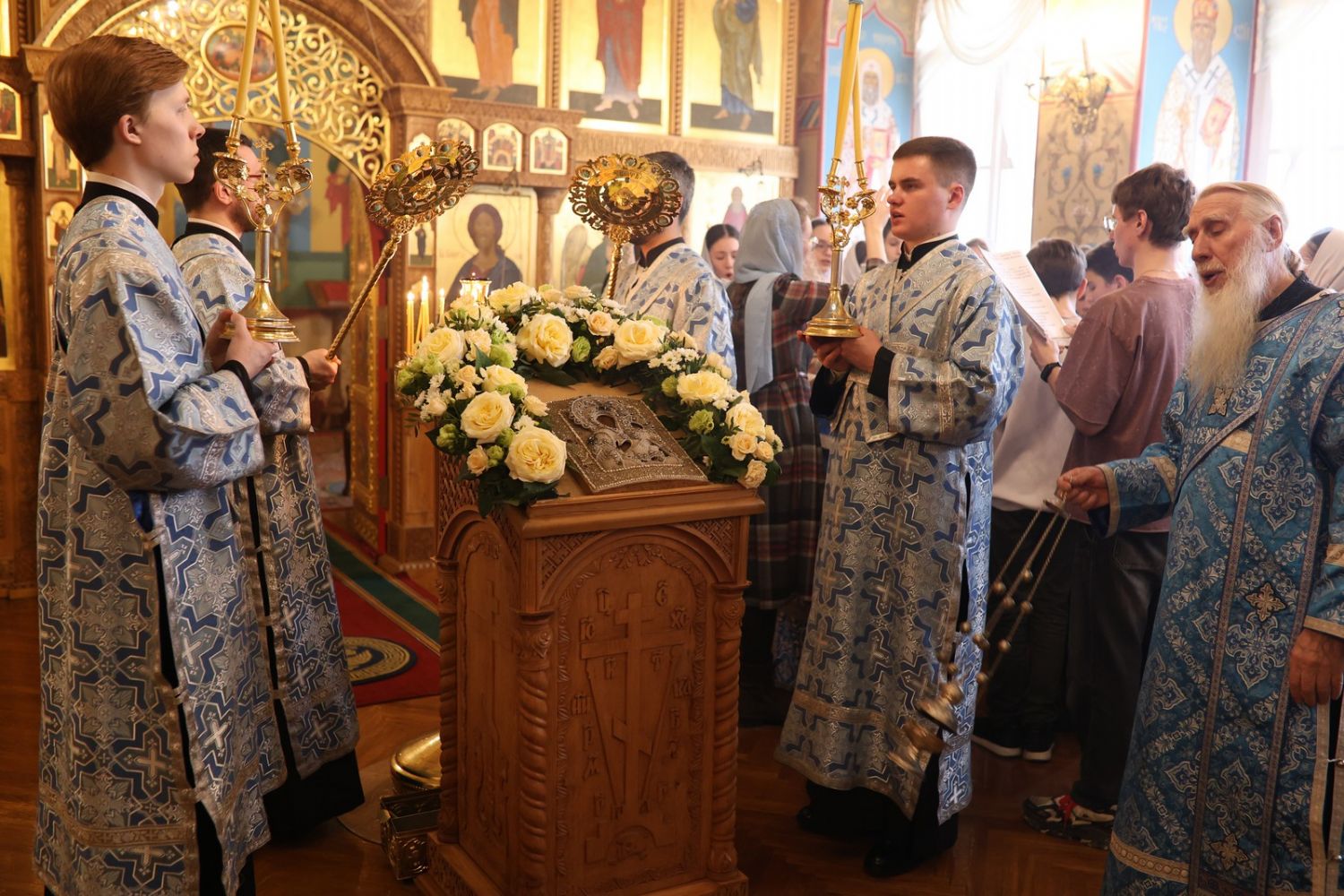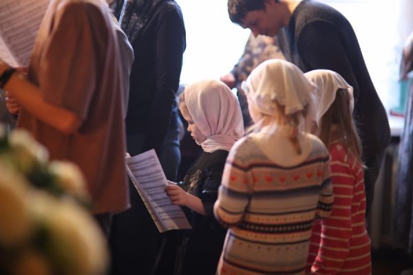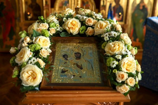 Херетизмы Акафиста (воззвания «Радуйся…» – от греческого «Хэре…») вместе со священством и хором пели все прихожане.