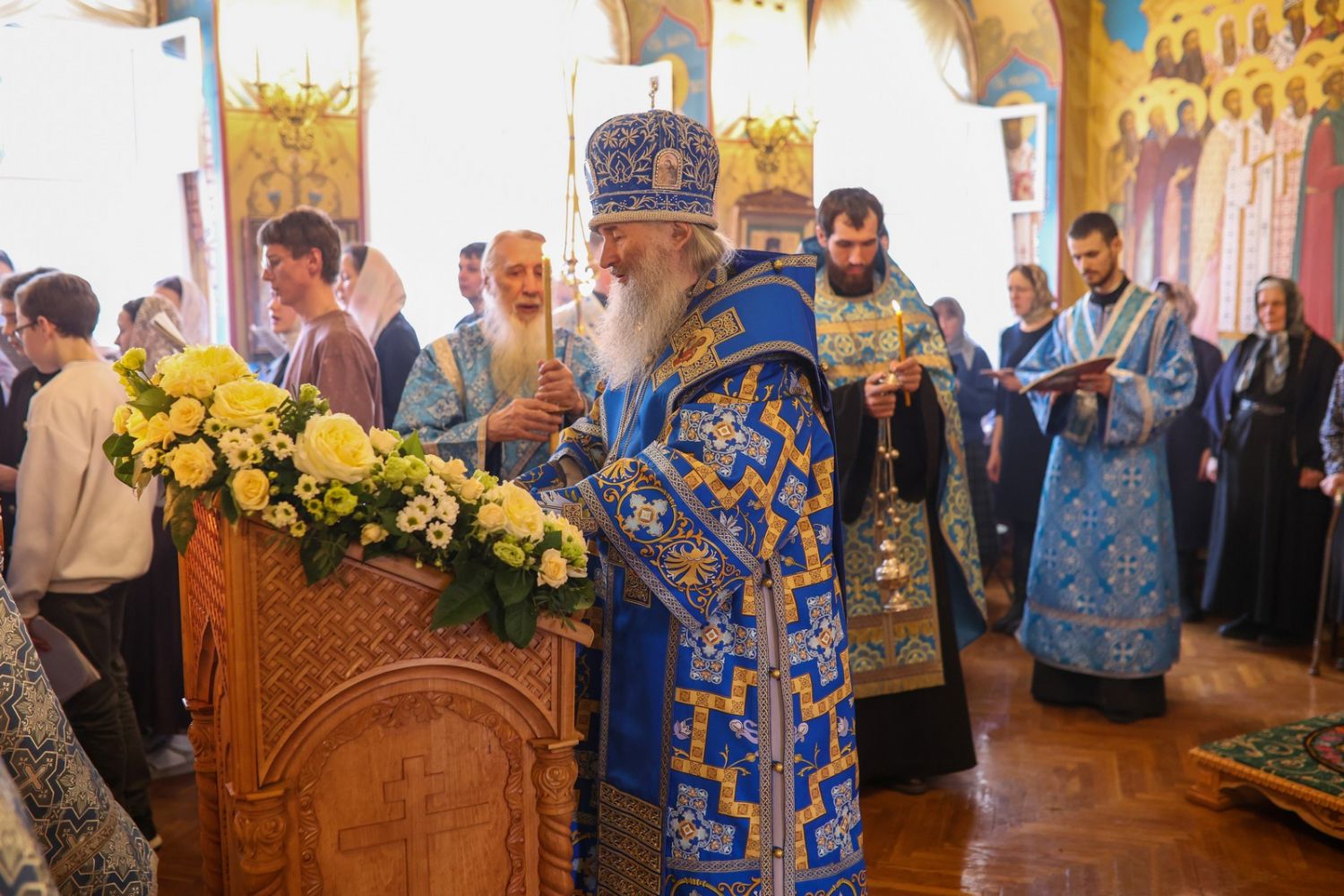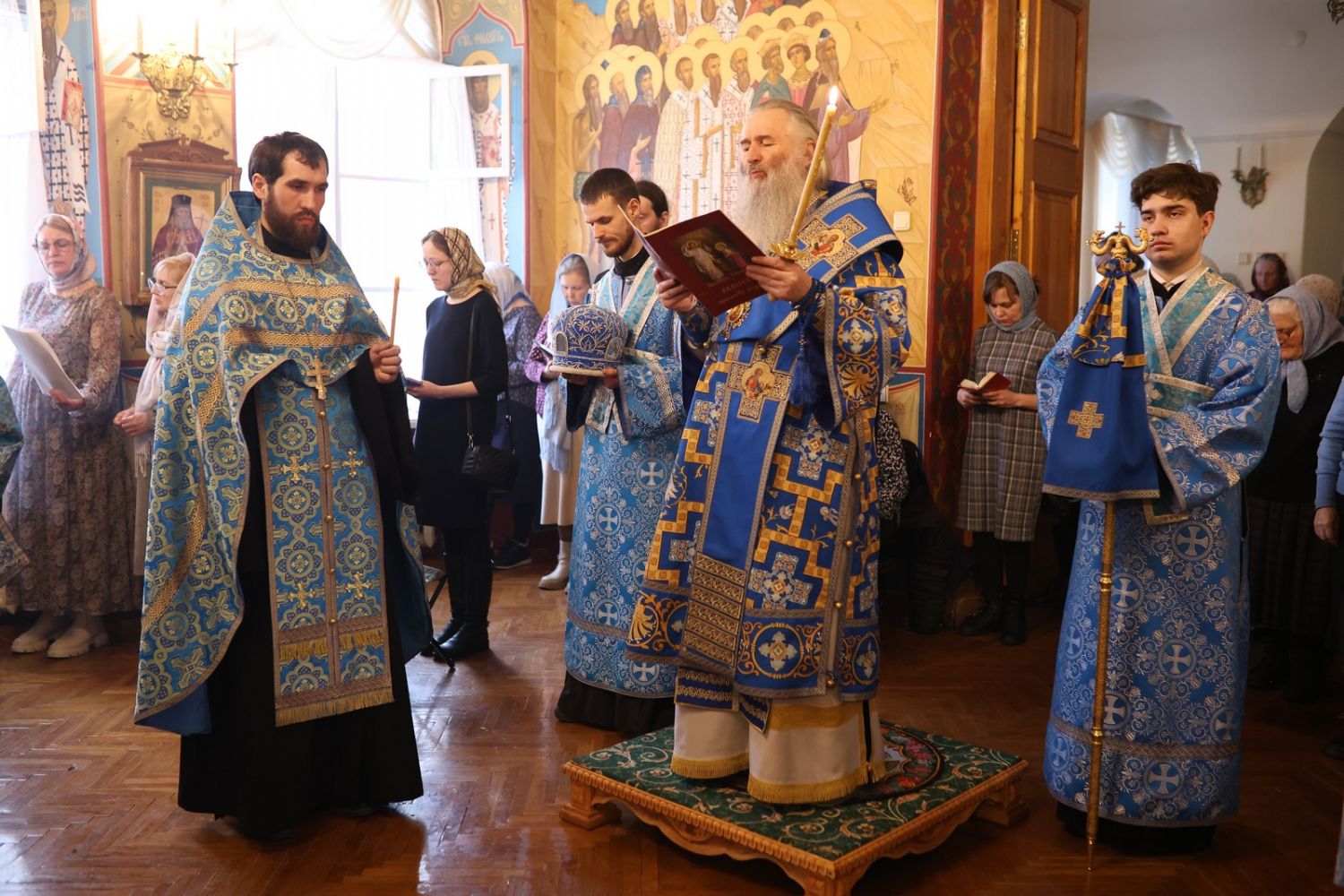 Его Высокопреосвященству сослужили клирик Благовещенского кафедрального собора г. Йошкар-Олы иерей Иоанн Милютин и протодиакон Михаил Козловский. Песнопения исполнял архиерейский хор «Благовест» под управлением регента Татьяны Черновой.