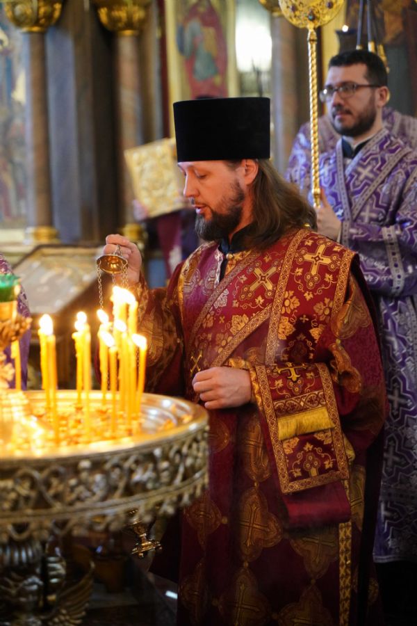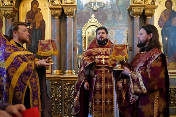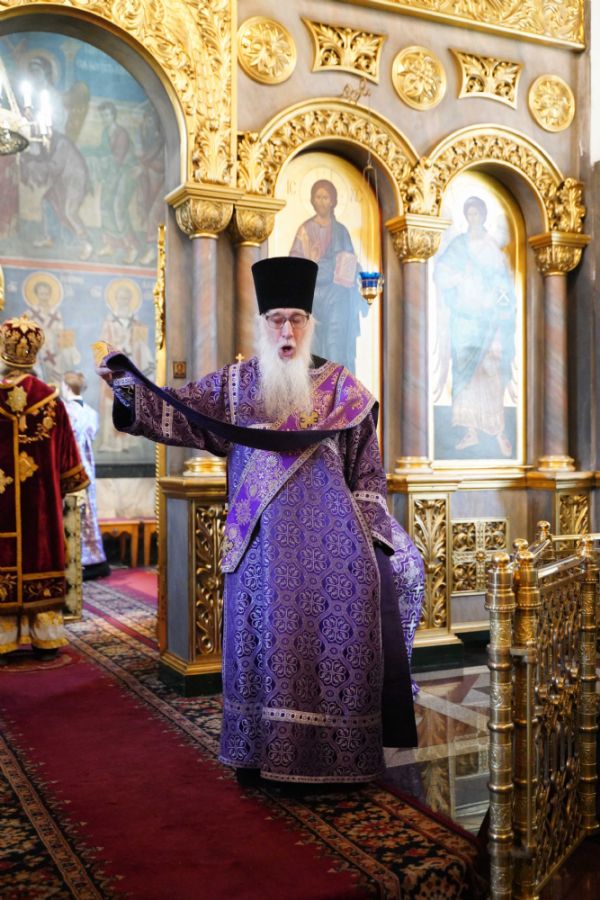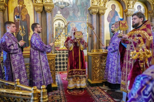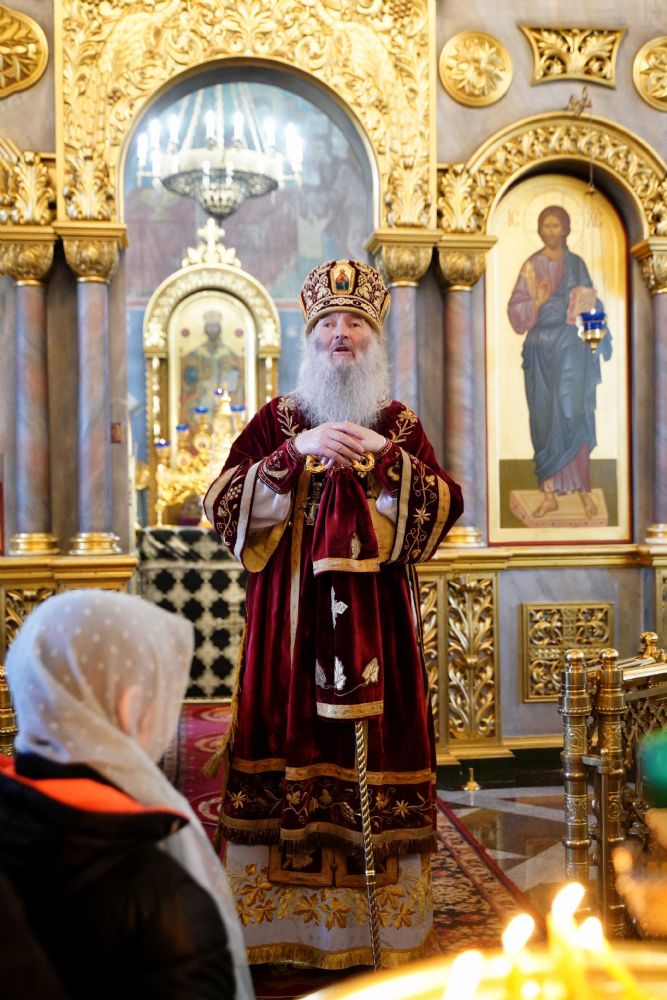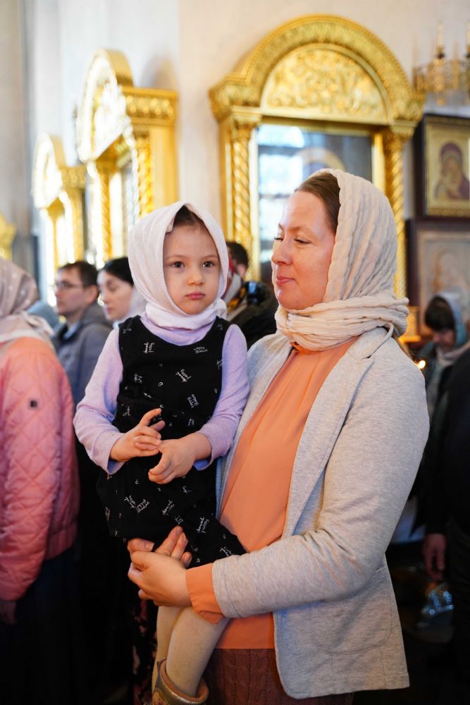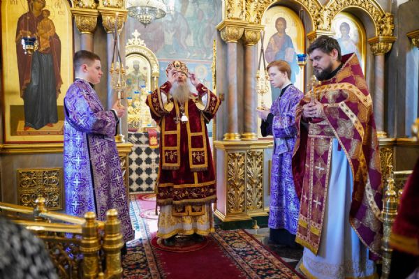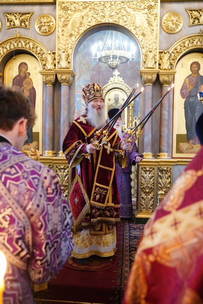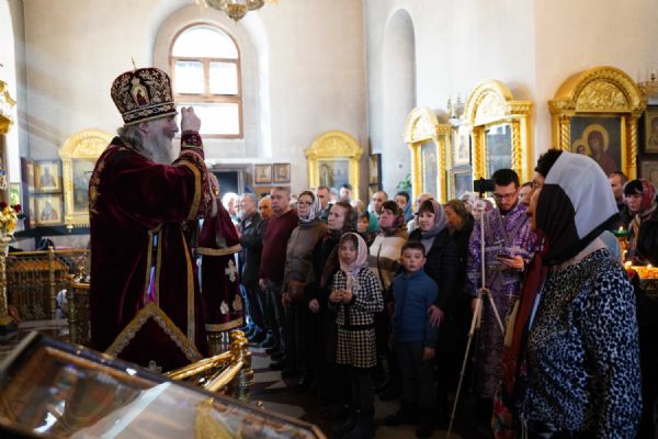 Его Высокопреосвященству сослужили клирики храма иерей Никита Иванов и диакон Александр Мельников, а также протодиакон Михаил Козловский. Песнопения исполнял хор храма под управлением Ольги Акилбаевой.
