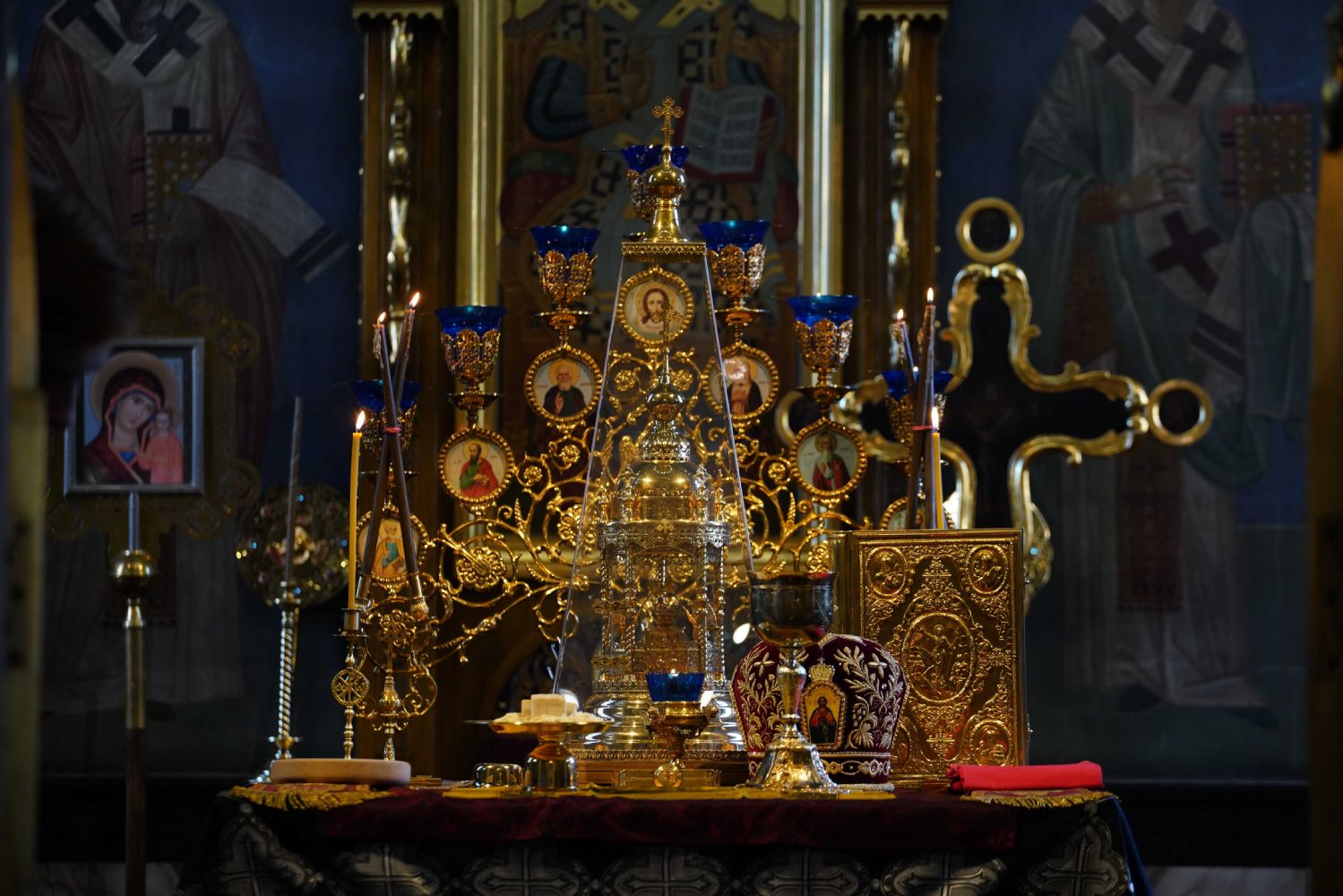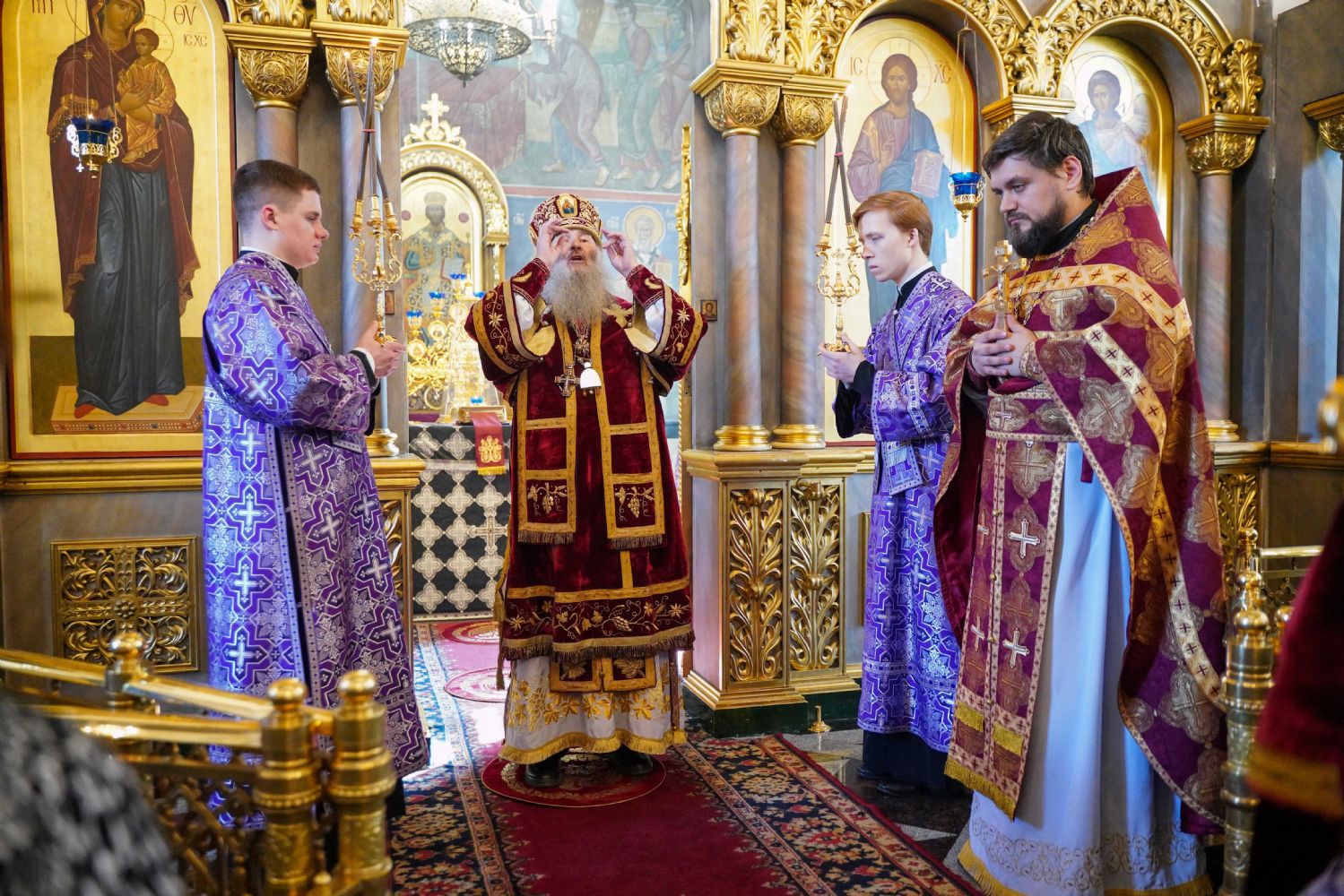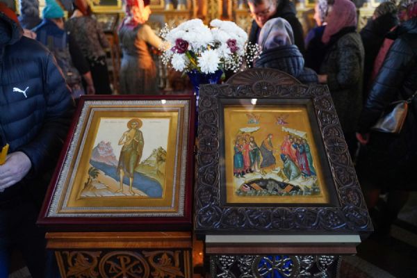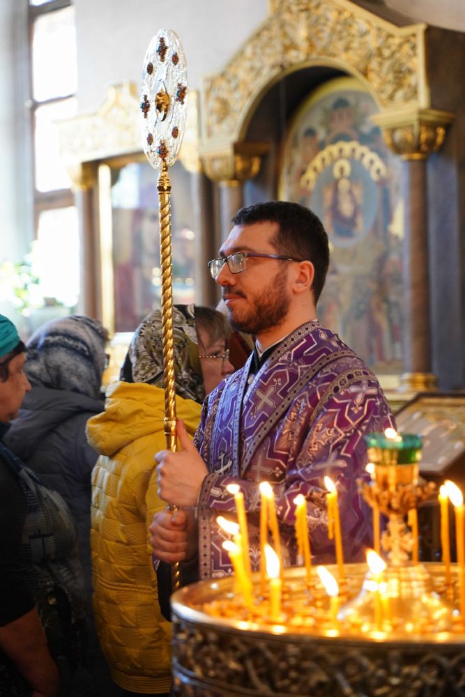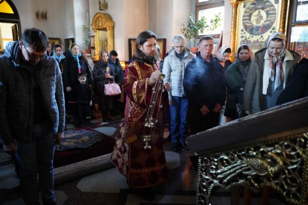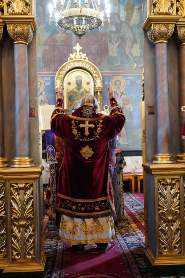 Его Высокопреосвященству сослужили клирики храма иерей Никита Иванов и диакон Александр Мельников, а также протодиакон Михаил Козловский. Песнопения исполнял хор храма под управлением Ольги Акилбаевой.