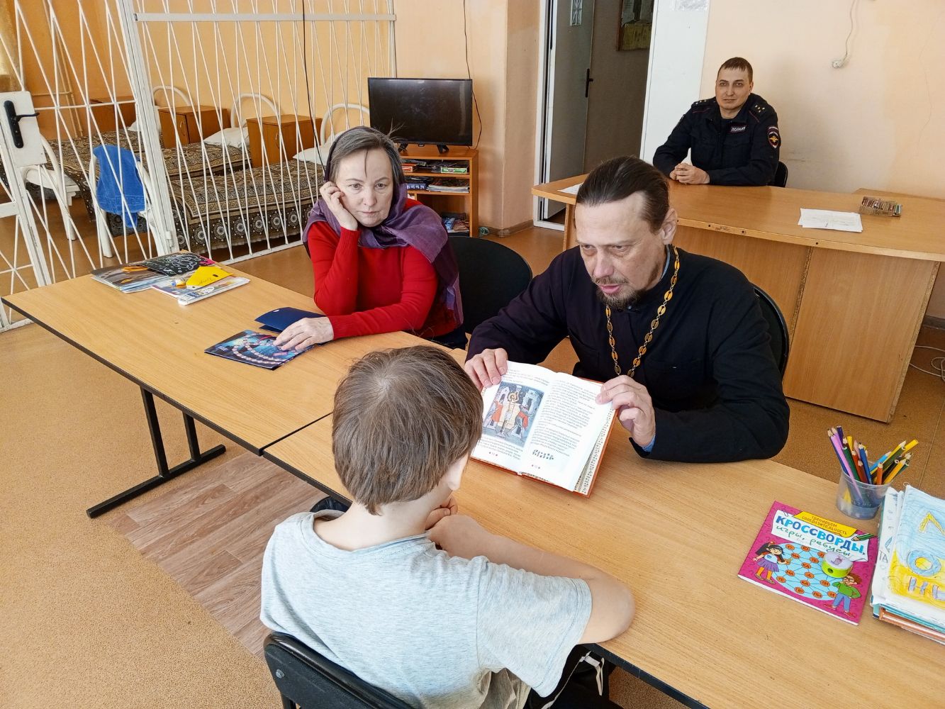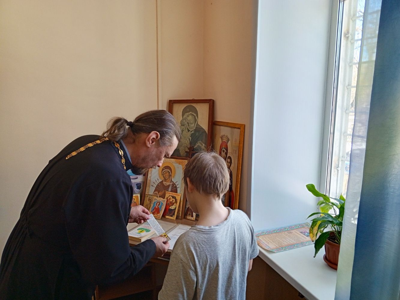 Гости посетили молельную комнату, поиграли с детьми в спортзале, а батюшка удивил воспитанника своей физической подготовкой, показав мастер-класс по отжиманию и игре в настольный теннис.