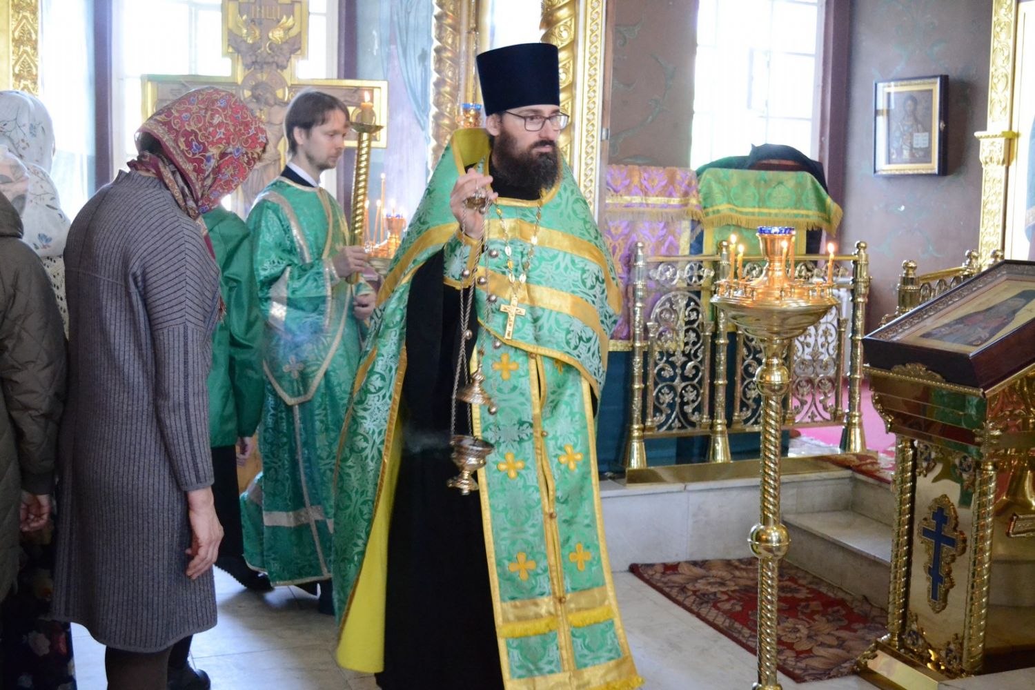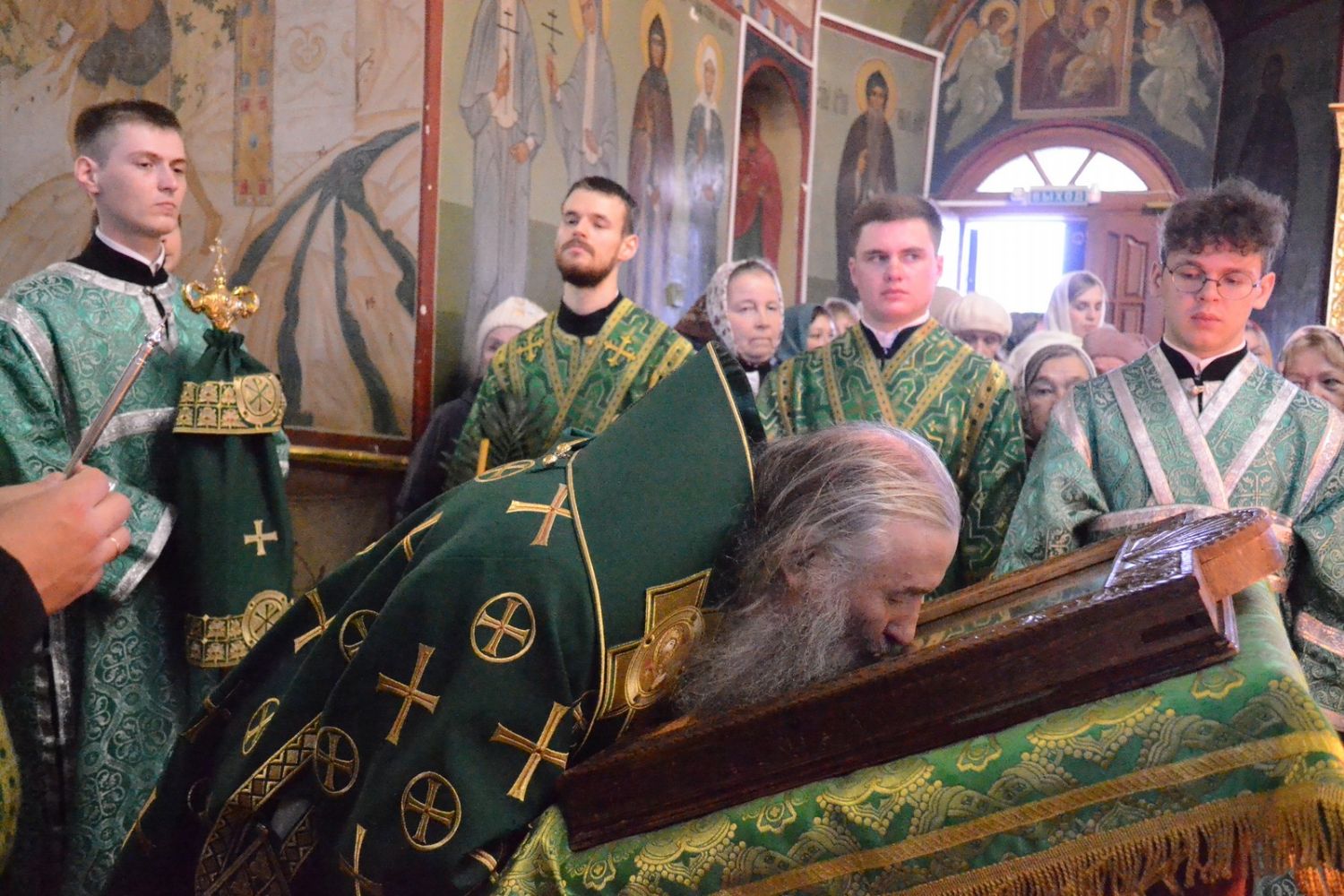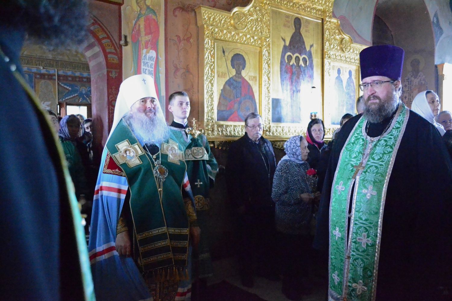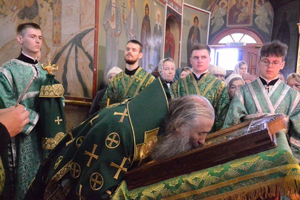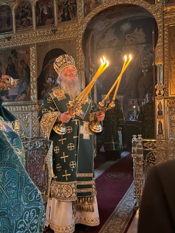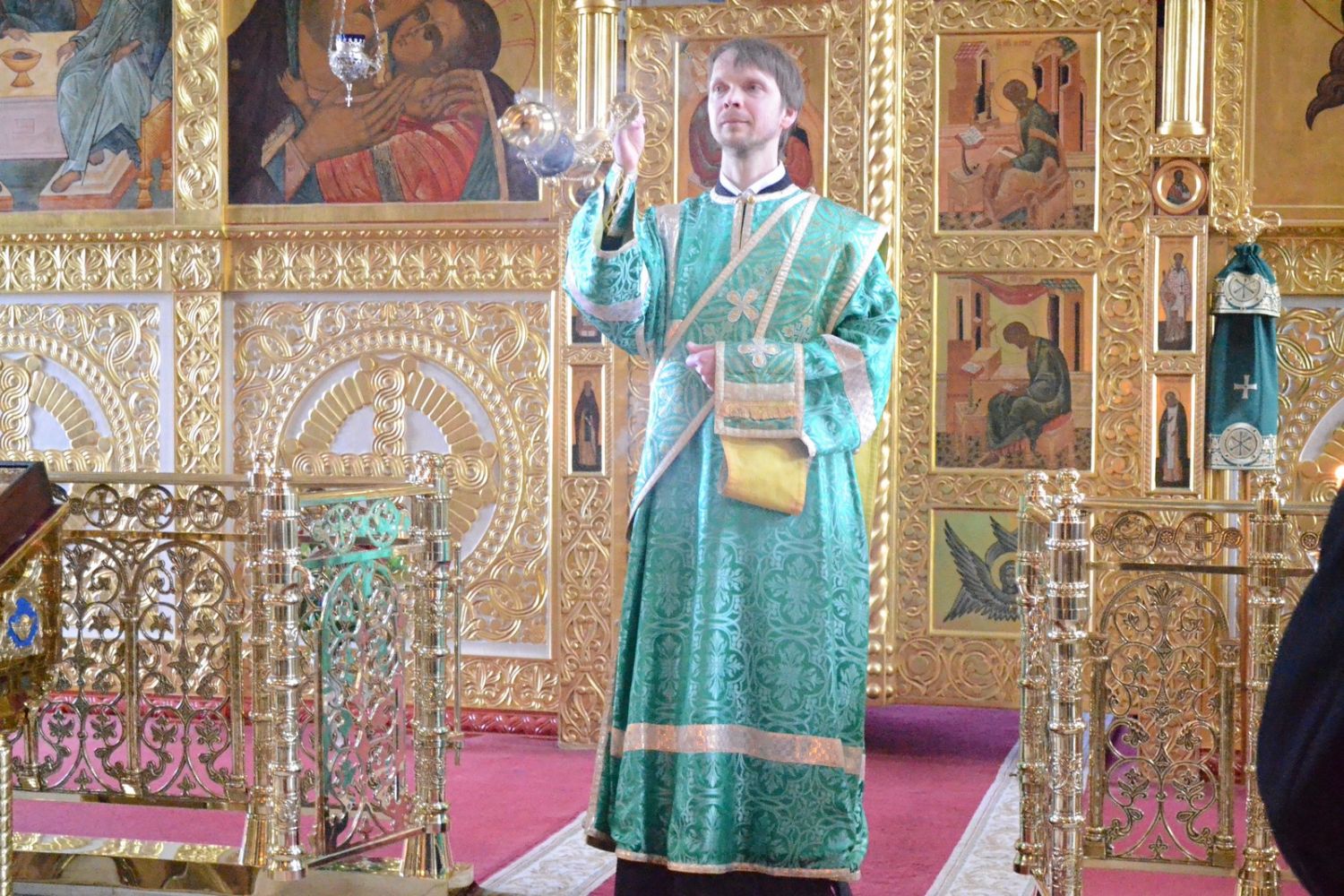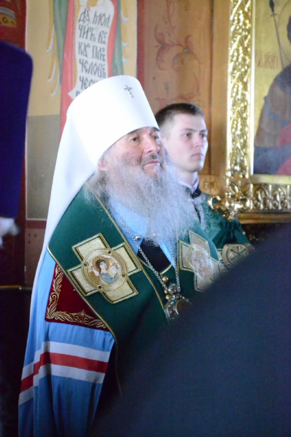 Владыке сослужили настоятель собора протоиерей Евгений Кутырев, клирики собора иерей Владимир Глебов, иерей Иоанн Кристев и диакон Владимир Лихачев, а также протодиакон Михаил Козловский. Песнопения исполнял хор собора под управлением регента Ангелины Бабиной.