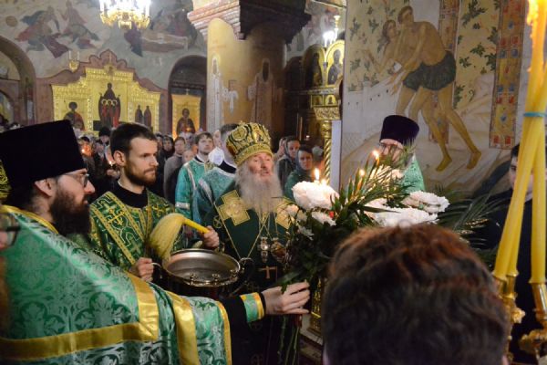Митрополит Иоанн возглавил всенощное бдение накануне Вербного воскресенья 468