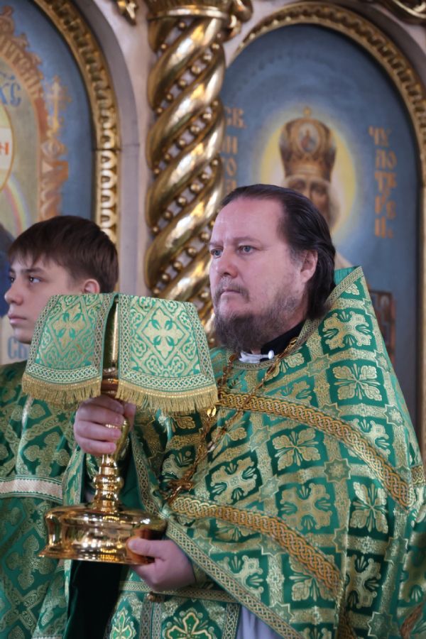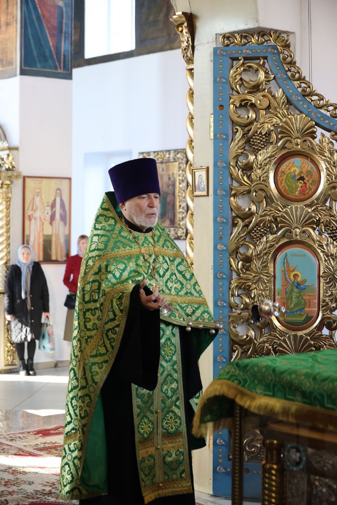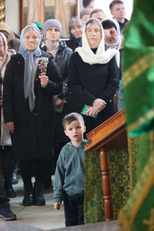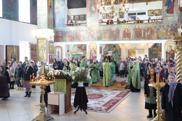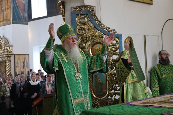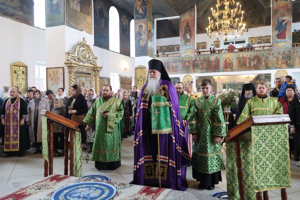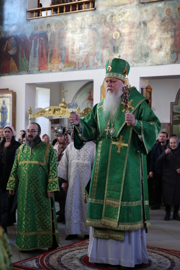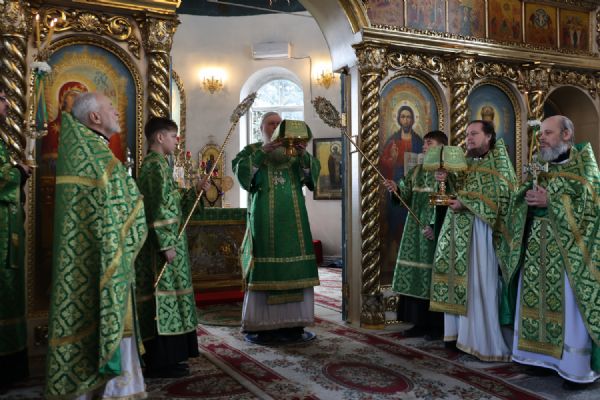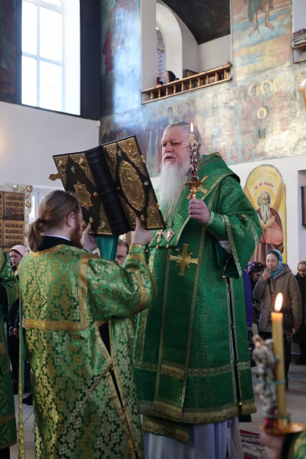 За Литургией Его Преосвященству сослужили клирики кафедрального собора иерей Николай Аникин, иерей Иоанн Лапшинский, иеромонах Питирим (Мосякин), диакон Иоанн Захаров и диакон Александр Викторов. Песнопения исполнял архиерейский хор под управлением Любови Михеевой.