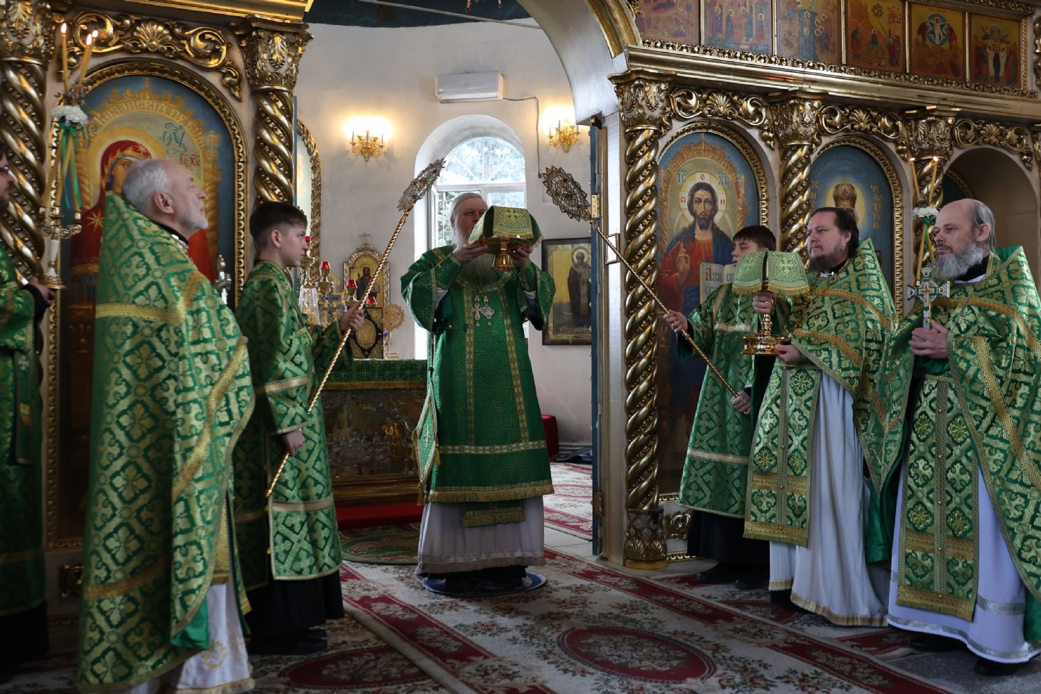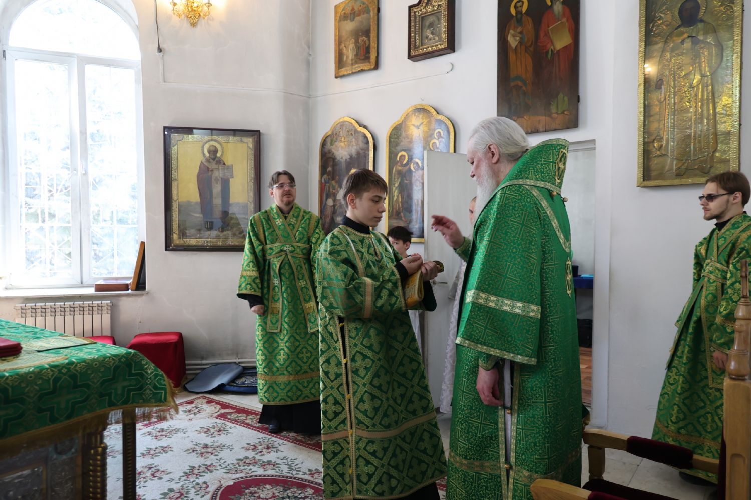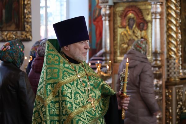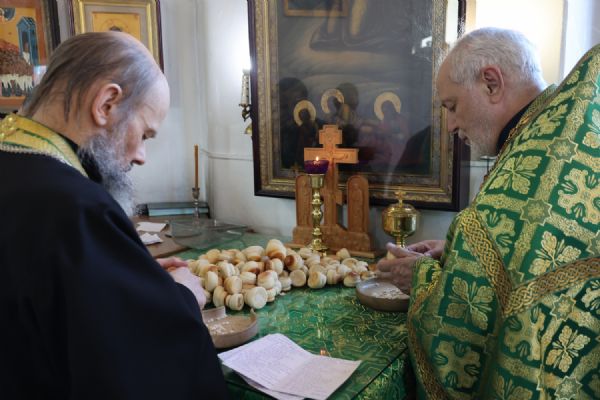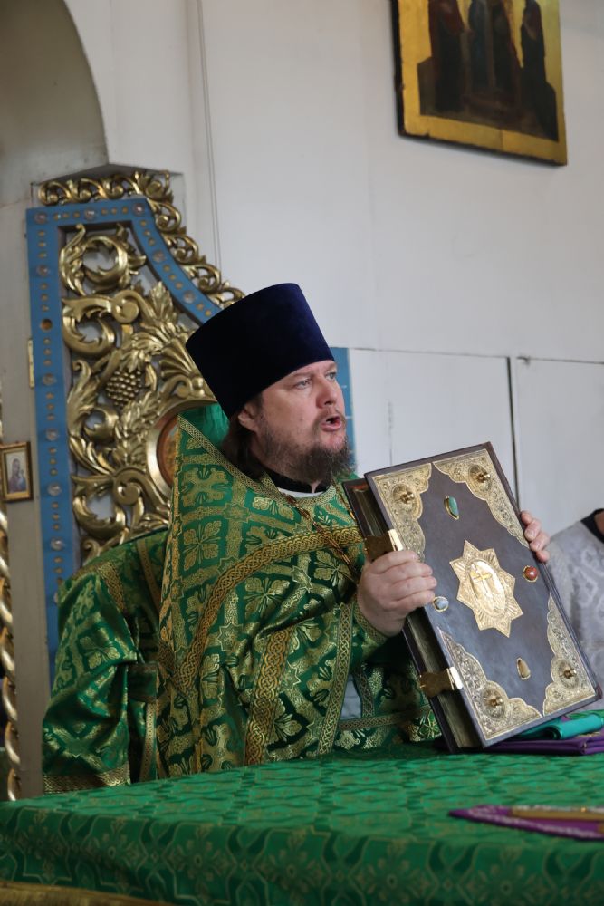 За Литургией Его Преосвященству сослужили клирики кафедрального собора иерей Николай Аникин, иерей Иоанн Лапшинский, иеромонах Питирим (Мосякин), диакон Иоанн Захаров и диакон Александр Викторов. Песнопения исполнял архиерейский хор под управлением Любови Михеевой.