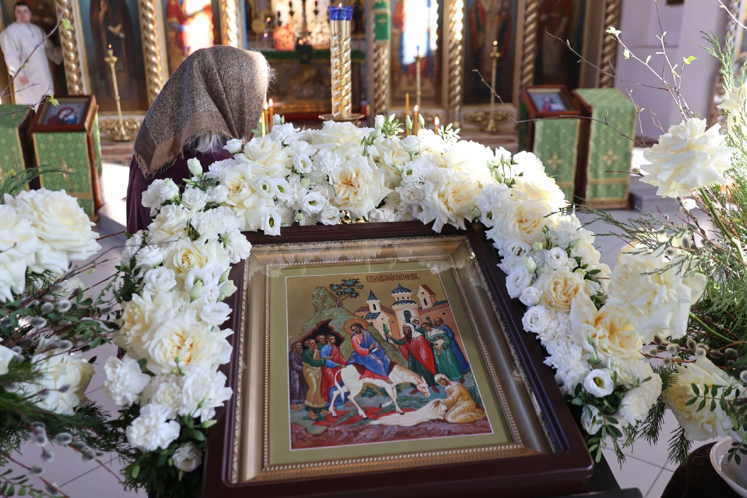 «Люди встречали Господа с радостью, как царя, связывая с его приходом в город надежды на земные блага. Они постилали Ему под ноги свои одежды, а также пальмовые ветви. Сегодня верующие, не имея пальмовых ветвей, приносят в храм веточки вербы, для того, чтобы освятить их в воспоминание об этом великом событии.
