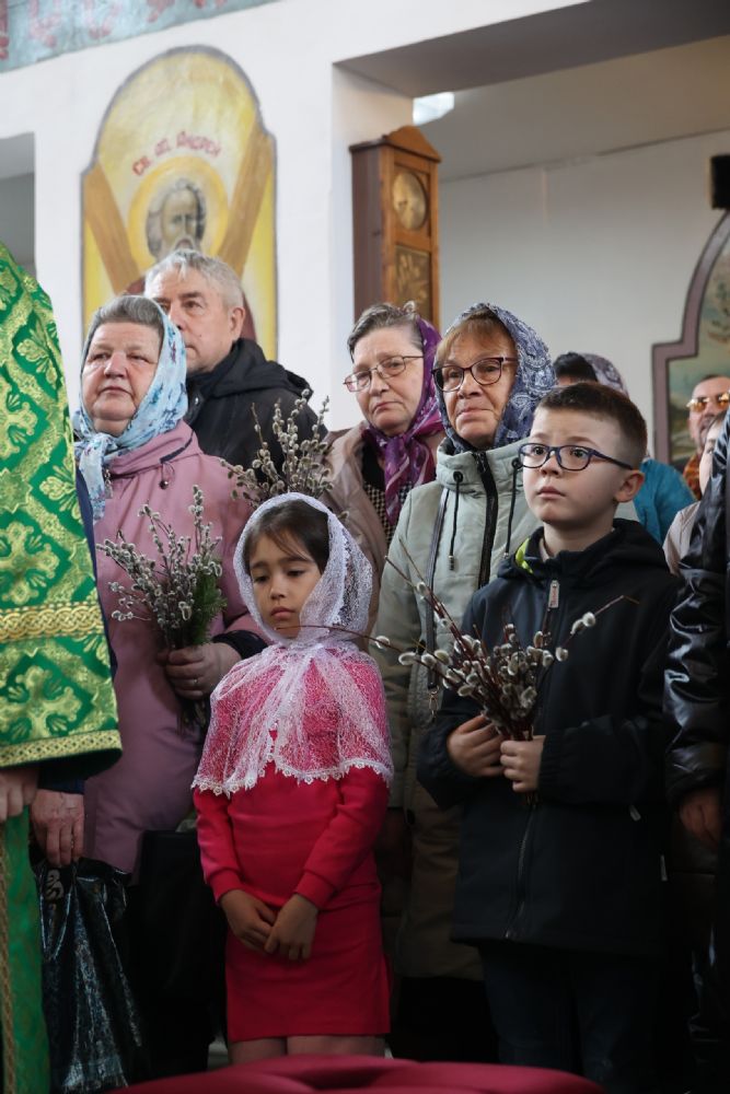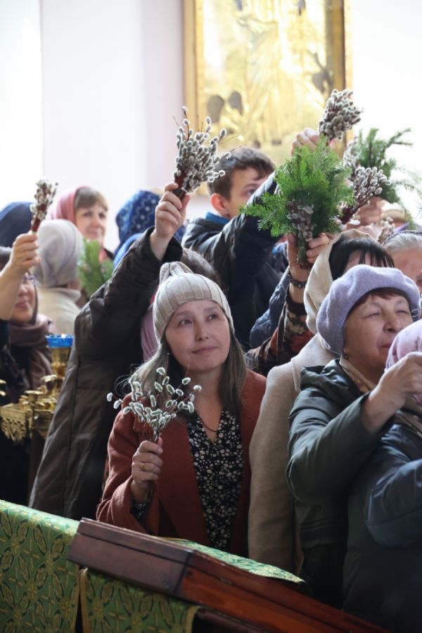 В завершение богослужения епископ Феофан обратился к верующим с проповедью, напомнив евангельские события торжественного входа Иисуса Христа в Иерусалим – верхом на молодом ослике в знак мира.