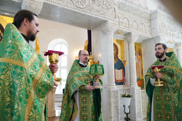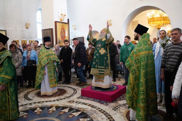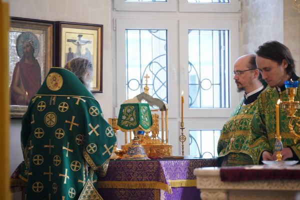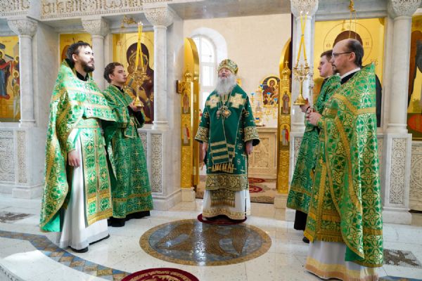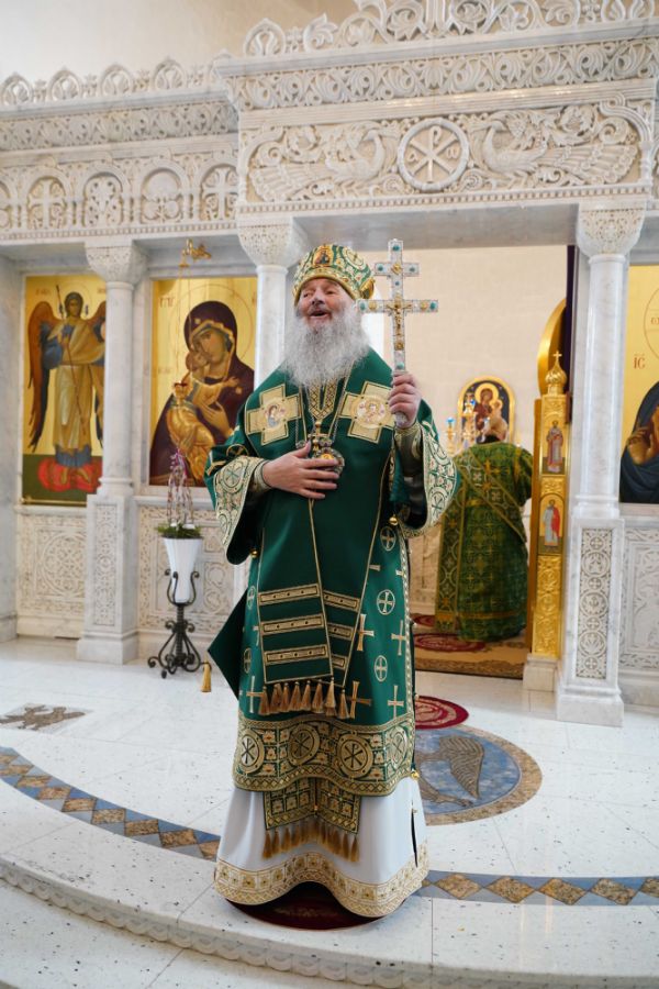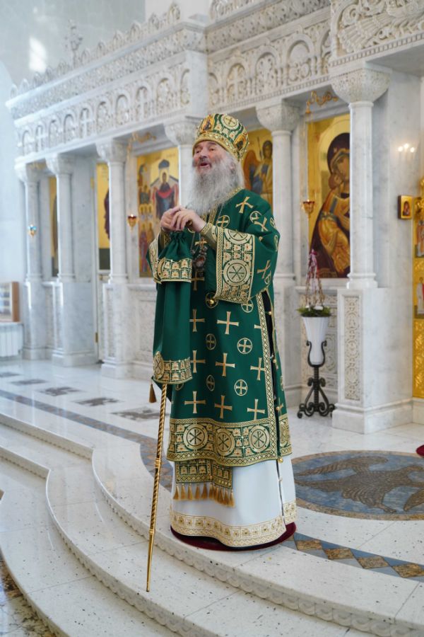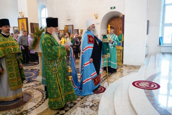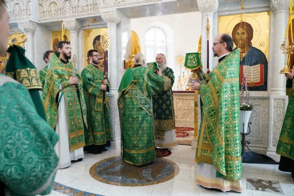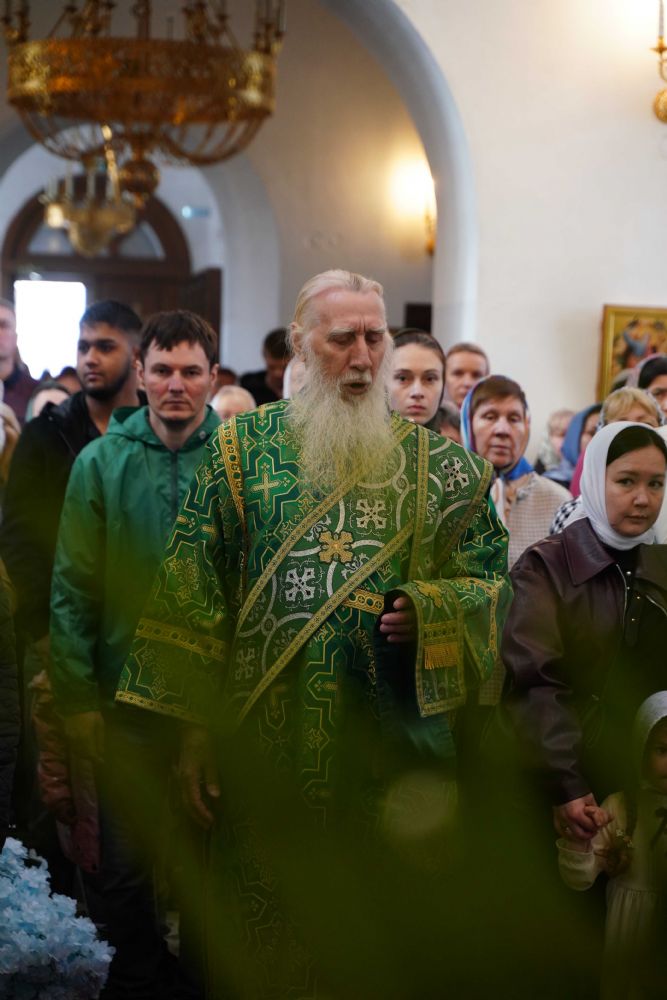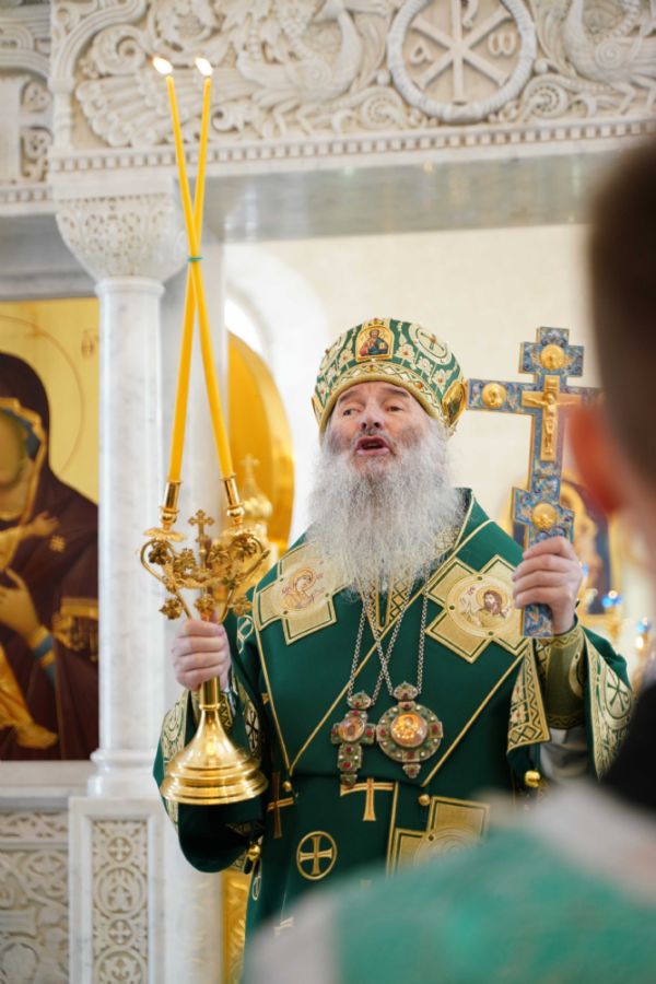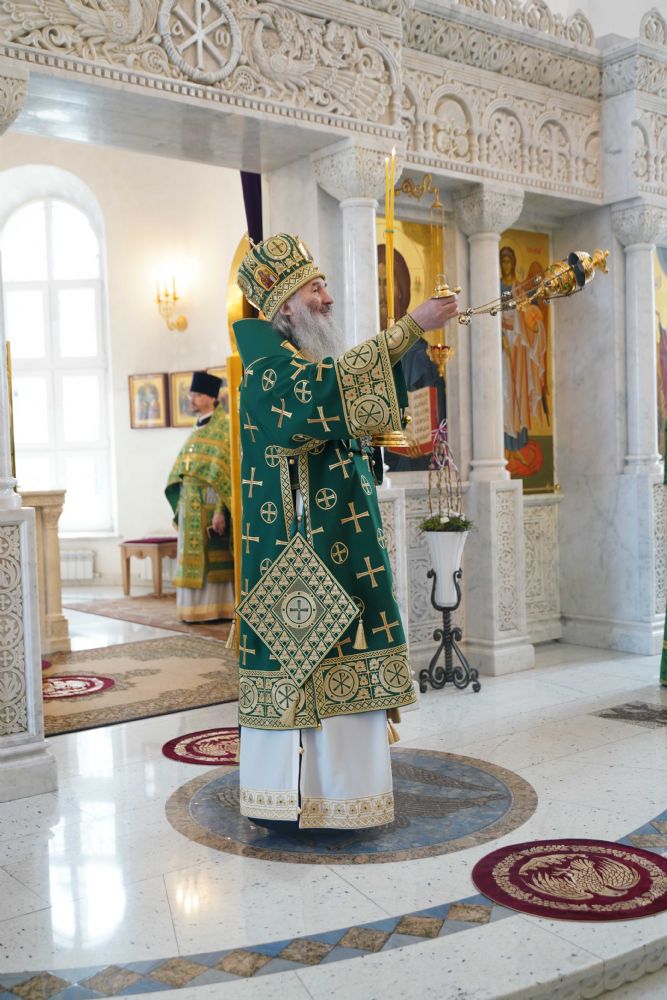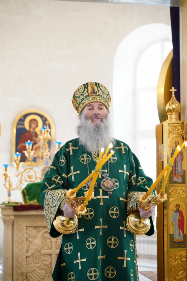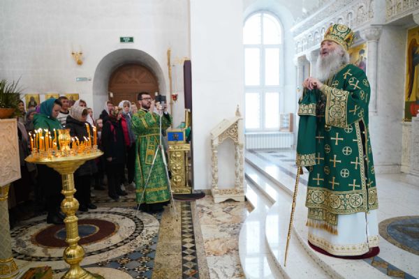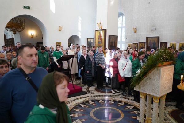 Архипастырю сослужили настоятель храма иерей Алексий Михеев, клирик храма иерей Сергий Пуртов и протодиакон Михаил Козловский. Песнопения исполняли хор храма под управлением Александры Ивановой и детский хор воскресной школы под руководством Ольги Шевчук.