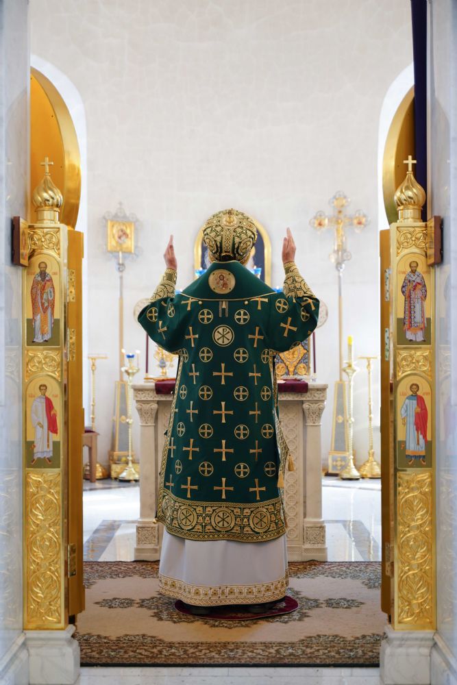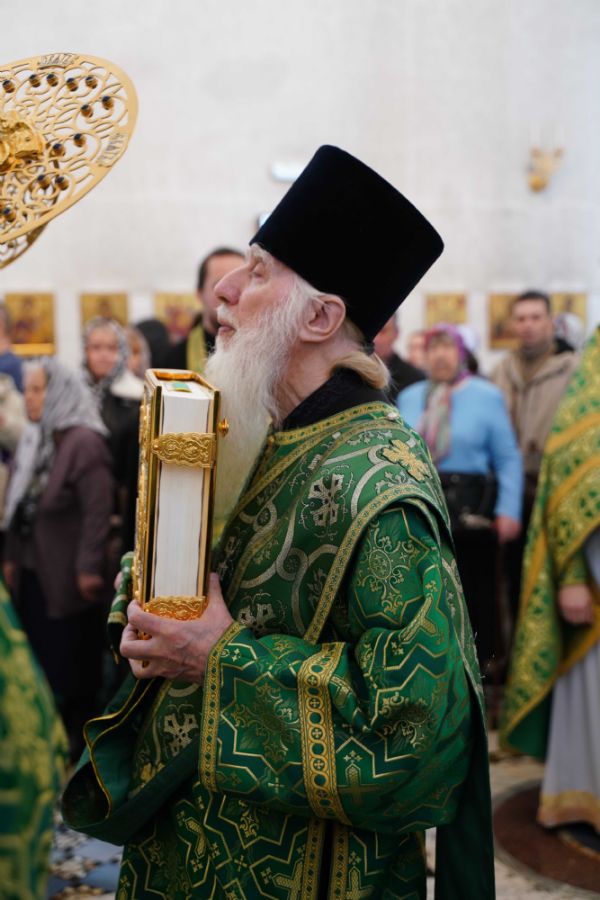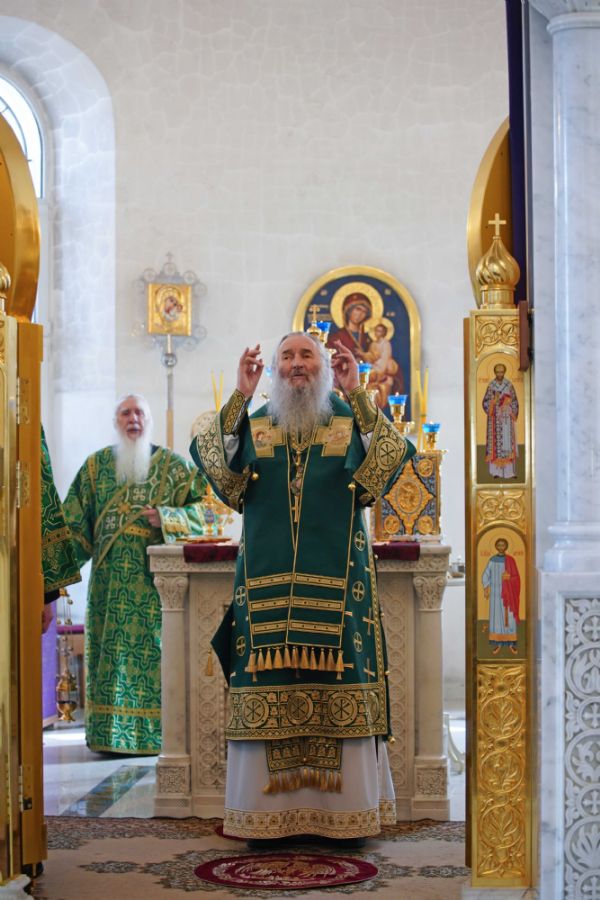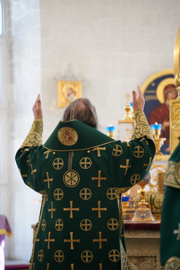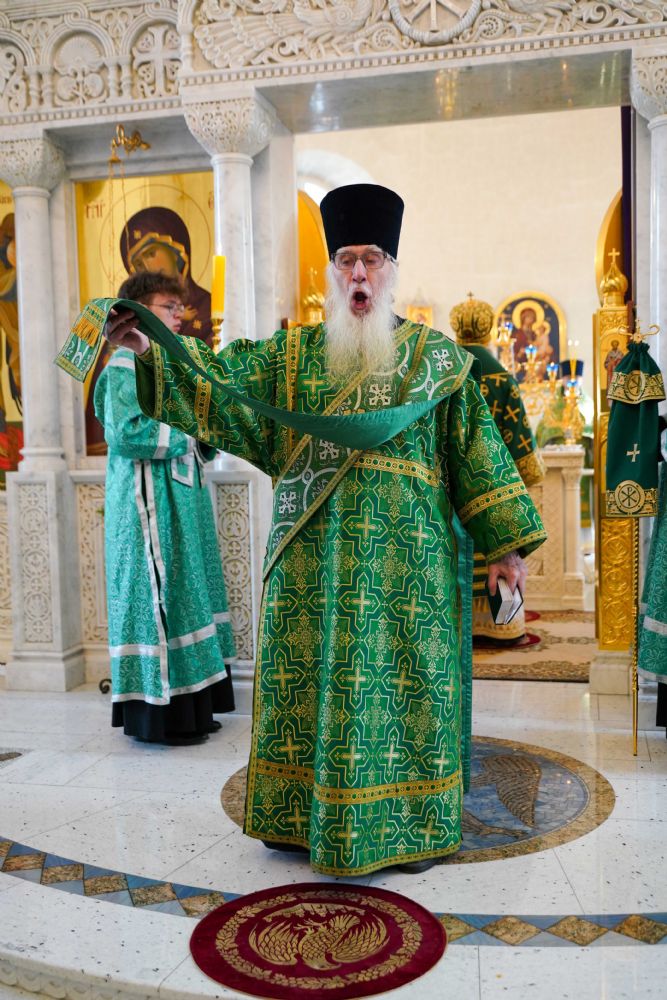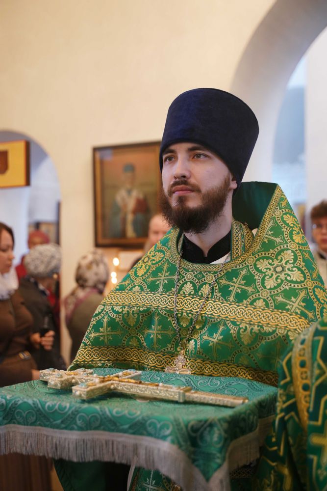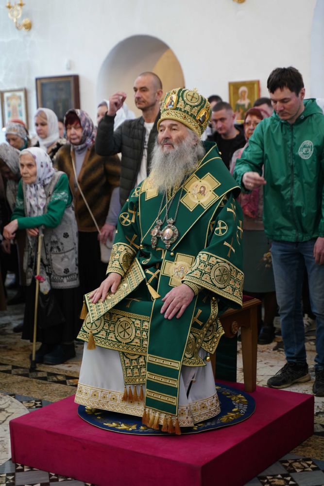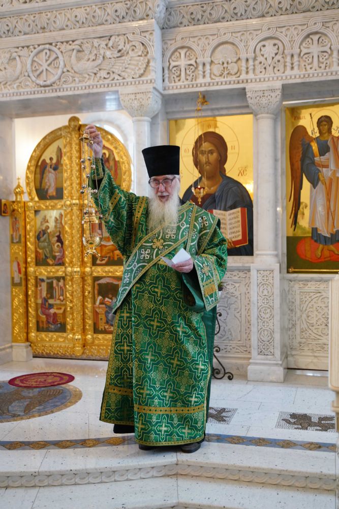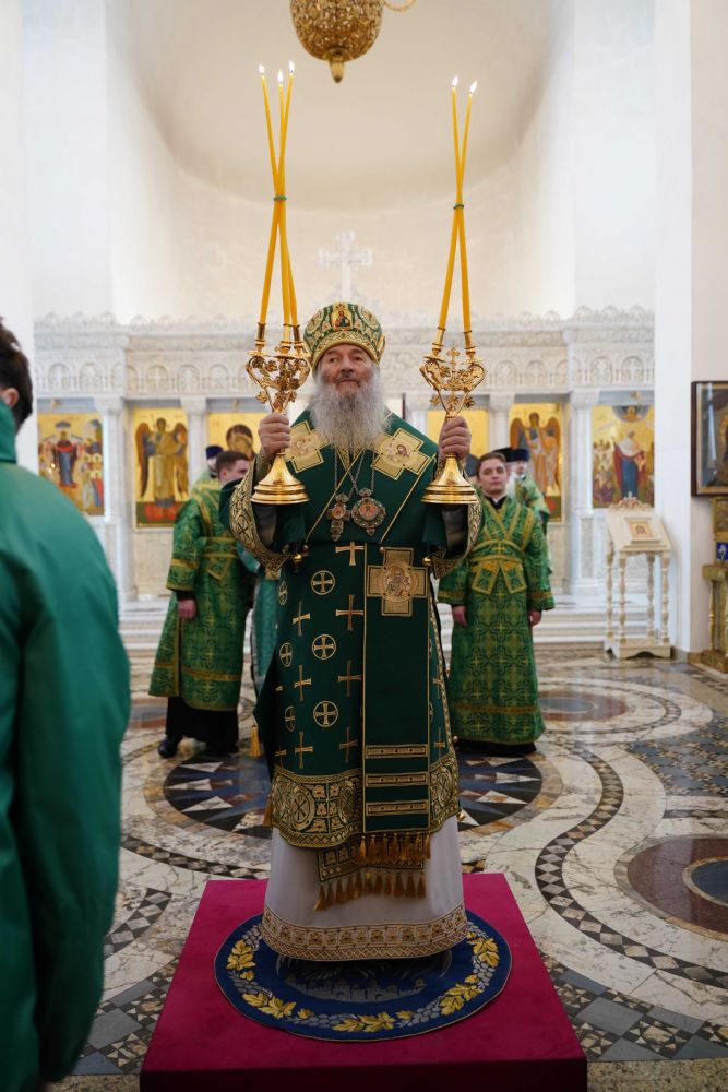 Архипастырю сослужили настоятель храма иерей Алексий Михеев, клирик храма иерей Сергий Пуртов и протодиакон Михаил Козловский. Песнопения исполняли хор храма под управлением Александры Ивановой и детский хор воскресной школы под руководством Ольги Шевчук.